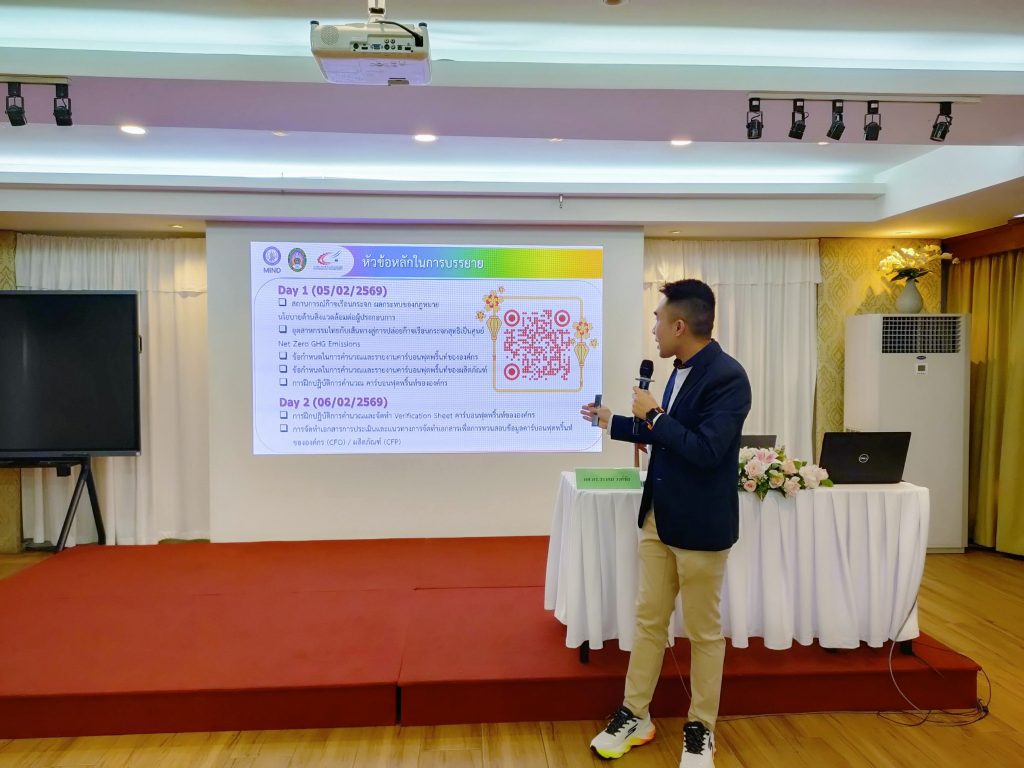 มร.ลป. เป็นวิทยากรบรรยาย กิจกรรมอบรมพัฒนาศักยภาพผู้ประกอบการ และวิสาหกิจชุมชน เพื่อเปลี่ยนผ่านภาคอุตสาหกรรม สู่การปล่อยก๊าซเรือนกระจกสุทธิเป็นศูนย์ (NET ZERO EMISSIONS)
