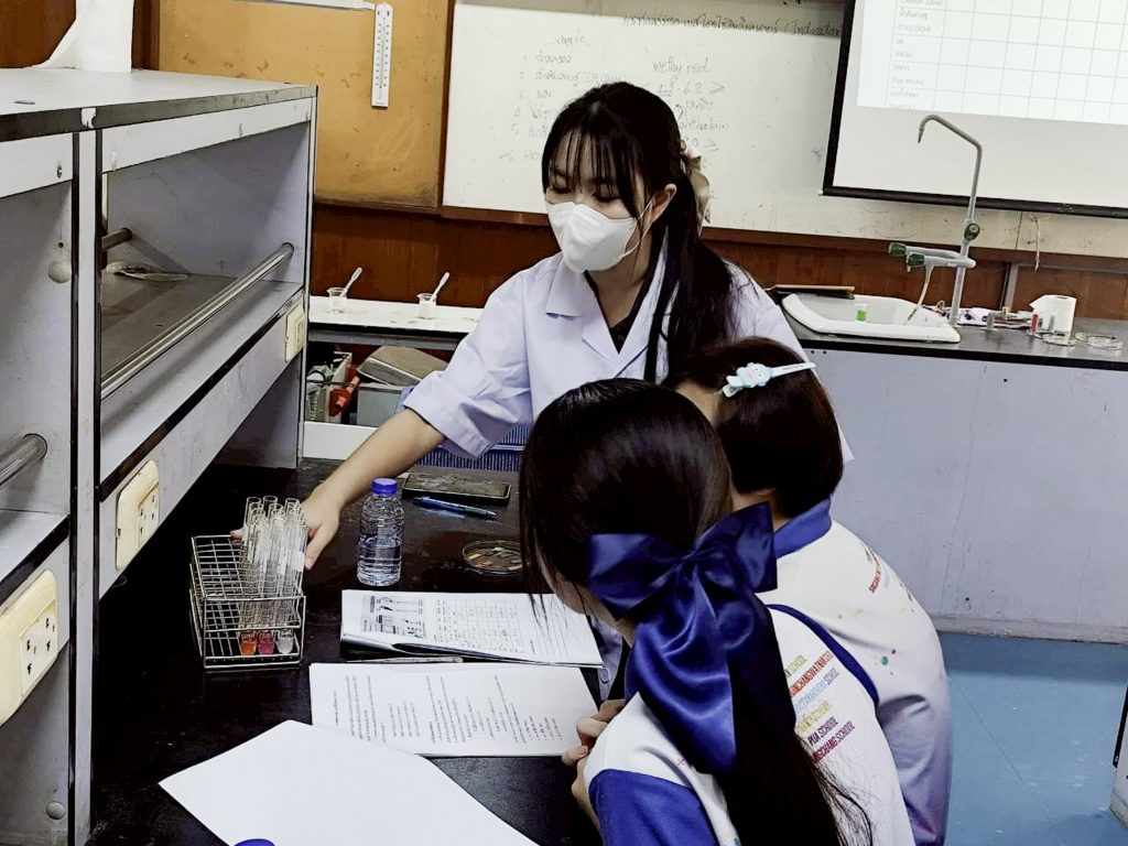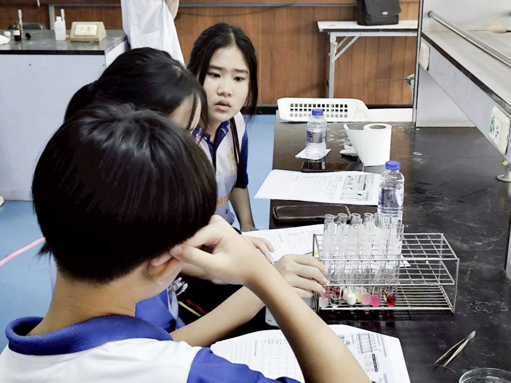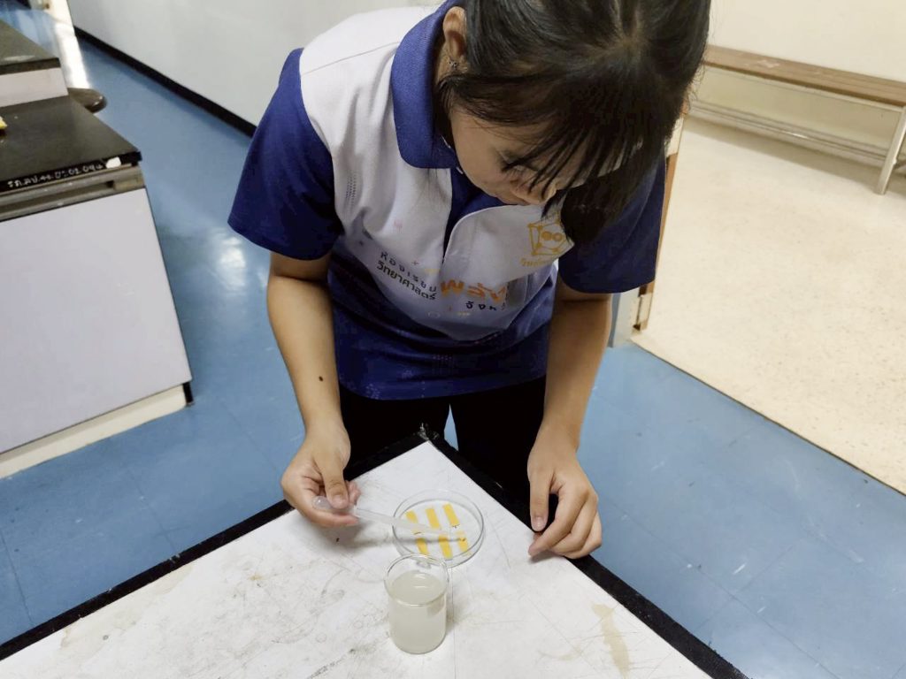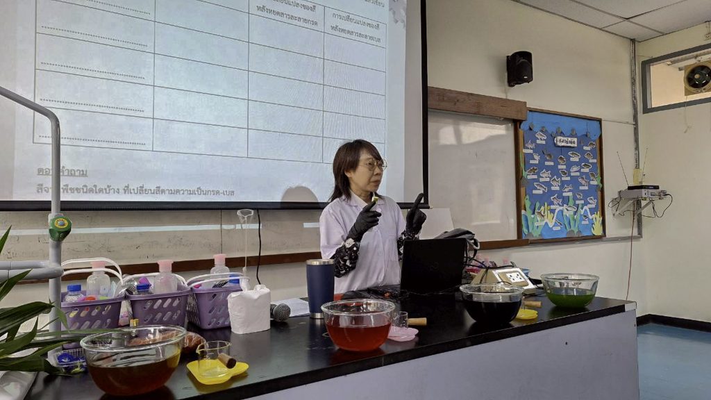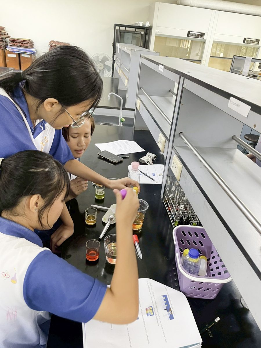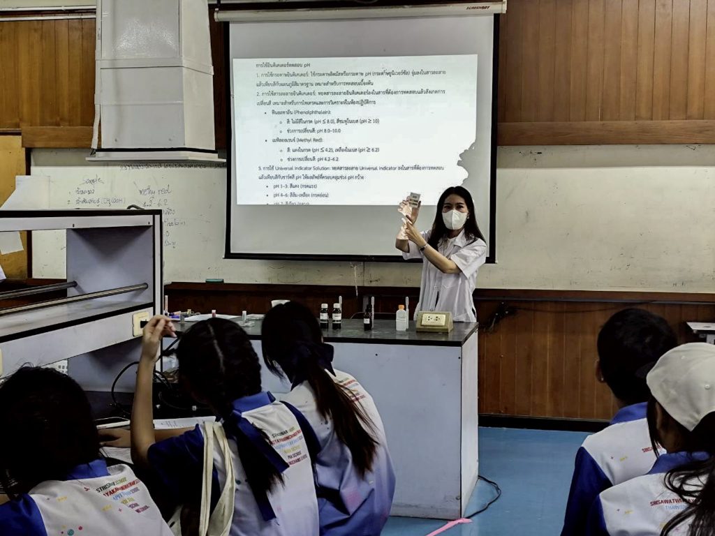 ฐานที่ 2 ฐานกิจกรรมเคมี เรื่อง กรด-เบส วิทยากรโดย ผศ.พูนฉวี สมบัติศิริ อาจารย์สังกัดสาขาวิชาเคมี และ น.ส.สุพรรษา ภูมิบริสุทธ์ นักวิทยาศาสตร์ สังกัดคณะวิทยาศาสตร์