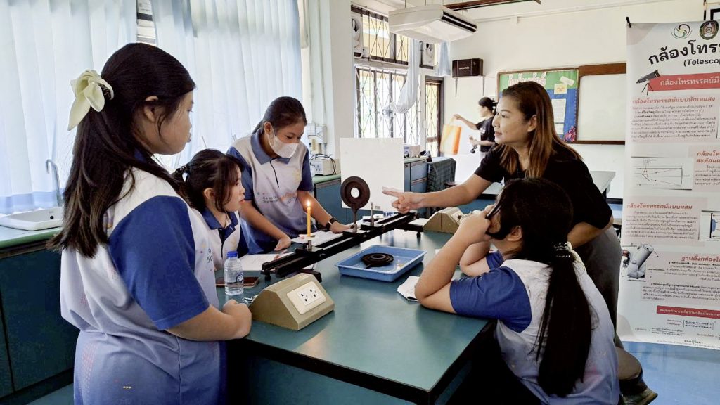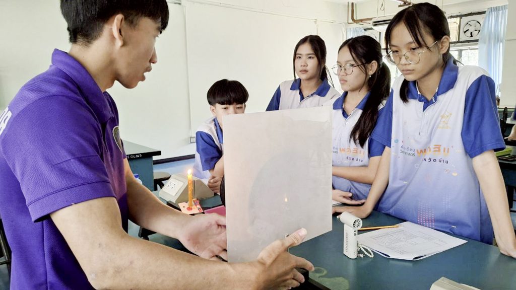 ฐานที่ 1 ฐานกิจกรรมฟิสิกส์ เรื่อง ดาราศาสตร์เบื้องต้น วิทยากรโดย ผศ.ดลฤดี สุขใจ อาจารย์สังกัดสาขาวิชาฟิสิกส์ และ นายอนุชา ปาลี นักวิชาการศึกษา สังกัดคณะวิทยาศาสตร์