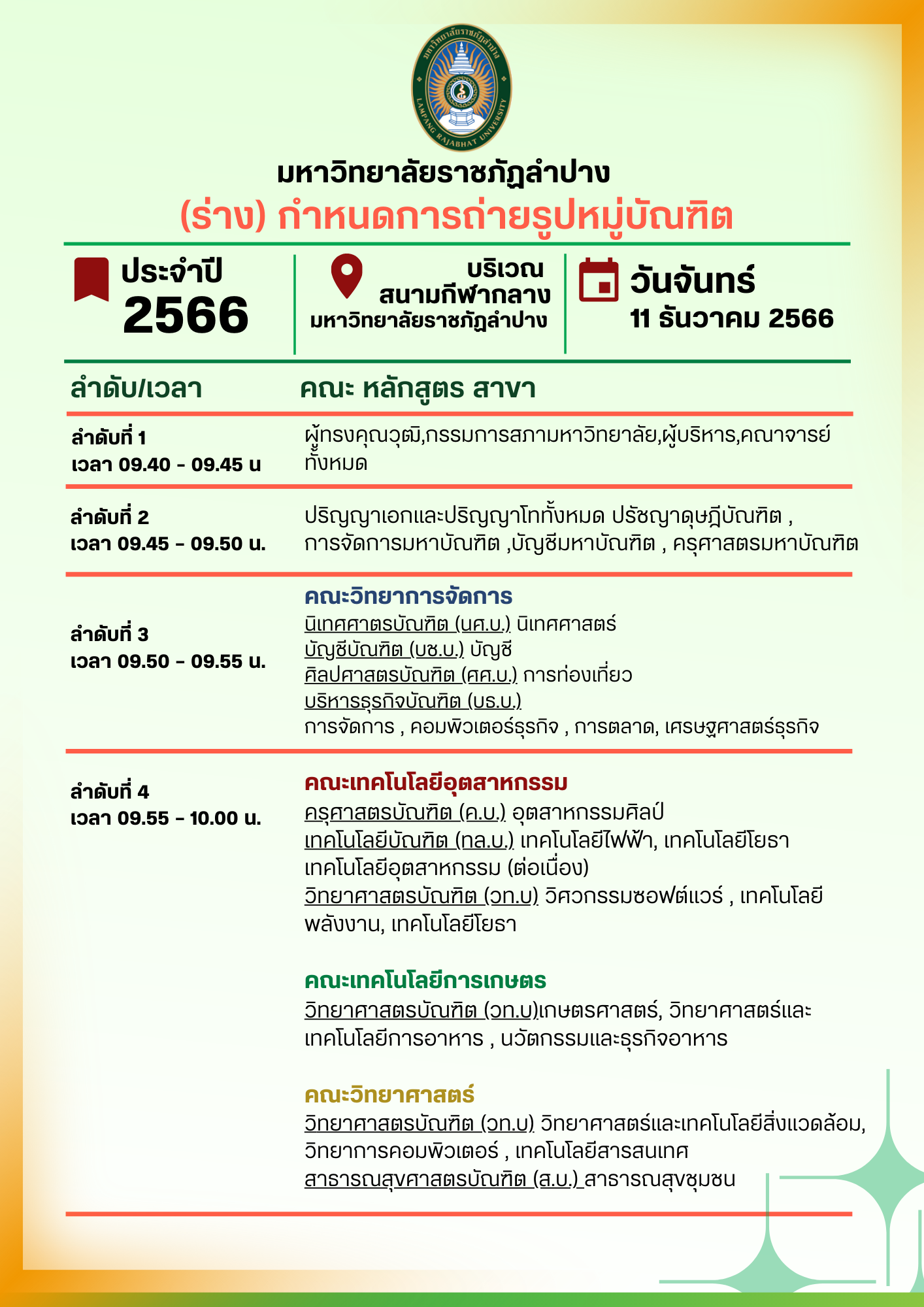 6. | กำหนดการฝึกซ้อมพิธีการเข้ารับปริญญาบัตร ประจำปี พ.ศ.2566 |
