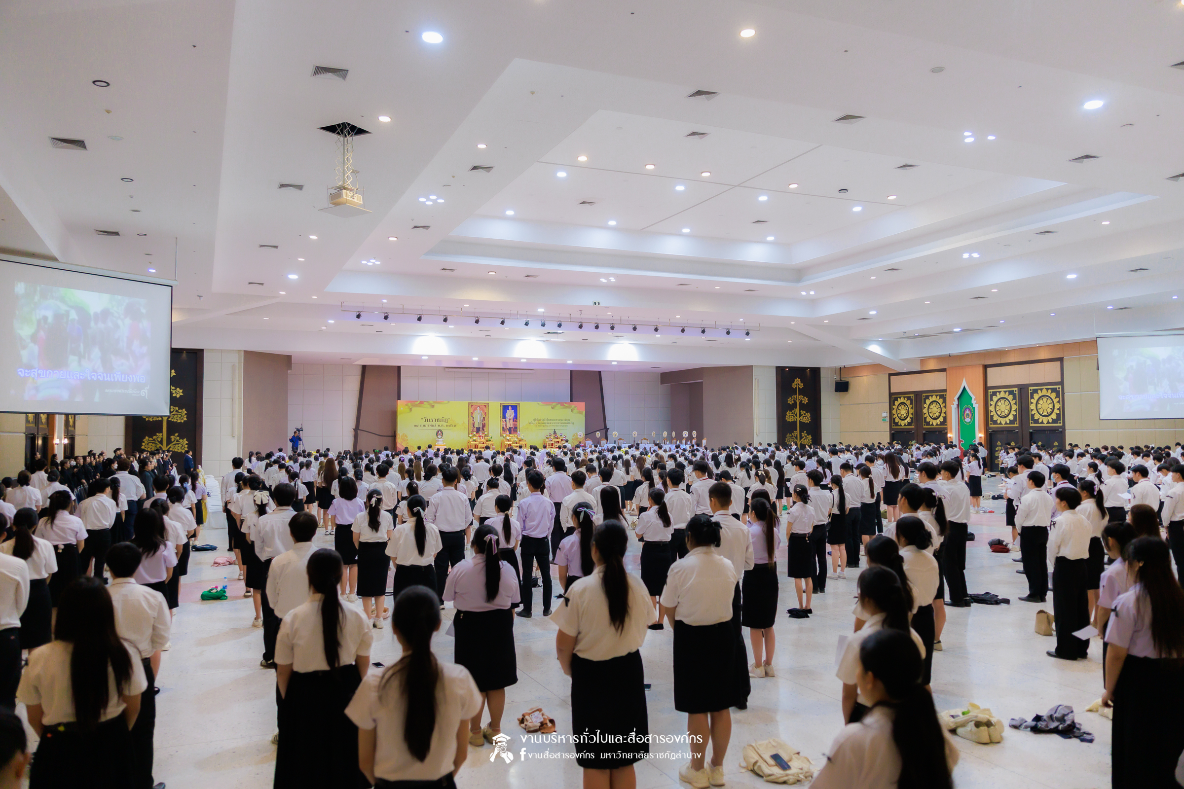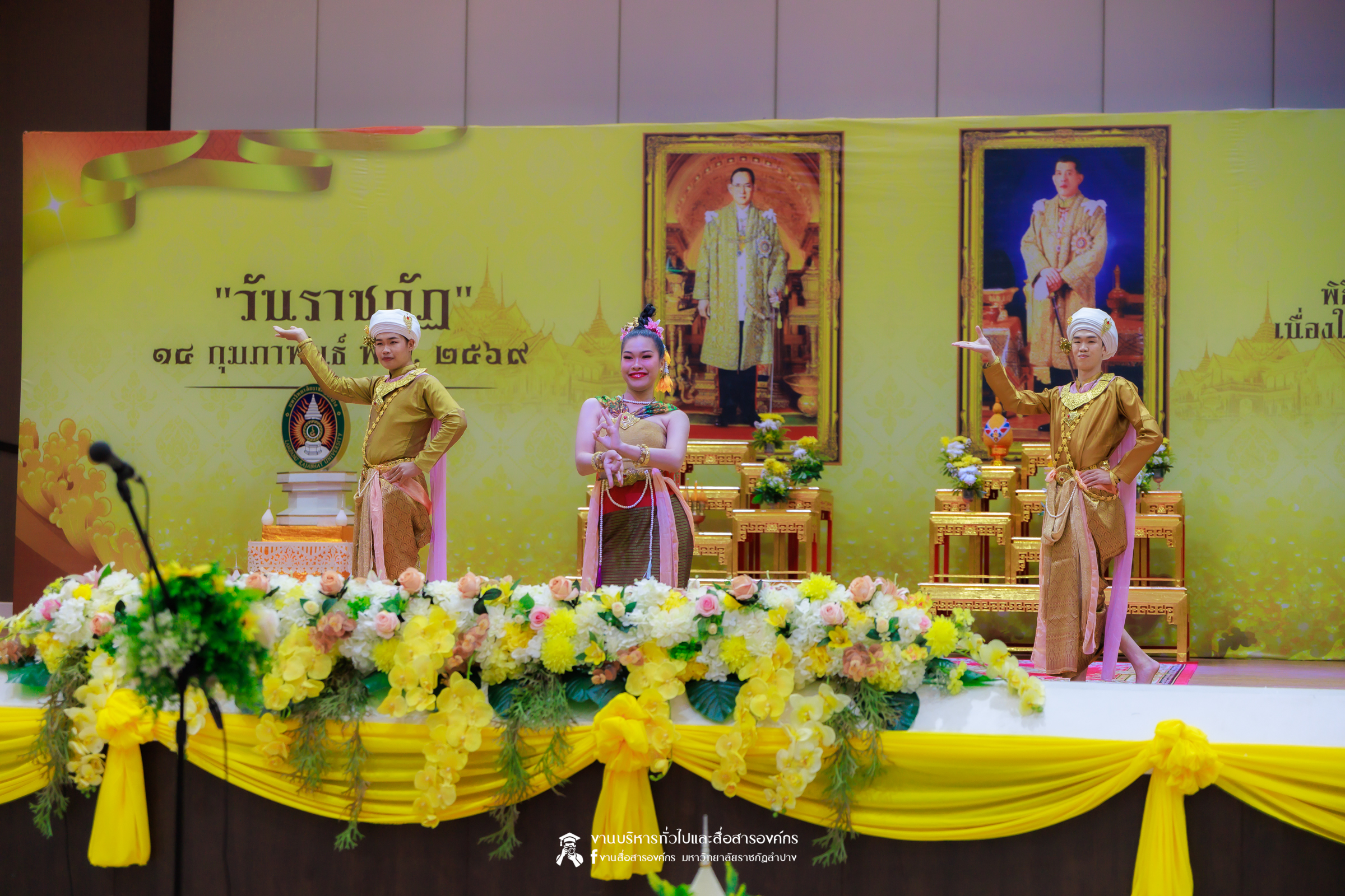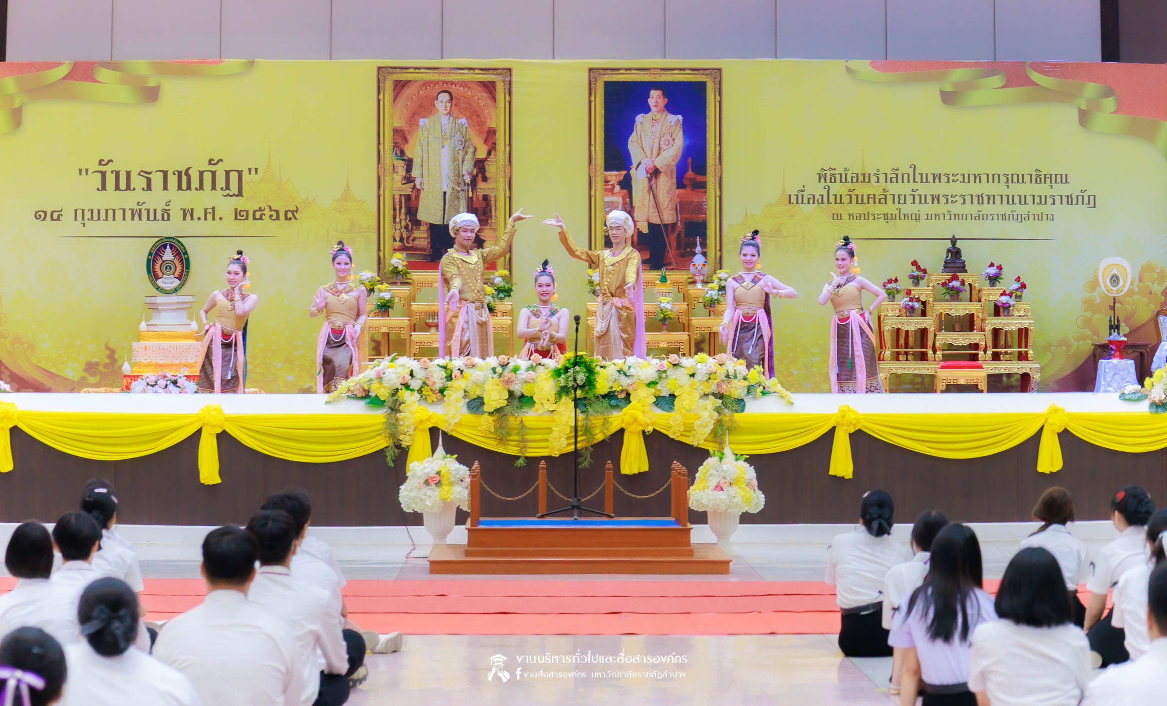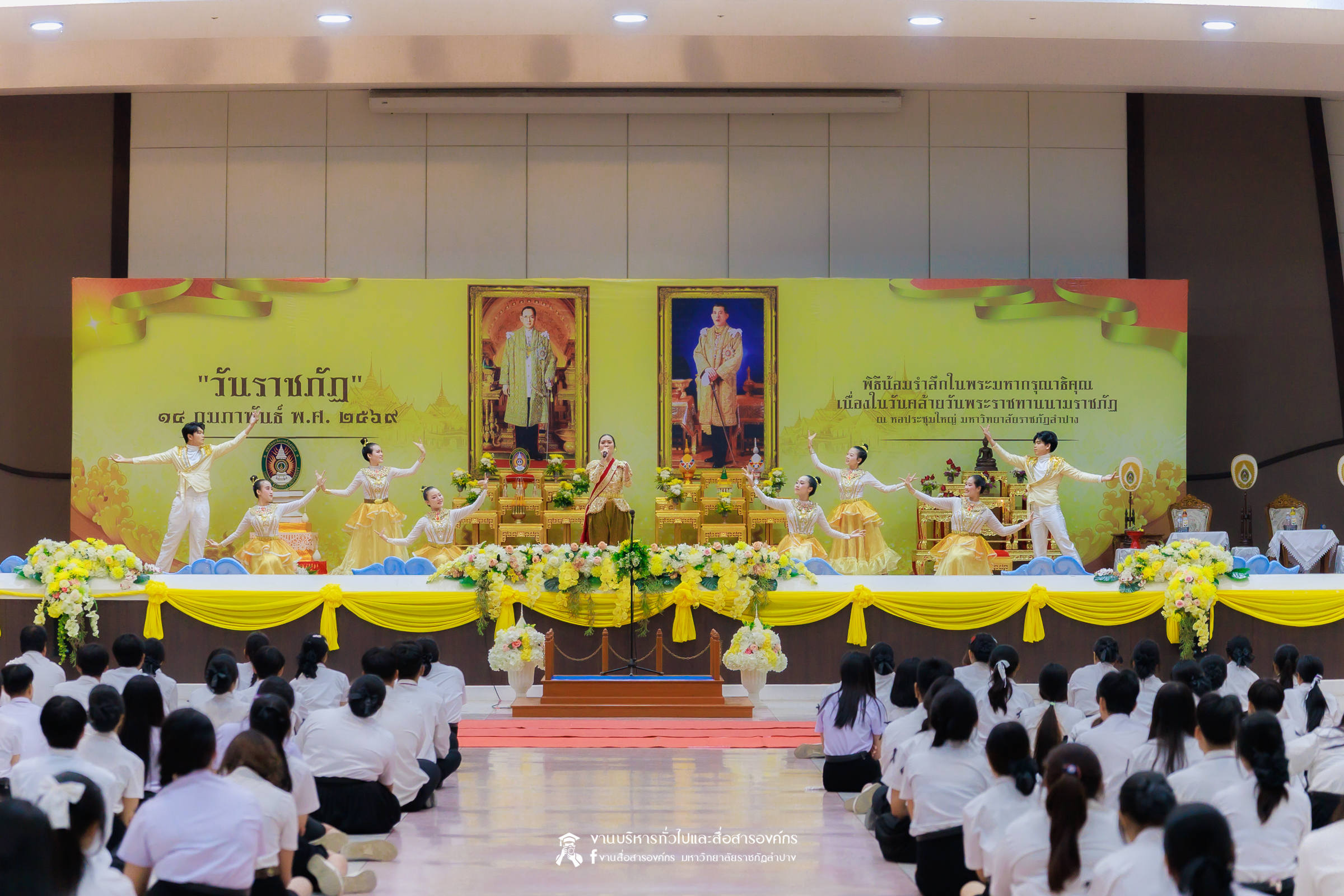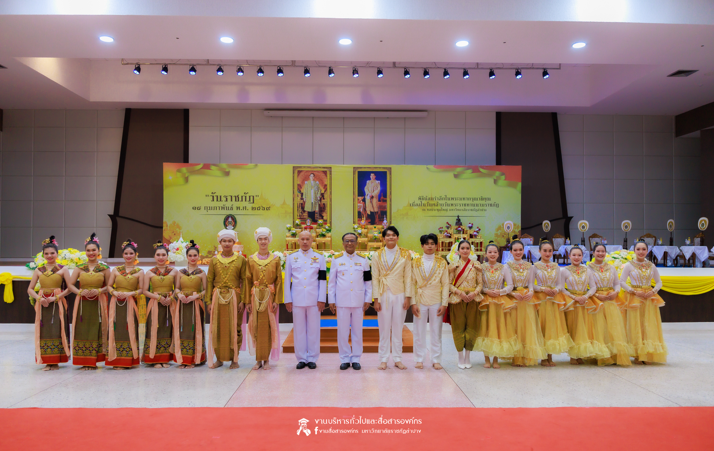 เมื่อวันที่ 13 กุมภาพันธ์ 2569 มหาวิทยาลัยราชภัฏลำปาง จัดพิธีเจริญพระพุทธมนต์ เพื่อถวายเป็นพระราชกุศล และพิธีน้อมรำลึกในพระมหากรุณาธิคุณ เนื่องในวันคล้ายวันพระราชทานนาม “ราชภัฏ” 14 กุมภาพันธ์ ณ หอประชุมใหญ่ มหาวิทยาลัยราชภัฏลำปาง โดย รศ.ดร.กิตติศักดิ์ สมุทธารักษ์ อธิการบดีมหาวิทยาลัยราชภัฏลำปาง เป็นประธานในพิธี พร้อมนำคณะผู้บริหาร คณาจารย์ บุคลากร และนักศึกษา กล่าวสำนึกในพระมหากรุณาธิคุณอันหาที่สุดมิได้ และนำผู้เข้าร่วมพิธี ร่วมถวายบังคมเบื้องหน้าพระบรมฉายาลักษณ์พระบาทสมเด็จพระบรมชนกาธิเบศร มหาภูมิพลอดุลยเดชมหาราช บรมนาถบพิตร และพระบาทสมเด็จพระปรเมนทรรามาธิบดีศรีสินทรมหาวชิราลงกรณ พระวชิรเกล้าเจ้าอยู่หัว โดยได้รับเมตตาจากพระวิสุทธิธรรมพิลาส (คูณสมบูรณ์ สิริธมฺมชโย) เจ้าอาวาสวัดต้นธงชัย อ.เมืองลำปาง รองเจ้าคณะจังหวัดลำปาง เป็นประธานฝ่ายสงฆ์ ในพิธีเจริญพระพุทธมนต์ โดยมีผู้บริหาร คณาจารย์ บุคลากร และนักศึกษาเข้าร่วมกิจกรรมกว่า 1,000 คน ในการนี้ ได้มีพิธีมอบเสื้อสามารถแก่บุคคลภายนอก ที่สร้างผลงานด้านกีฬาให้กับมหาวิทยาลัย จำนวน 2 ราย ประกอบด้วย นายพิพัฒน์ ใบกุหลาบ ผู้จัดการทีม และผู้ฝึกสอนกีฬากรีฑา และนายเรืองศักดิ์ ศรีวรกุลวงศ์ ผู้ฝึกสอนกีฬามวย
