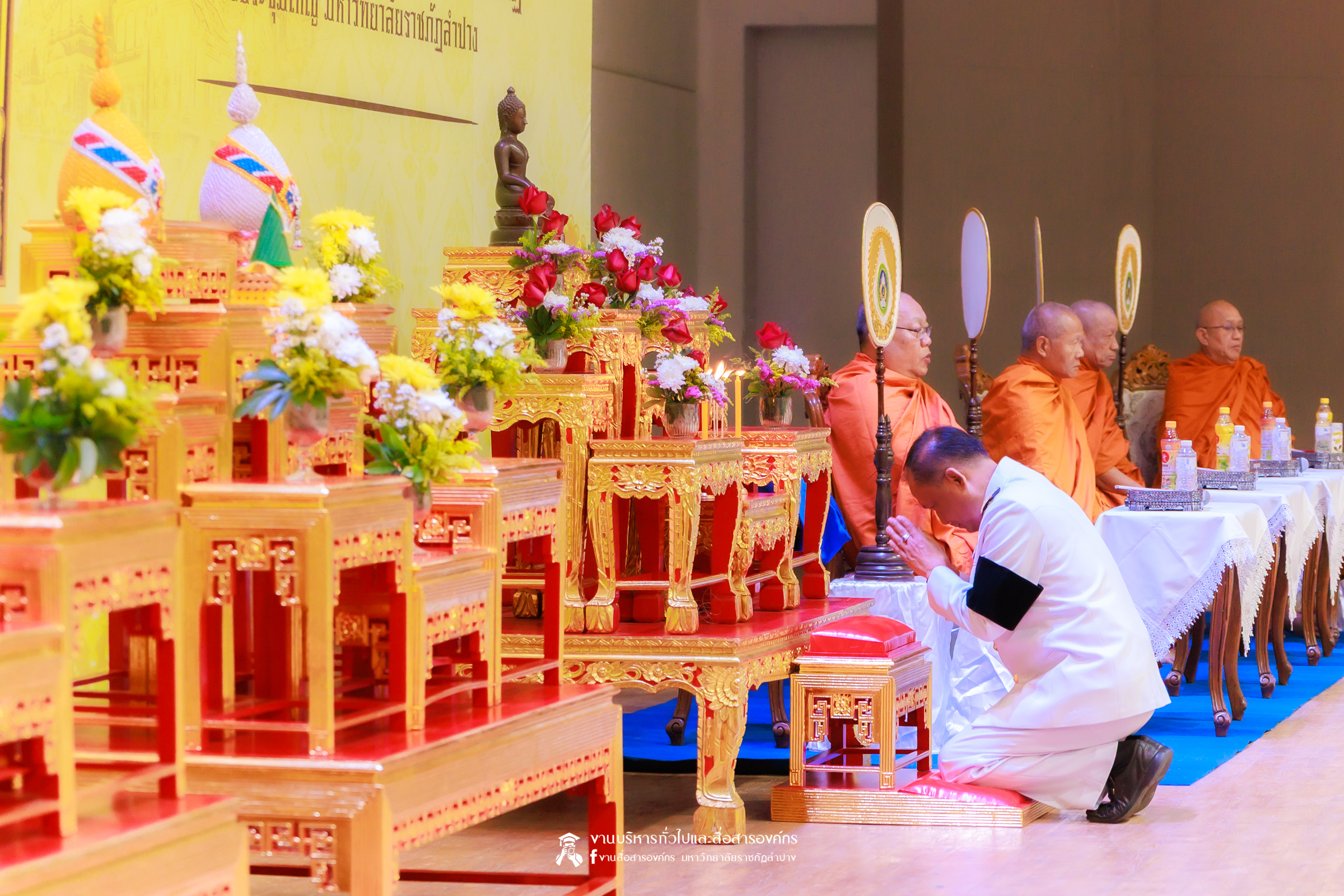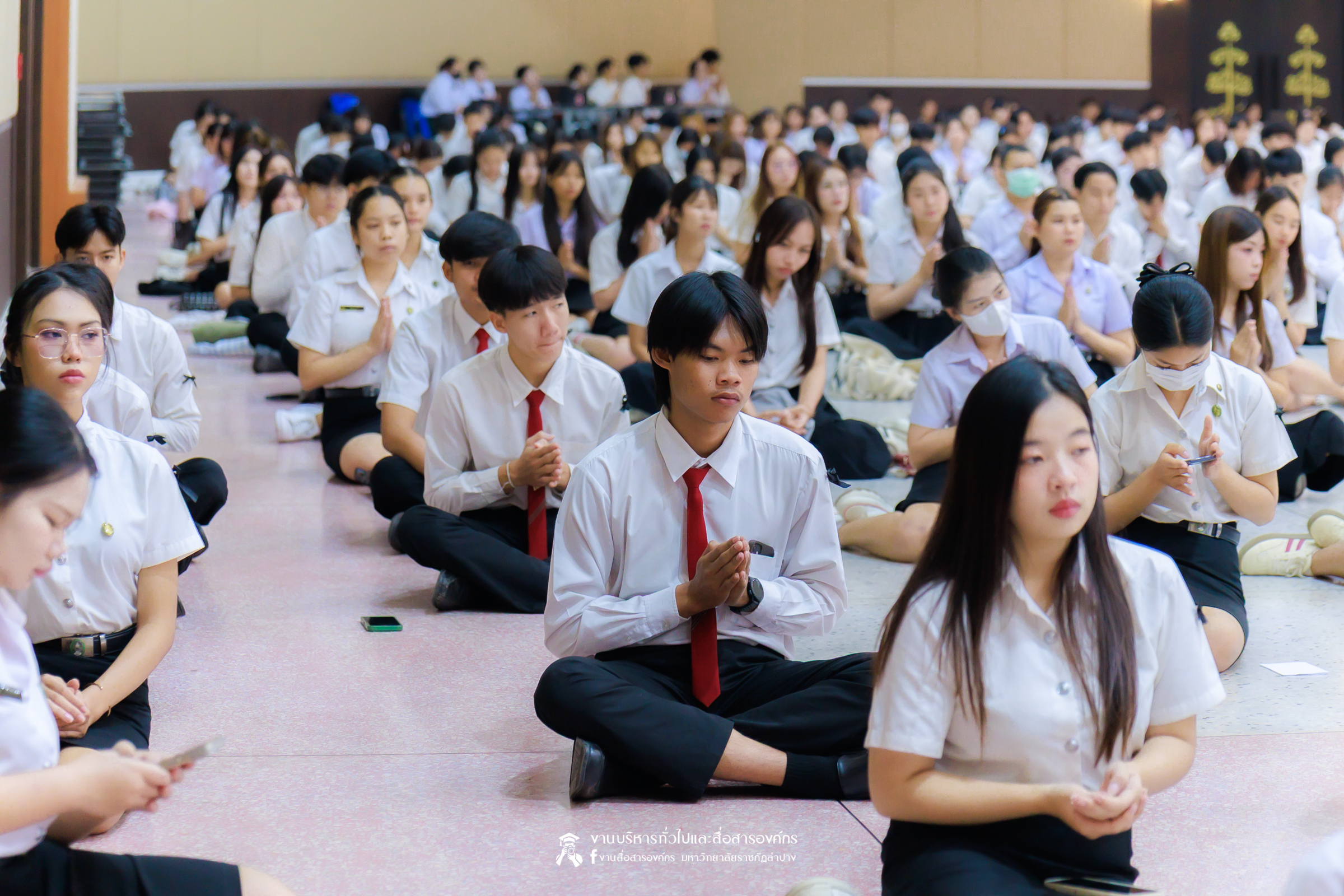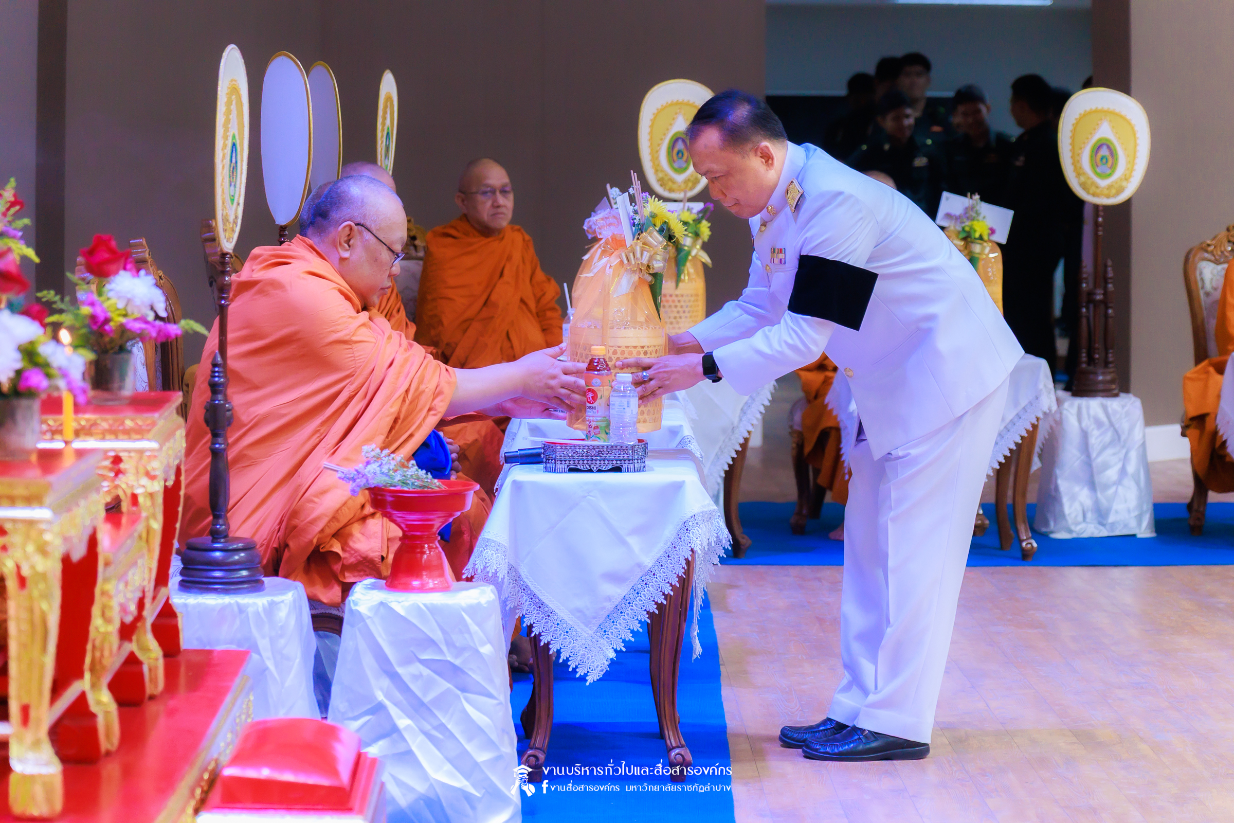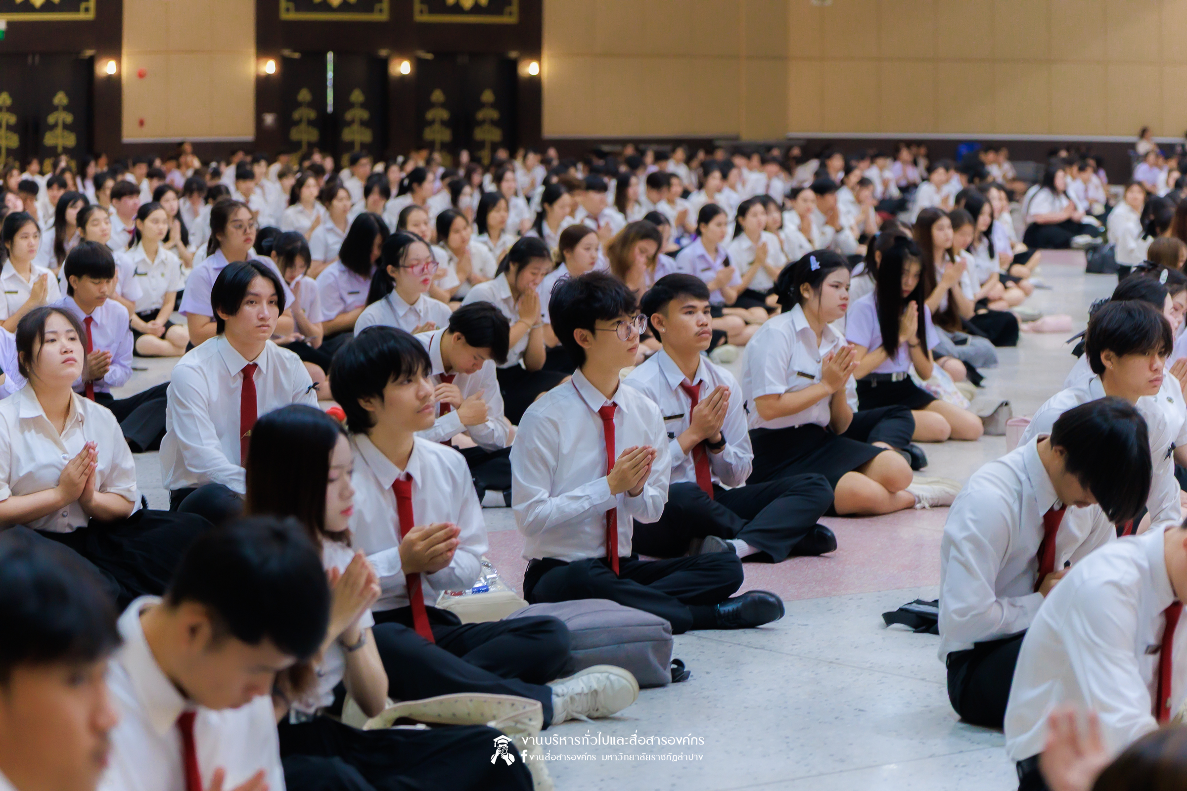 เมื่อวันที่ 13 กุมภาพันธ์ 2569 มหาวิทยาลัยราชภัฏลำปาง จัดพิธีเจริญพระพุทธมนต์ เพื่อถวายเป็นพระราชกุศล และพิธีน้อมรำลึกในพระมหากรุณาธิคุณ เนื่องในวันคล้ายวันพระราชทานนาม “ราชภัฏ” 14 กุมภาพันธ์ ณ หอประชุมใหญ่ มหาวิทยาลัยราชภัฏลำปาง โดย รศ.ดร.กิตติศักดิ์ สมุทธารักษ์ อธิการบดีมหาวิทยาลัยราชภัฏลำปาง เป็นประธานในพิธี พร้อมนำคณะผู้บริหาร คณาจารย์ บุคลากร และนักศึกษา กล่าวสำนึกในพระมหากรุณาธิคุณอันหาที่สุดมิได้ และนำผู้เข้าร่วมพิธี ร่วมถวายบังคมเบื้องหน้าพระบรมฉายาลักษณ์พระบาทสมเด็จพระบรมชนกาธิเบศร มหาภูมิพลอดุลยเดชมหาราช บรมนาถบพิตร และพระบาทสมเด็จพระปรเมนทรรามาธิบดีศรีสินทรมหาวชิราลงกรณ พระวชิรเกล้าเจ้าอยู่หัว โดยได้รับเมตตาจากพระวิสุทธิธรรมพิลาส (คูณสมบูรณ์ สิริธมฺมชโย) เจ้าอาวาสวัดต้นธงชัย อ.เมืองลำปาง รองเจ้าคณะจังหวัดลำปาง เป็นประธานฝ่ายสงฆ์ ในพิธีเจริญพระพุทธมนต์ โดยมีผู้บริหาร คณาจารย์ บุคลากร และนักศึกษาเข้าร่วมกิจกรรมกว่า 1,000 คน ในการนี้ ได้มีพิธีมอบเสื้อสามารถแก่บุคคลภายนอก ที่สร้างผลงานด้านกีฬาให้กับมหาวิทยาลัย จำนวน 2 ราย ประกอบด้วย นายพิพัฒน์ ใบกุหลาบ ผู้จัดการทีม และผู้ฝึกสอนกีฬากรีฑา และนายเรืองศักดิ์ ศรีวรกุลวงศ์ ผู้ฝึกสอนกีฬามวย