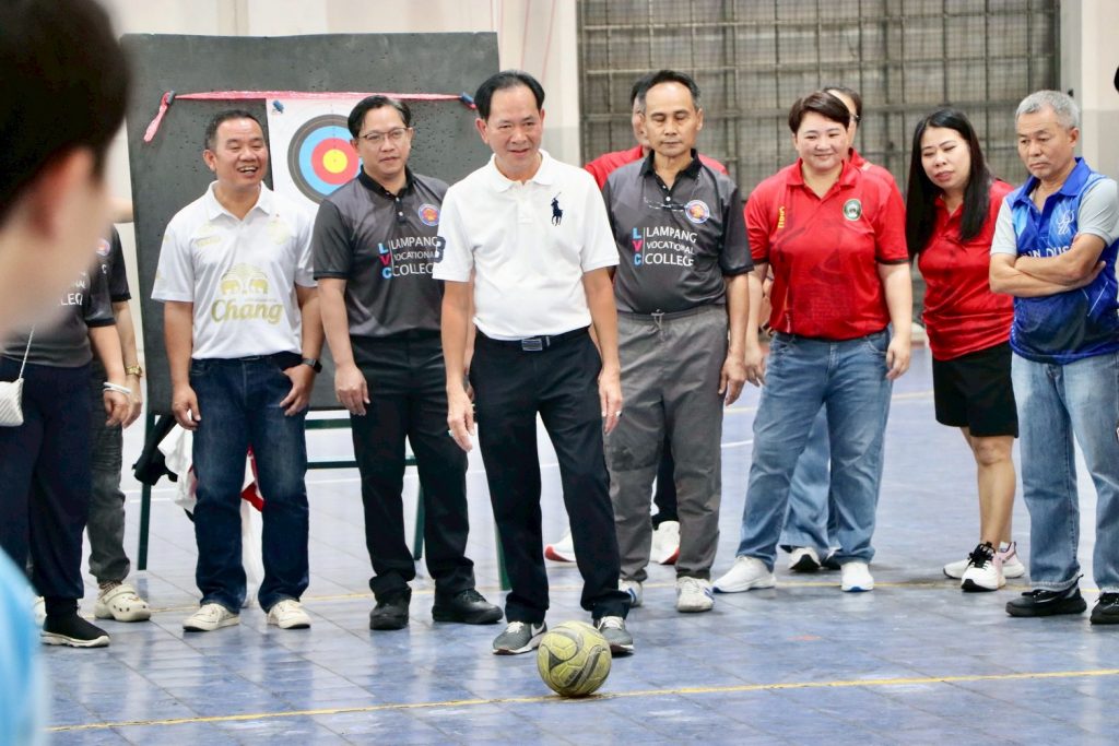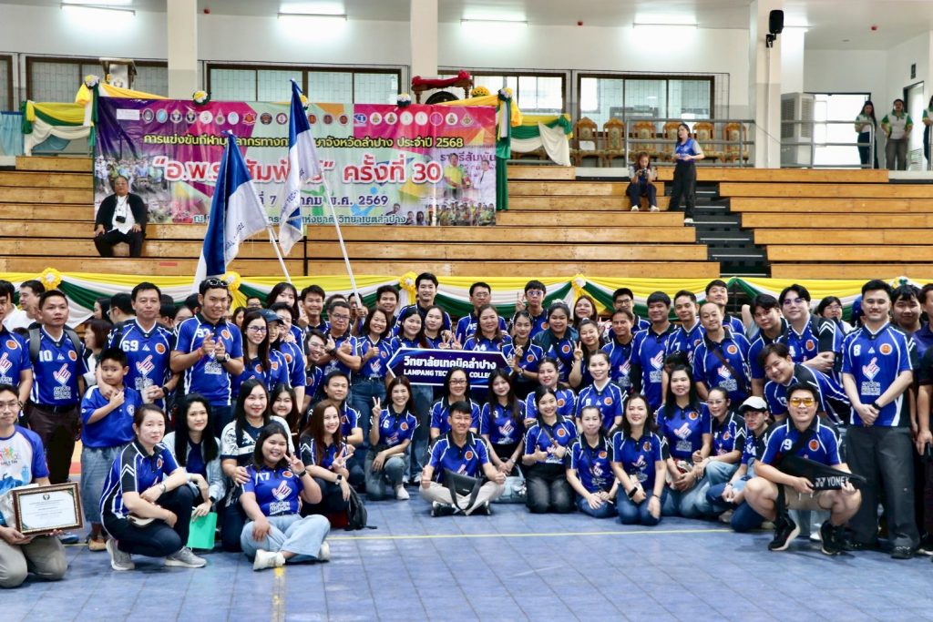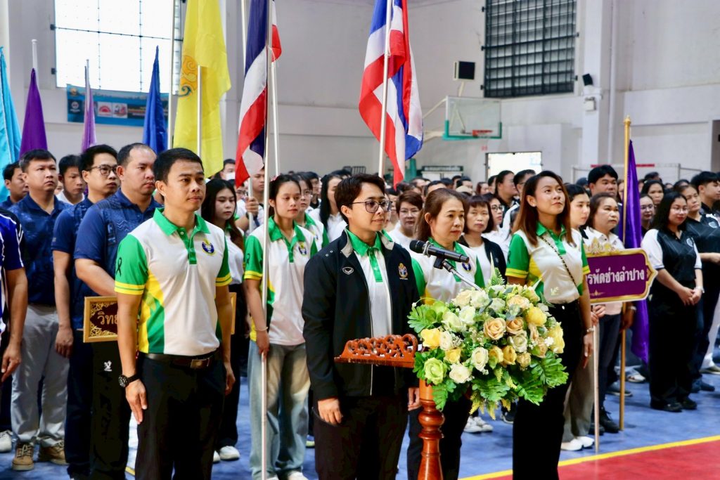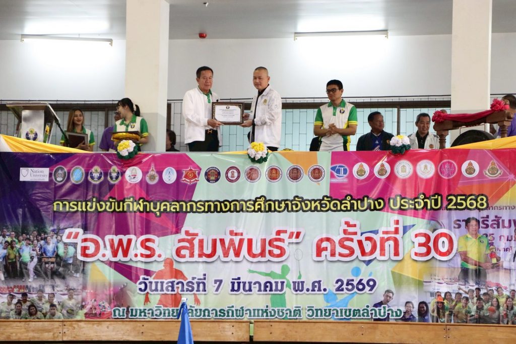 เมื่อวันที่ 7 มีนาคม 2569 รศ.ดร.ปริเยศ สิทธิสรวง รองอธิการบดีฝ่ายบริหาร มหาวิทยาลัยราชภัฏลำปาง พร้อมด้วย ผศ.เจษฎา ทองสุข ผู้อำนวยการสำนักศิลปะและวัฒนธรรม และ ผศ.เอกรัฐ อินต๊ะวงศา ผู้ช่วยอธิการบดีด้านงานบริหารทั่วไป นำคณาจารย์และบุคลากรมหาวิทยาลัยราชภัฏลำปาง เข้าร่วมการแข่งขันกีฬาบุคลากรทางการศึกษาจังหวัดลำปาง ประจำปีการศึกษา 2568 “อ.พ.ร.สัมพันธ์” ครั้งที่ 30 ณ มหาวิทยาลัยการกีฬาแห่งชาติ วิทยาเขตลำปาง โดยมี นายสมพร วะเท นายกเทศมนตรีตำบลบ่อแฮ้ว ให้เกียรติเป็นประธานในพิธีเปิด