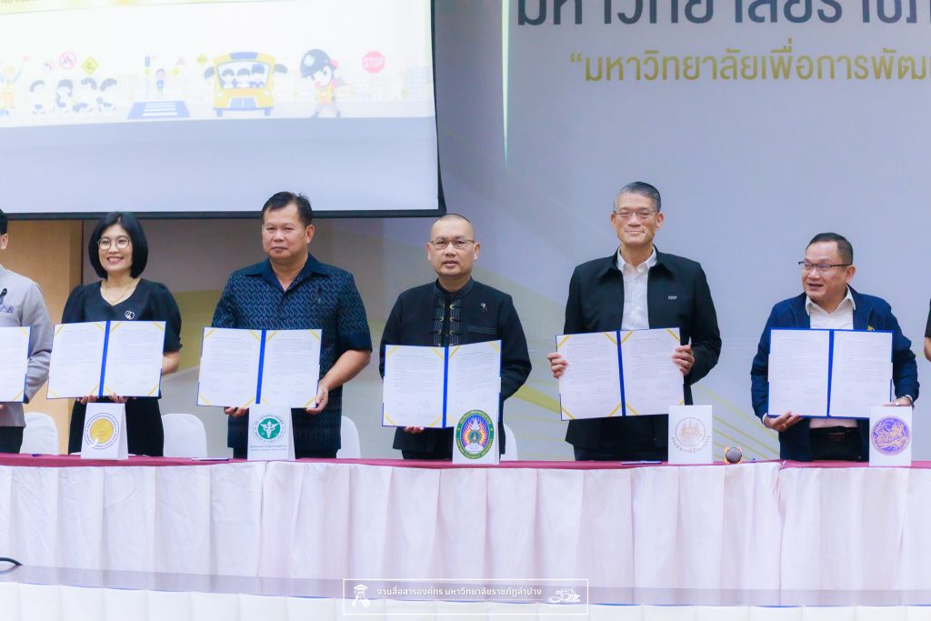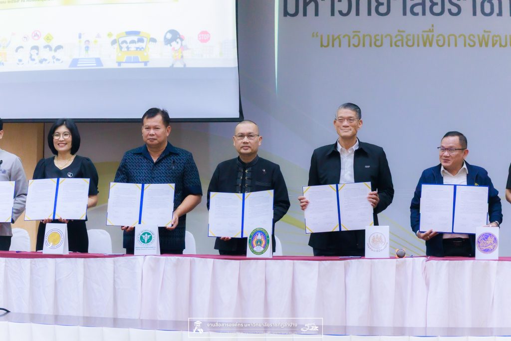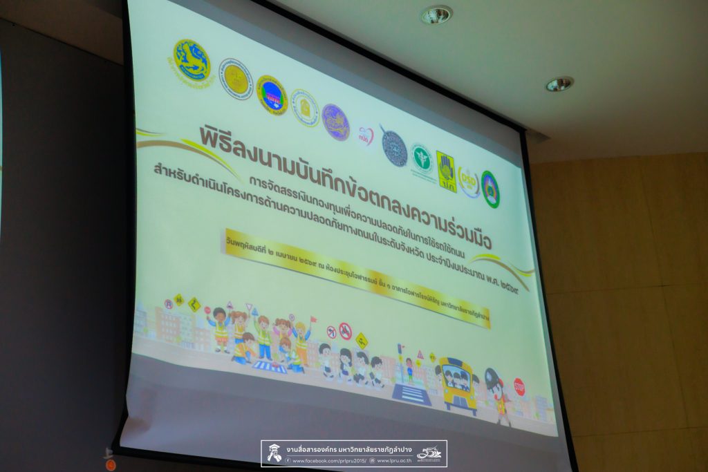 เมื่อวันที่ 2 เมษายน 2569 รศ.ดร.ปริเยศ สิทธิสรวง รองอธิการบดีฝ่ายบริหาร มหาวิทยาลัยราชภัฏลำปาง ลงนามบันทึกข้อตกลงความร่วมมือ (MOU) การจัดสรรเงินกองทุนเพื่อความปลอดภัยในการใช้รถใช้ถนน (กปถ.) สำหรับดำเนินโครงการด้านความปลอดภัยทางถนนในระดับจังหวัด ประจำปีงบประมาณ พ.ศ. 2569 ร่วมกับ สำนักงานขนสังจังหวัดลำปาง กรมการขนส่งทางบก โดยมี นายโกศล ธนบัตร ขนส่งจังหวัดลำปาง เป็นประธานในการลงนามบันทึกข้อตกลงความร่วมมือ (MOU) ณ ห้องประชุมโอฬารรมย์ ชั้น 1 อาคารโอฬาร โรจน์หิรัญ มหาวิทยาลัยราชภัฏลำปาง มีหน่วยงานที่ร่วมลงนามบันทึกข้อตกลงความร่วมมือ (MOU) และได้รับการจัดสรรงบประมาณจำนวน 10 หน่วยงาน ดังนี้ ตำรวจภูธรจังหวัดลำปาง สถาบันพัฒนาฝีมือแรงงาน 10 ลำปาง สำนักงานสาธารณสุขจังหวัดลำปาง สำนักงานยุติธรรมจังหวัดลำปาง ศูนย์ป้องกันและบรรเทาสาธารณภัย เขต 10 ลำปาง ที่ทำการปกครองจังหวัดลำปาง สำนักงานป้องกันและบรรเทาสาธารณภัยจังหวัดลำปาง สำนักงานศึกษาธิการจังหวัดลำปาง มหาวิทยาลัยราชภัฏลำปาง และองค์การบริหารส่วนตำบลบ้านแลง