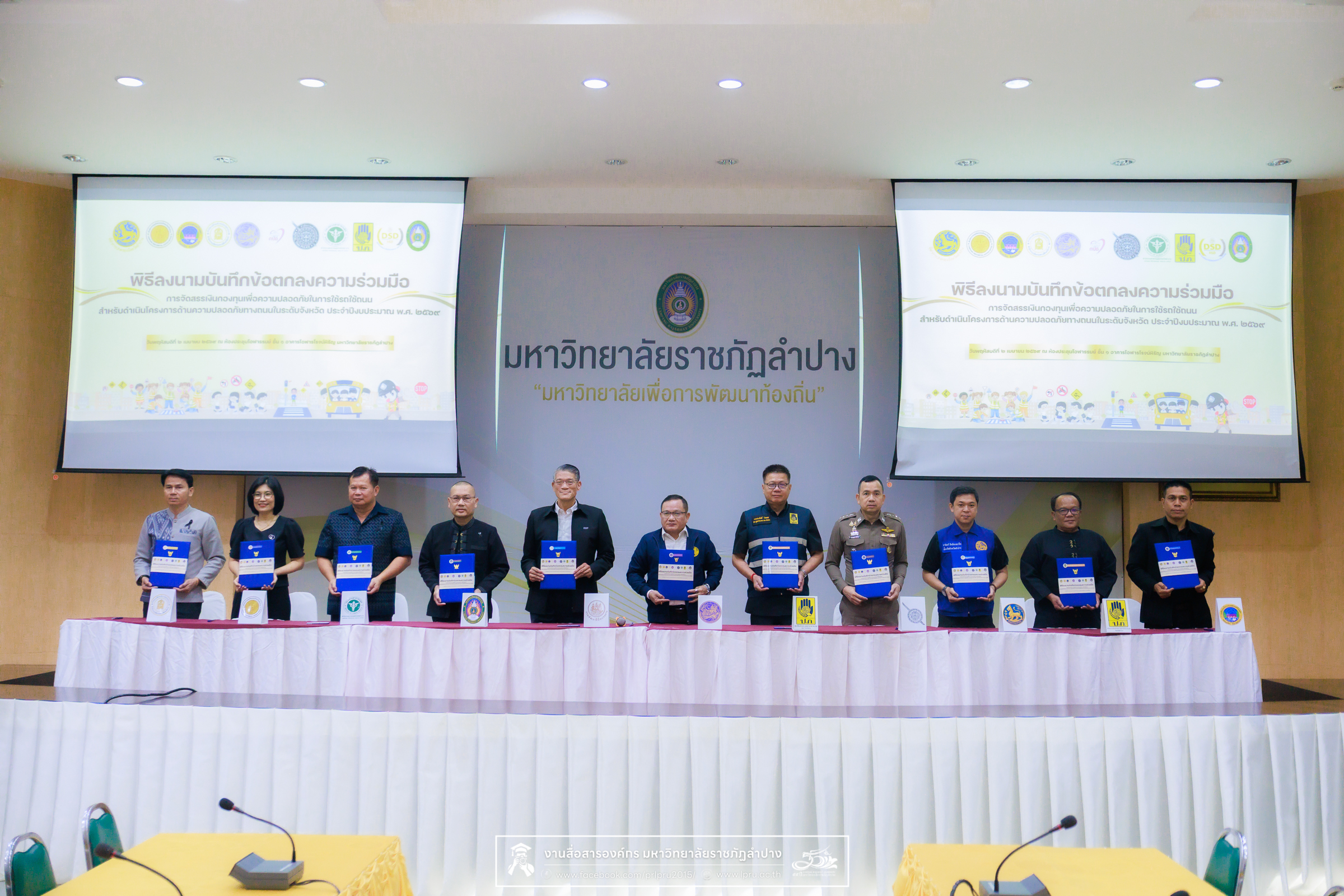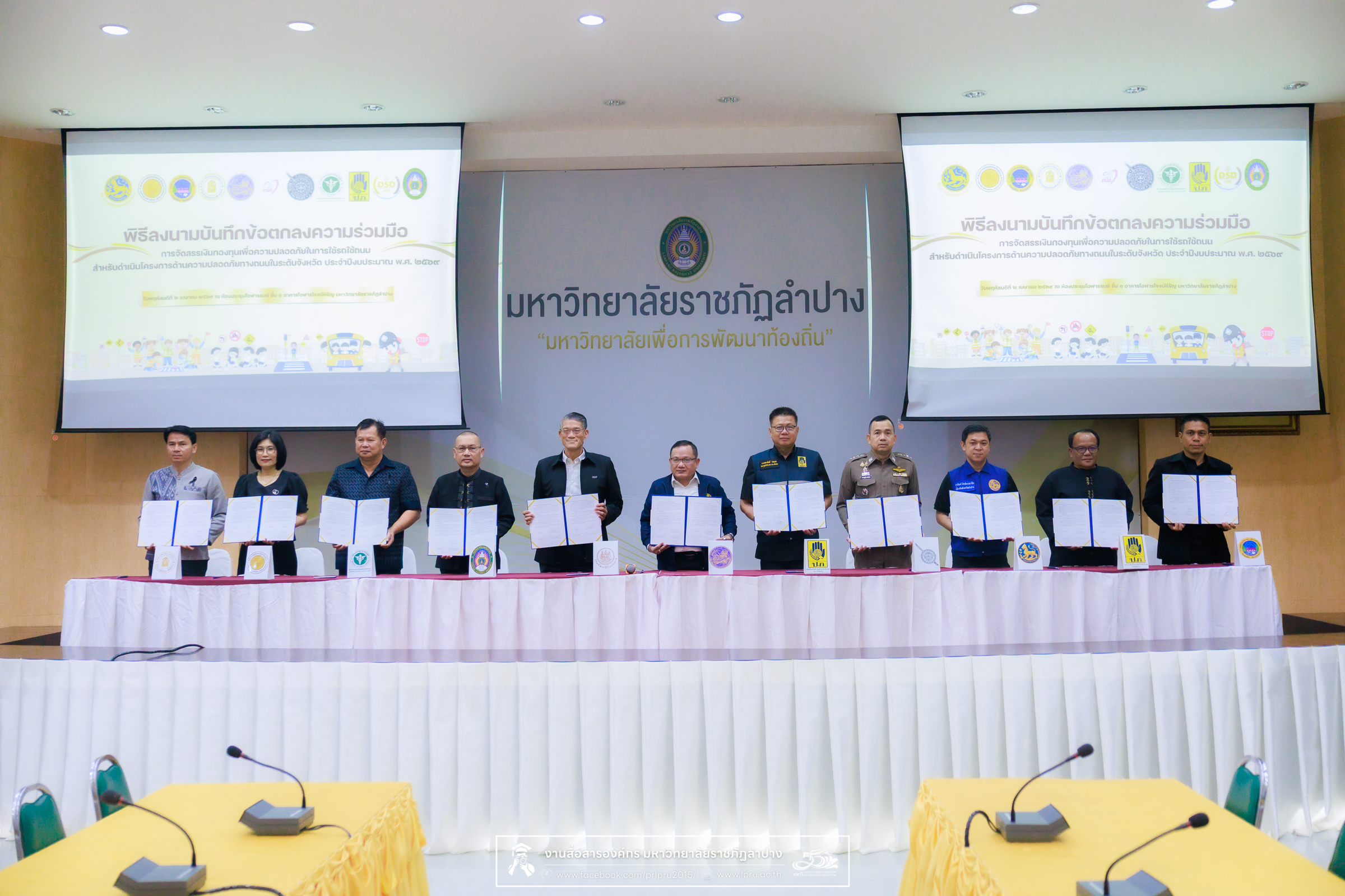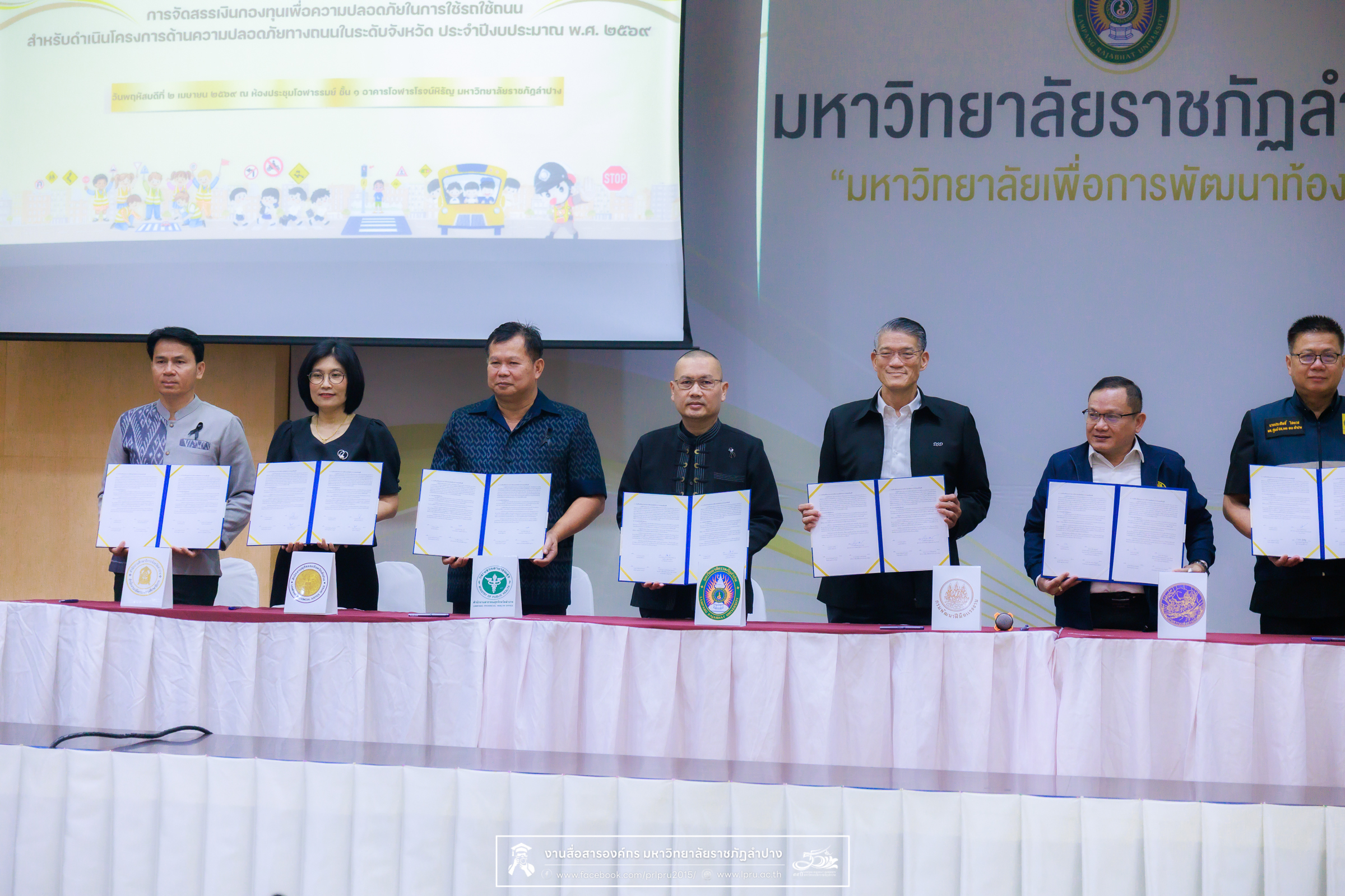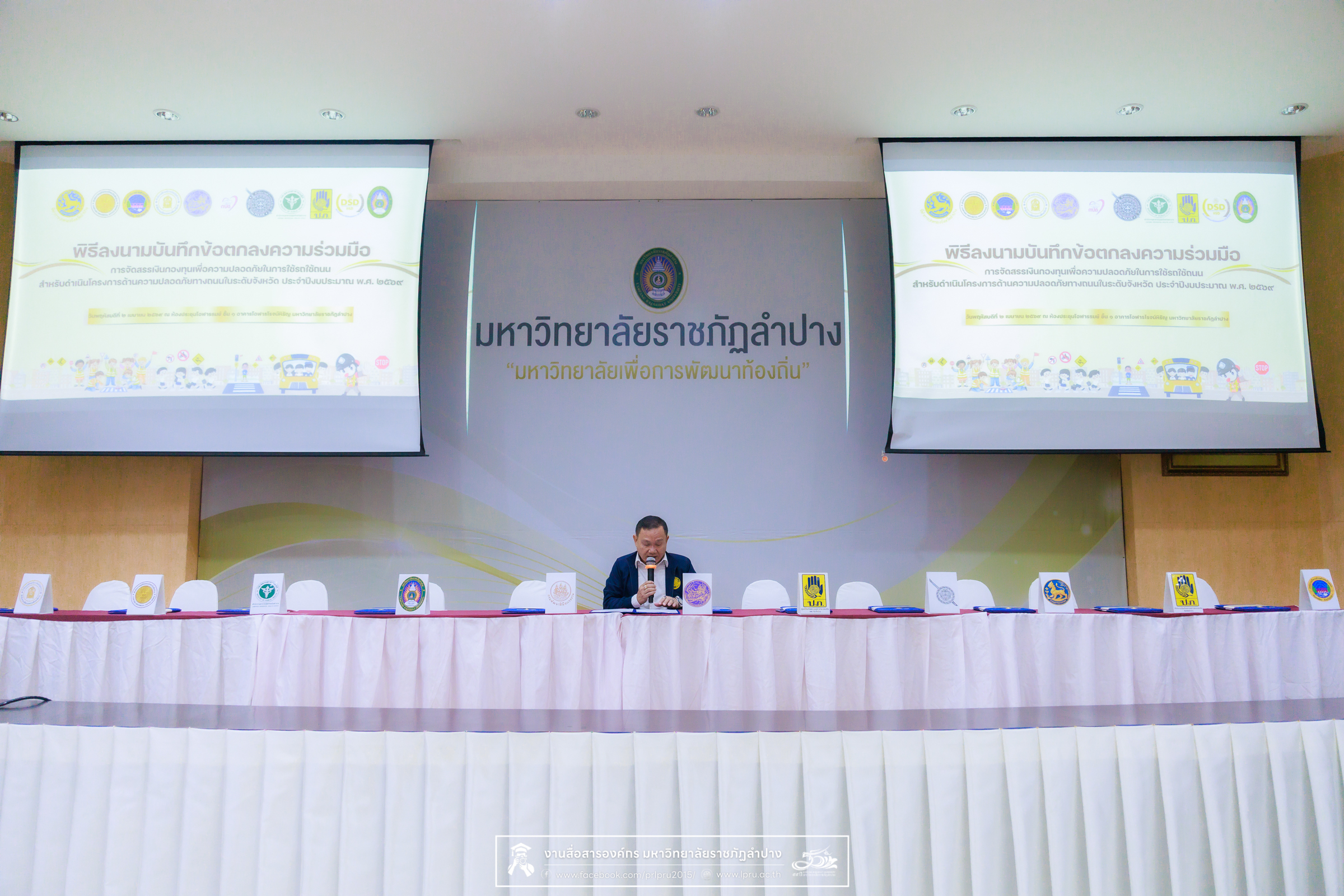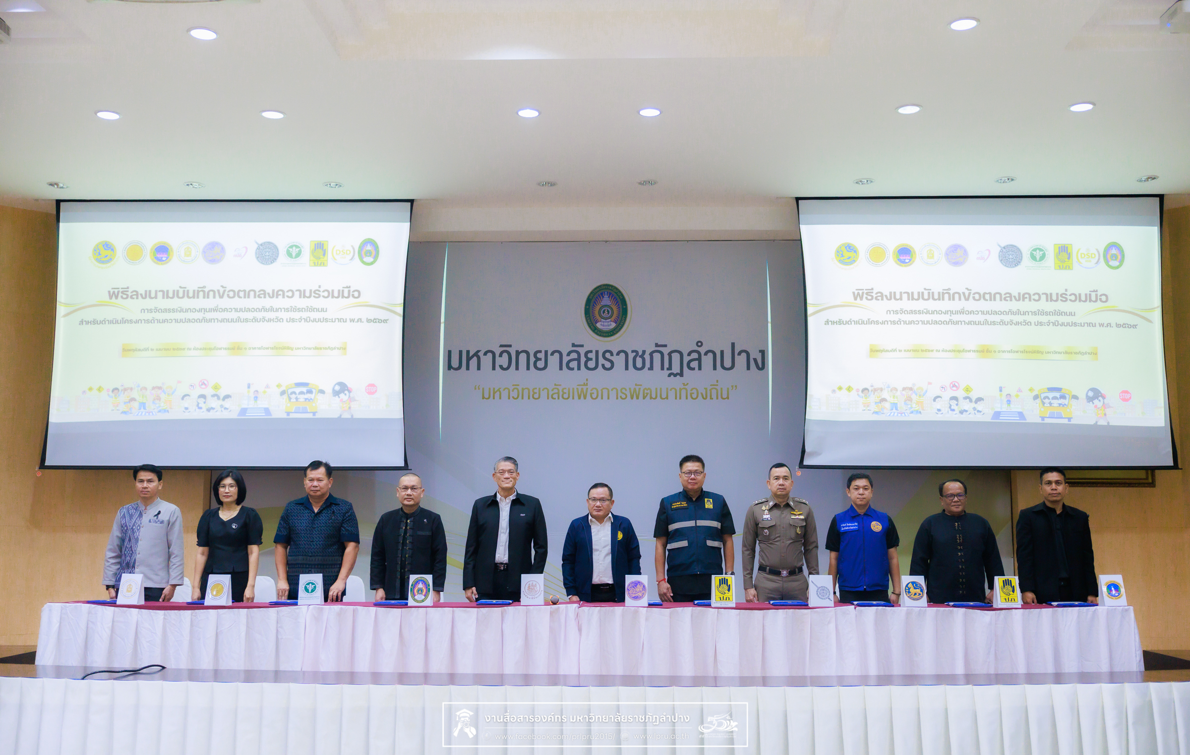 เมื่อวันที่ 2 เมษายน 2569 รศ.ดร.ปริเยศ สิทธิสรวง รองอธิการบดีฝ่ายบริหาร มหาวิทยาลัยราชภัฏลำปาง ลงนามบันทึกข้อตกลงความร่วมมือ (MOU) การจัดสรรเงินกองทุนเพื่อความปลอดภัยในการใช้รถใช้ถนน (กปถ.) สำหรับดำเนินโครงการด้านความปลอดภัยทางถนนในระดับจังหวัด ประจำปีงบประมาณ พ.ศ. 2569 ร่วมกับ สำนักงานขนสังจังหวัดลำปาง กรมการขนส่งทางบก โดยมี นายโกศล ธนบัตร ขนส่งจังหวัดลำปาง เป็นประธานในการลงนามบันทึกข้อตกลงความร่วมมือ (MOU) ณ ห้องประชุมโอฬารรมย์ ชั้น 1 อาคารโอฬาร โรจน์หิรัญ มหาวิทยาลัยราชภัฏลำปาง มีหน่วยงานที่ร่วมลงนามบันทึกข้อตกลงความร่วมมือ (MOU) และได้รับการจัดสรรงบประมาณจำนวน 10 หน่วยงาน ดังนี้ ตำรวจภูธรจังหวัดลำปาง สถาบันพัฒนาฝีมือแรงงาน 10 ลำปาง สำนักงานสาธารณสุขจังหวัดลำปาง สำนักงานยุติธรรมจังหวัดลำปาง ศูนย์ป้องกันและบรรเทาสาธารณภัย เขต 10 ลำปาง ที่ทำการปกครองจังหวัดลำปาง สำนักงานป้องกันและบรรเทาสาธารณภัยจังหวัดลำปาง สำนักงานศึกษาธิการจังหวัดลำปาง มหาวิทยาลัยราชภัฏลำปาง และองค์การบริหารส่วนตำบลบ้านแลง
