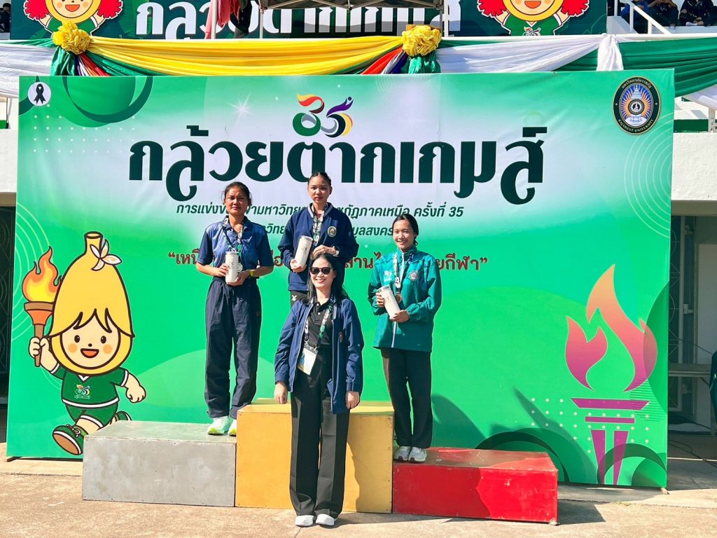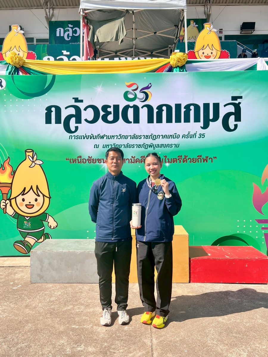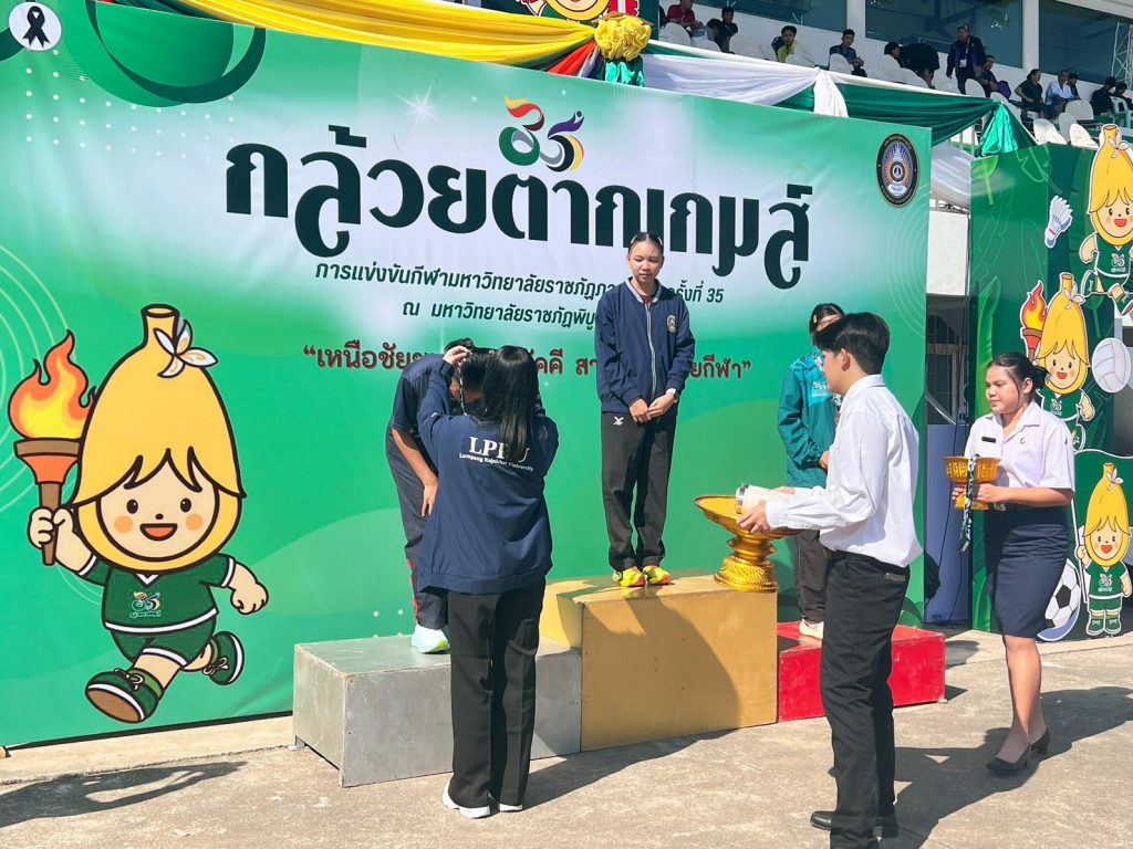 มหาวิทยาลัยราชภัฏลำปาง ขอแสดงความยินดีกับนักกีฬากรีฑาทุกคน ที่สามารถสร้างผลงานยอดเยี่ยมคว้าเหรียญรางวัลจากการแข่งขันกีฬามหาวิทยาลัยราชภัฏกลุ่มภาคเหนือ ครั้งที่ 35 “กล้วยตากเกมส์” โดยเมื่อวันที่ 2 ธันวาคม 2568 (วันที่ 3 ของการแข่งขัน ) นางสาวสุพัทธ์ ขัดผาบ รักษาการในตำแหน่งผู้อำนวยการกองพัฒนานักศึกษา มหาวิทยาลัยราชภัฏลำปาง ร่วมเป็นเกียรติมอบรางวัลให้กับนักกีฬาที่ทำผลงานได้อย่างยอดเยี่ยม