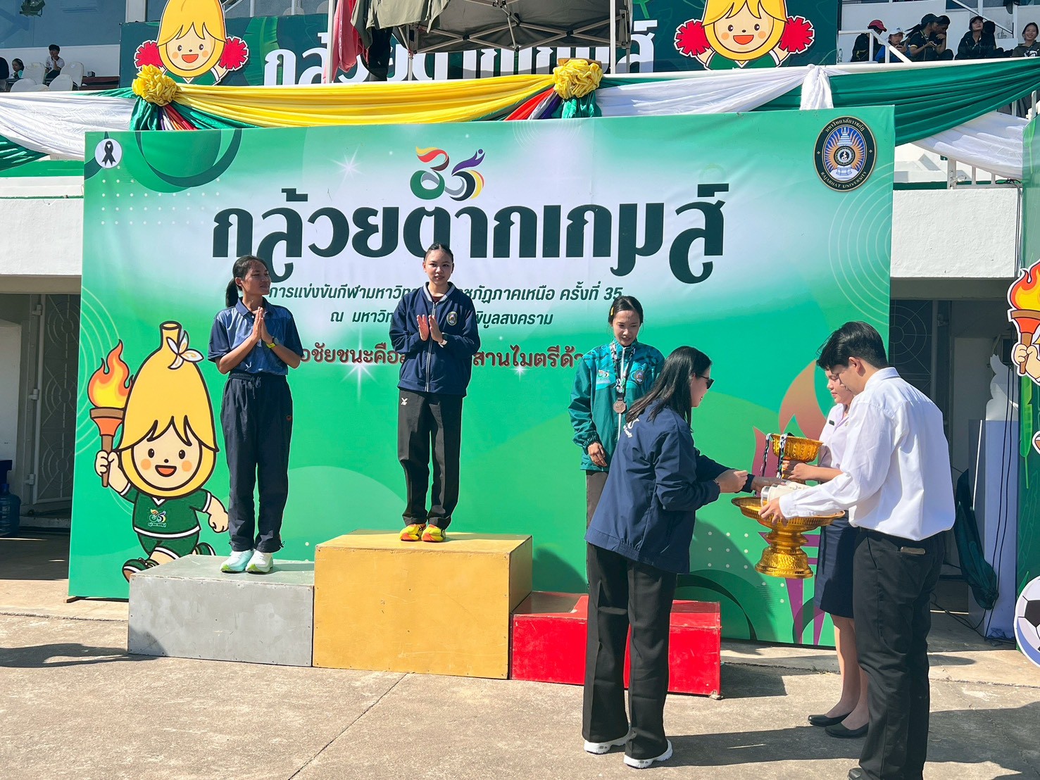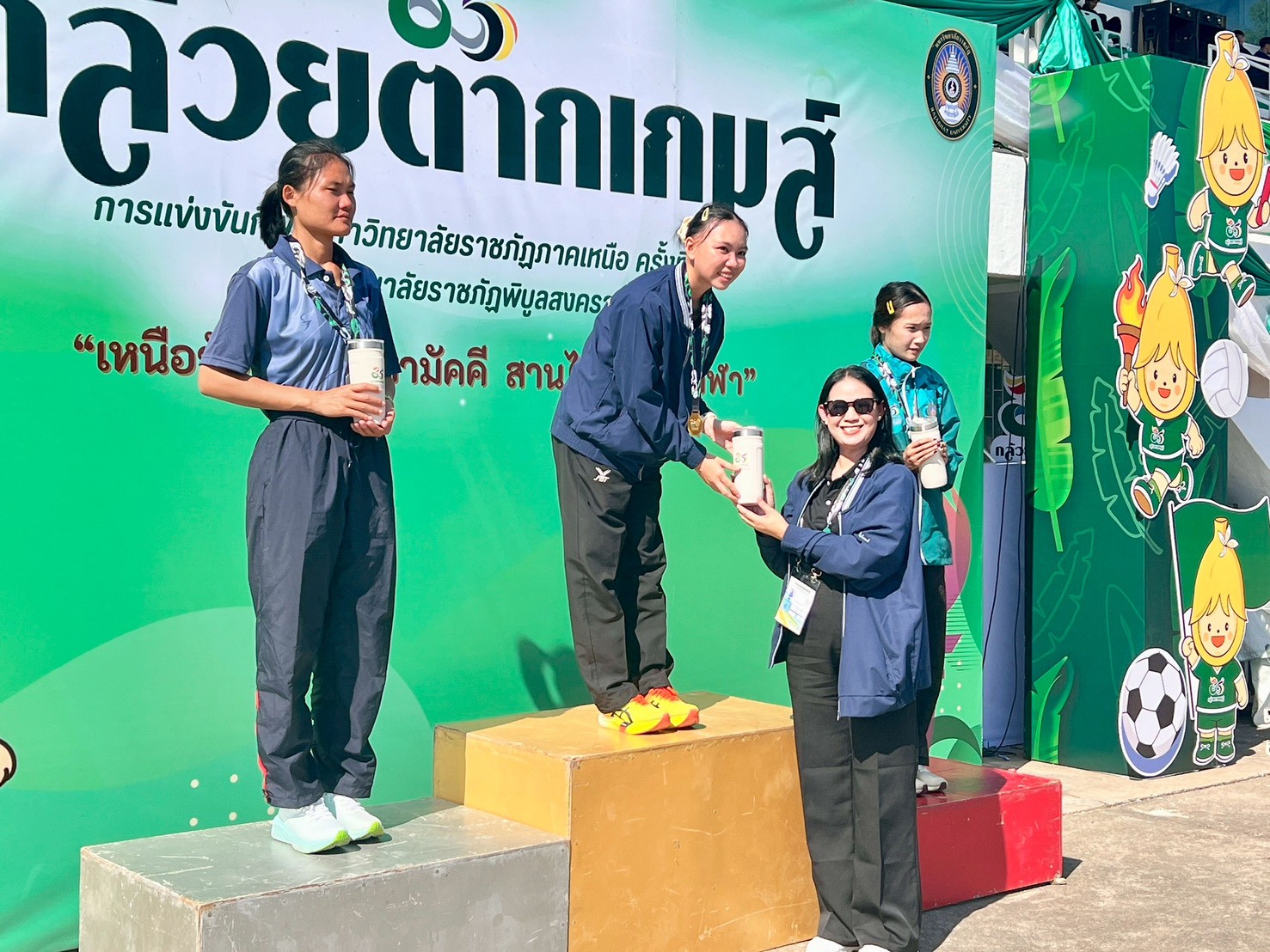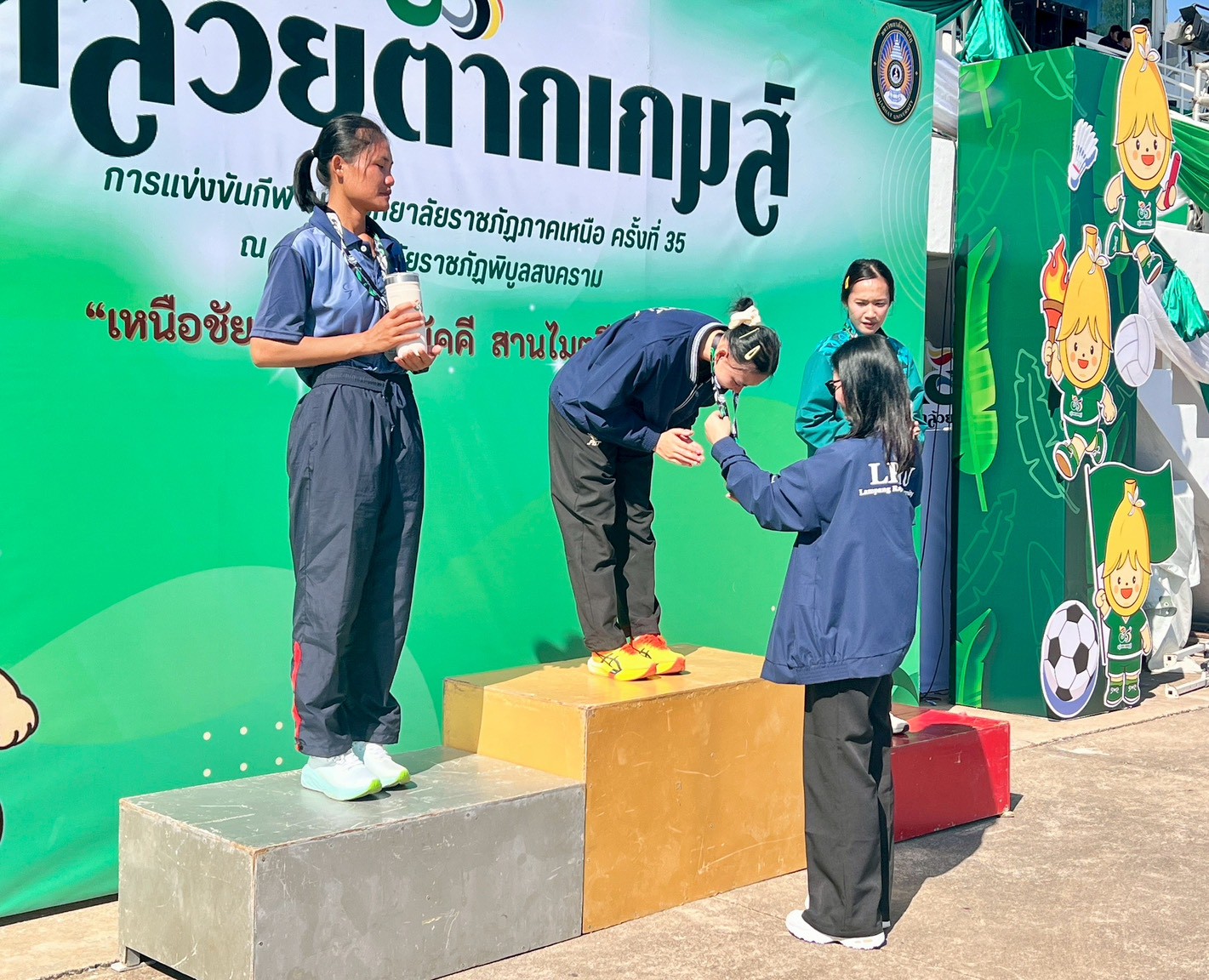 มหาวิทยาลัยราชภัฏลำปาง ขอแสดงความยินดีกับนักกีฬากรีฑาทุกคน ที่สามารถสร้างผลงานยอดเยี่ยมคว้าเหรียญรางวัลจากการแข่งขันกีฬามหาวิทยาลัยราชภัฏกลุ่มภาคเหนือ ครั้งที่ 35 “กล้วยตากเกมส์” โดยเมื่อวันที่ 2 ธันวาคม 2568 (วันที่ 3 ของการแข่งขัน ) นางสาวสุพัทธ์ ขัดผาบ รักษาการในตำแหน่งผู้อำนวยการกองพัฒนานักศึกษา มหาวิทยาลัยราชภัฏลำปาง ร่วมเป็นเกียรติมอบรางวัลให้กับนักกีฬาที่ทำผลงานได้อย่างยอดเยี่ยม