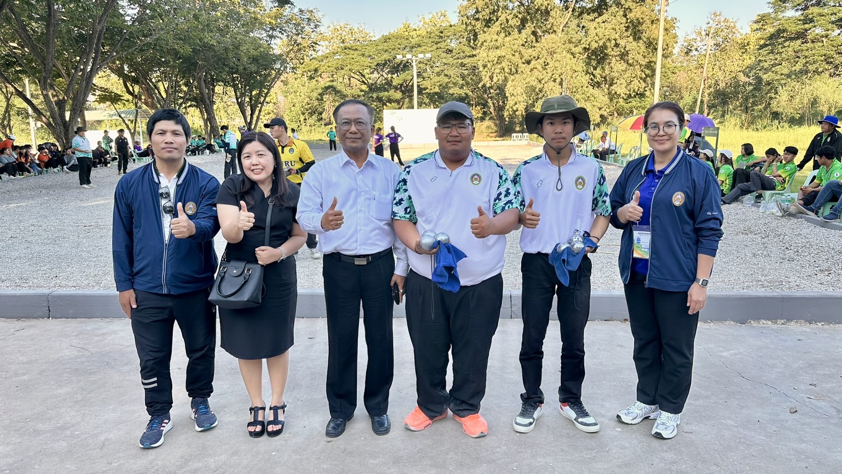 อธิการบดี มร.ลป. ให้กำลังใจนักกีฬา และร่วมแสดงความยินดีนักกีฬาเปตองที่สามารถคว้าเหรียญรางวัลในการแข่งขันกีฬามหาวิทยาลัยราชภัฏภาคเหนือ ครั้งที่ 35 “กล้วยตากเกมส์”