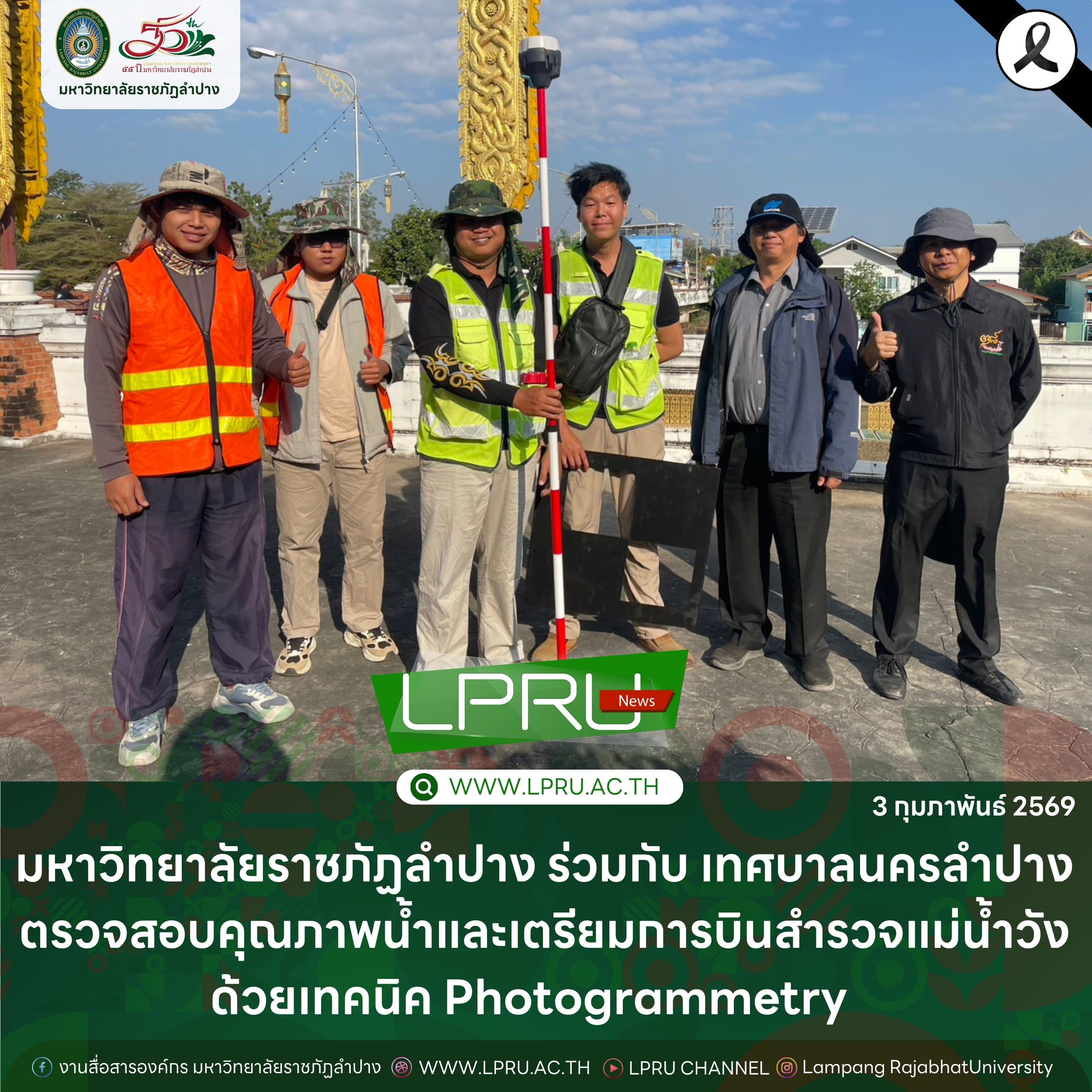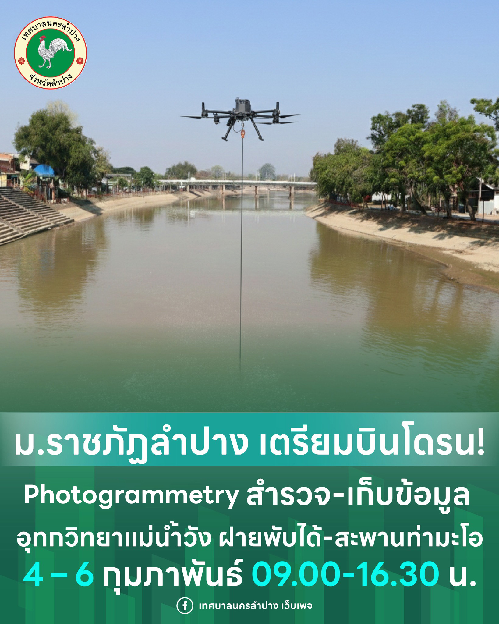 มหาวิทยาลัยราชภัฏลำปาง ร่วมกับ เทศบาลนครลำปาง ตรวจสอบคุณภาพน้ำ และเตรียมการบินสำรวจแม่น้ำวังด้วยเทคนิค Photogrammetry