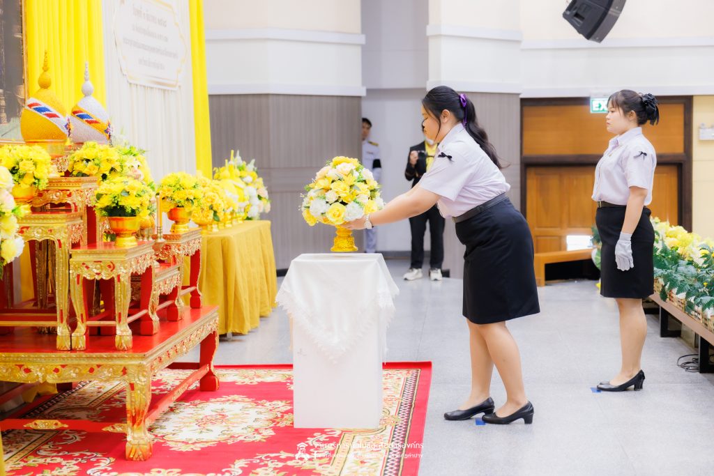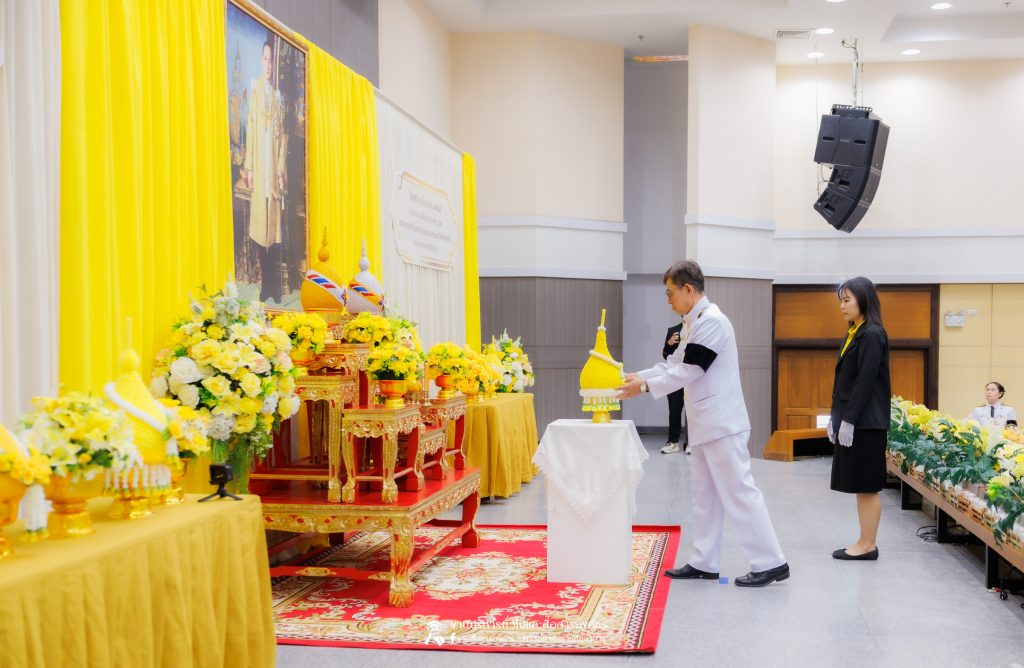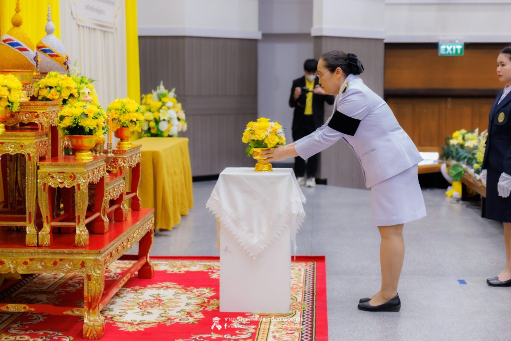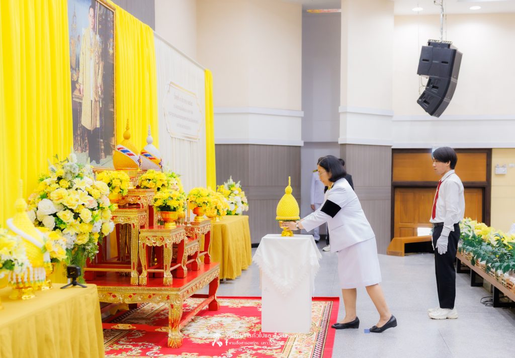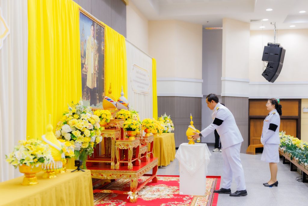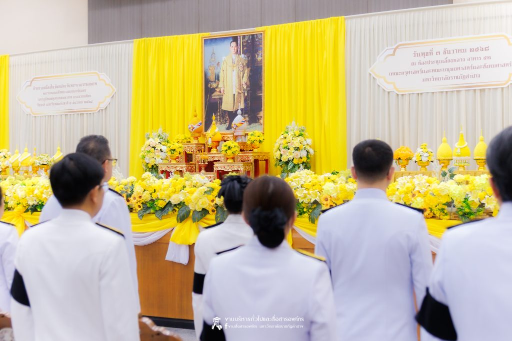 ภายในพิธี อธิการบดีได้ประกอบพิธีวางพานพุ่มดอกไม้ ถวายบังคมพระบรมฉายาลักษณ์ พร้อมนำกล่าวน้อมรำลึกในพระมหากรุณาธิคุณ ที่พระองค์ทรงอุทิศพระวรกายเพื่อพัฒนาคุณภาพชีวิตของประชาชนไทยในทุกภูมิภาค โดยเฉพาะโครงการอันเนื่องมาจากพระราชดำริด้านการศึกษา การเกษตรกรรม การจัดการน้ำ และการพัฒนาชุมชน ซึ่งมหาวิทยาลัยราชภัฏลำปางได้น้อมนำหลักปรัชญาเศรษฐกิจพอเพียงมาปรับใช้ในการดำเนินงาน สะท้อนถึงความมุ่งมั่นในการสืบสาน รักษา และต่อยอดแนวพระราชดำริ ให้เกิดประโยชน์กับสังคมและชุมชนในพื้นที่และการพัฒนาท้องถิ่นอย่างต่อเนื่อง