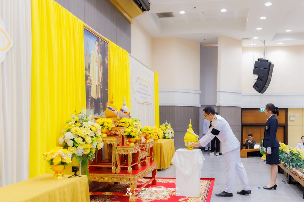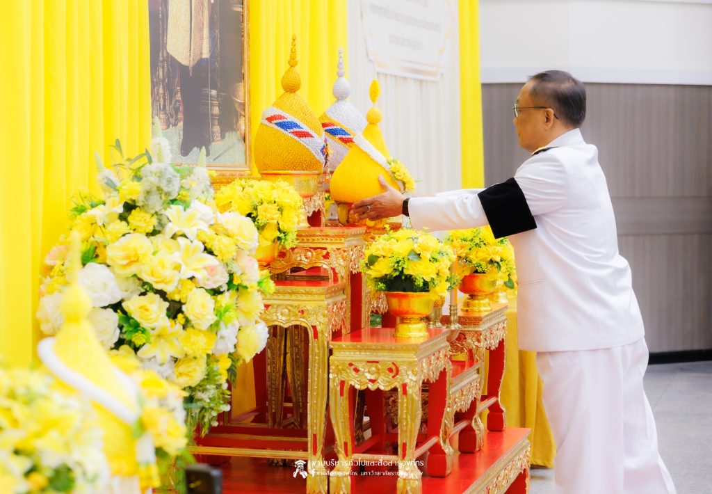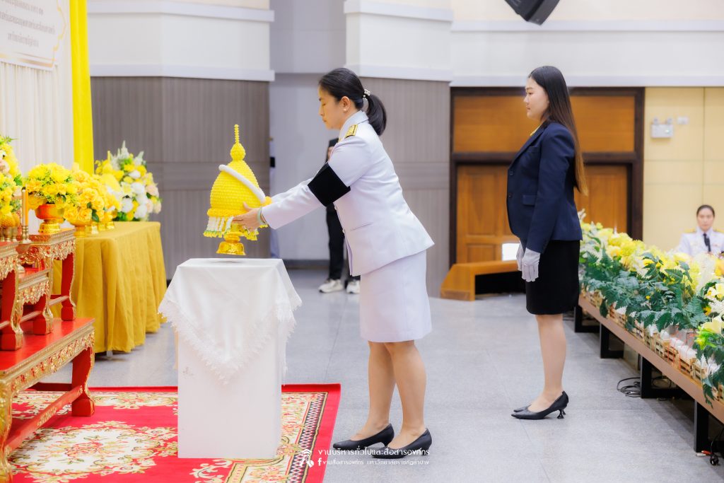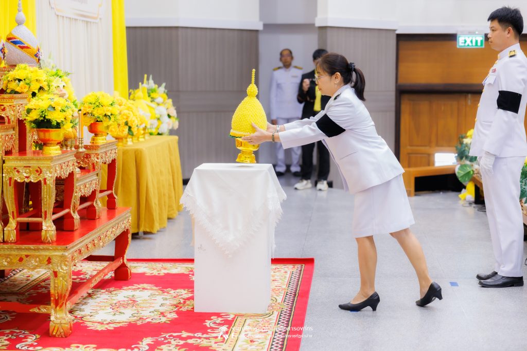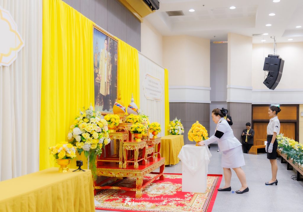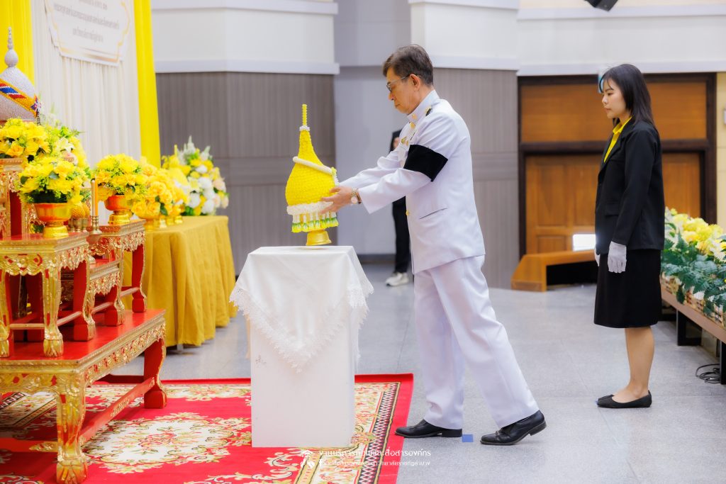 ภายในพิธี อธิการบดีได้ประกอบพิธีวางพานพุ่มดอกไม้ ถวายบังคมพระบรมฉายาลักษณ์ พร้อมนำกล่าวน้อมรำลึกในพระมหากรุณาธิคุณ ที่พระองค์ทรงอุทิศพระวรกายเพื่อพัฒนาคุณภาพชีวิตของประชาชนไทยในทุกภูมิภาค โดยเฉพาะโครงการอันเนื่องมาจากพระราชดำริด้านการศึกษา การเกษตรกรรม การจัดการน้ำ และการพัฒนาชุมชน ซึ่งมหาวิทยาลัยราชภัฏลำปางได้น้อมนำหลักปรัชญาเศรษฐกิจพอเพียงมาปรับใช้ในการดำเนินงาน สะท้อนถึงความมุ่งมั่นในการสืบสาน รักษา และต่อยอดแนวพระราชดำริ ให้เกิดประโยชน์กับสังคมและชุมชนในพื้นที่และการพัฒนาท้องถิ่นอย่างต่อเนื่อง