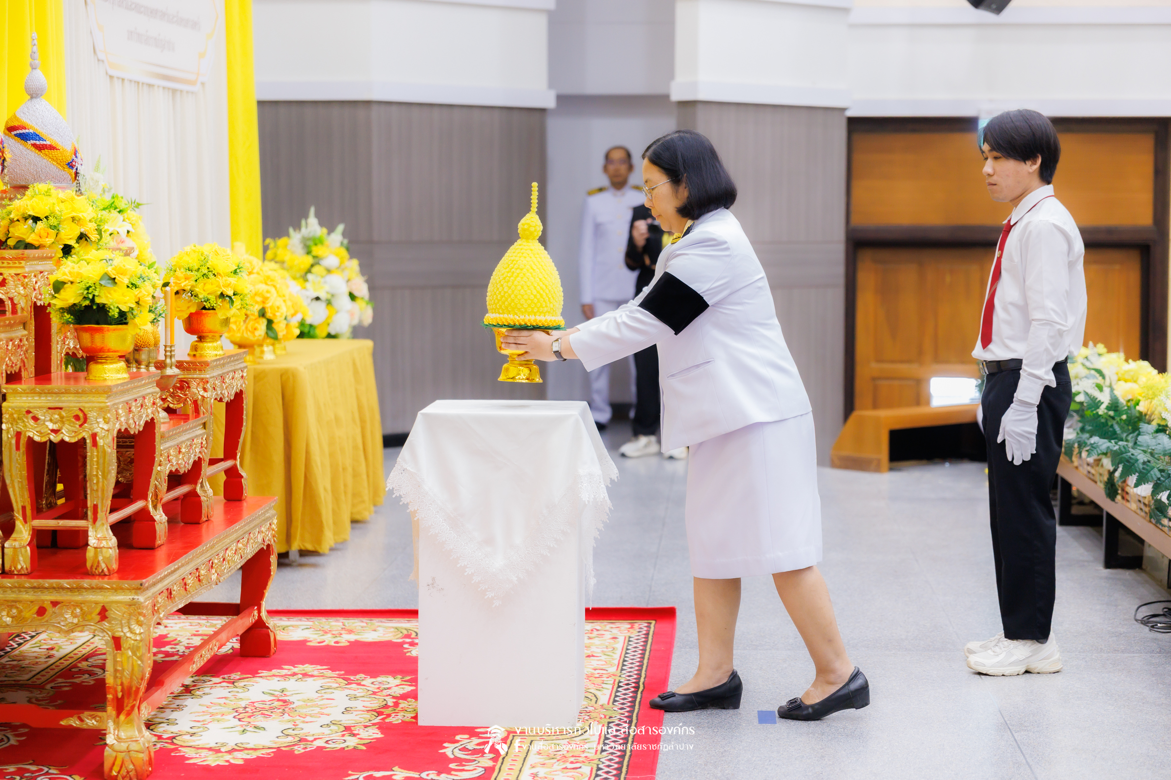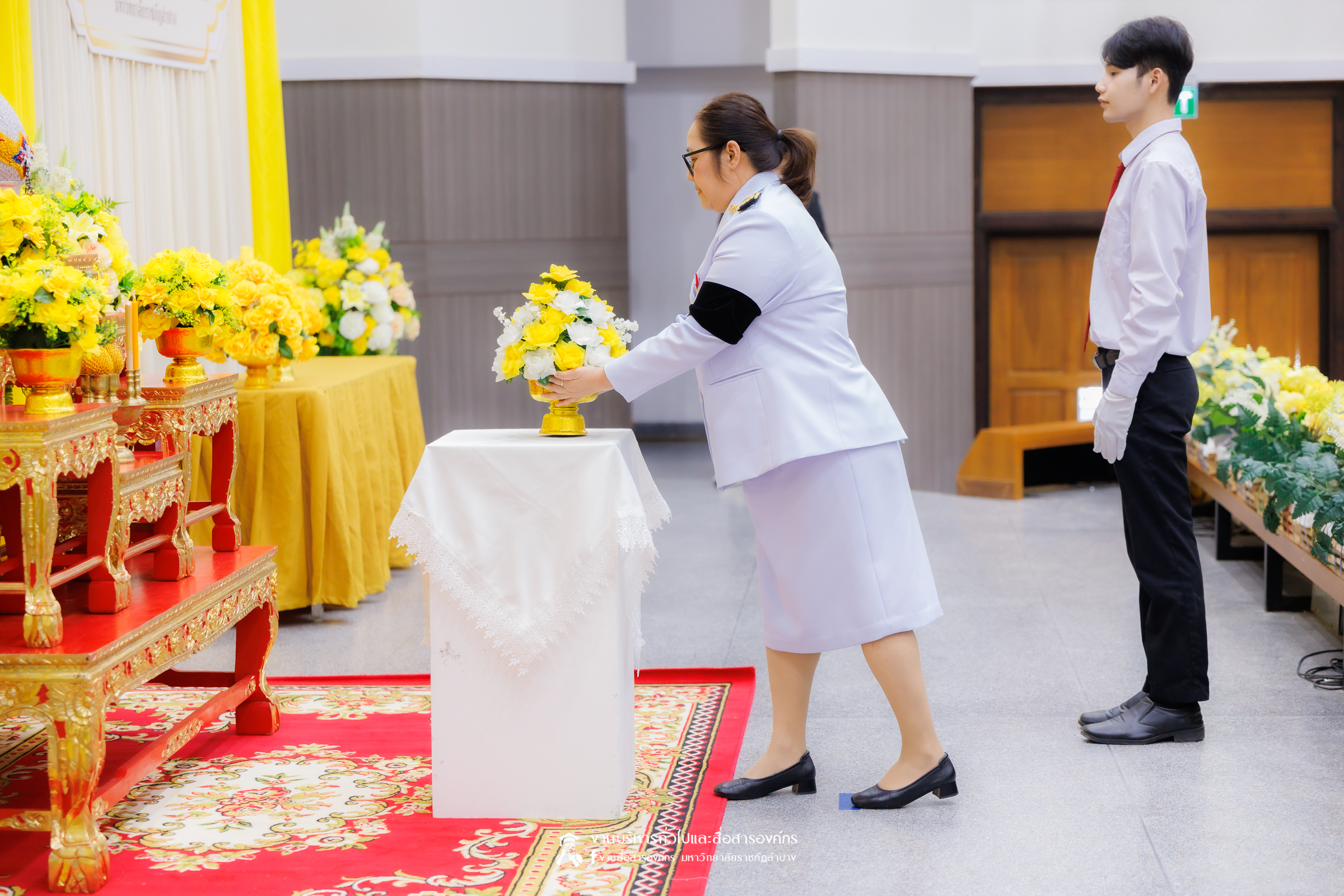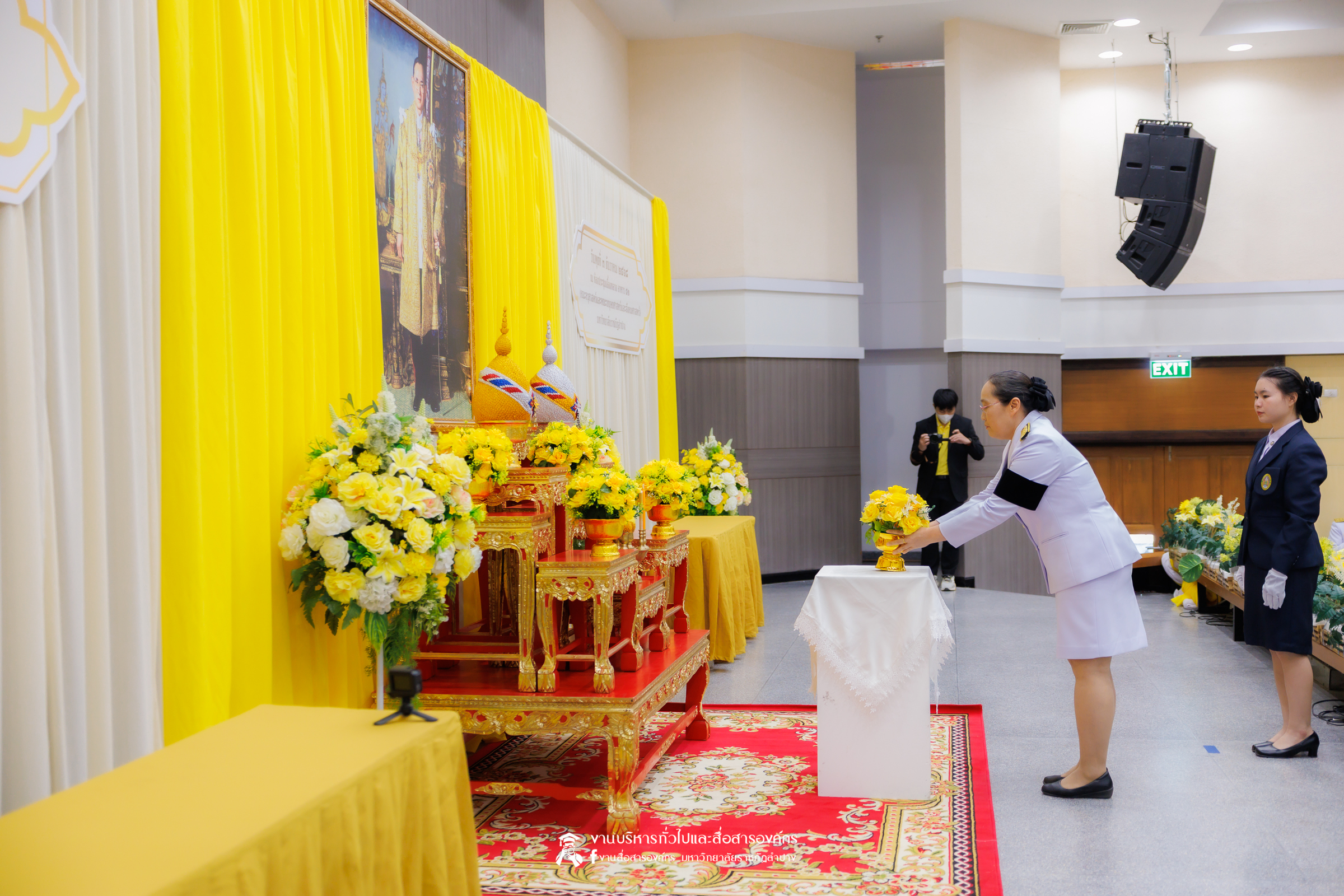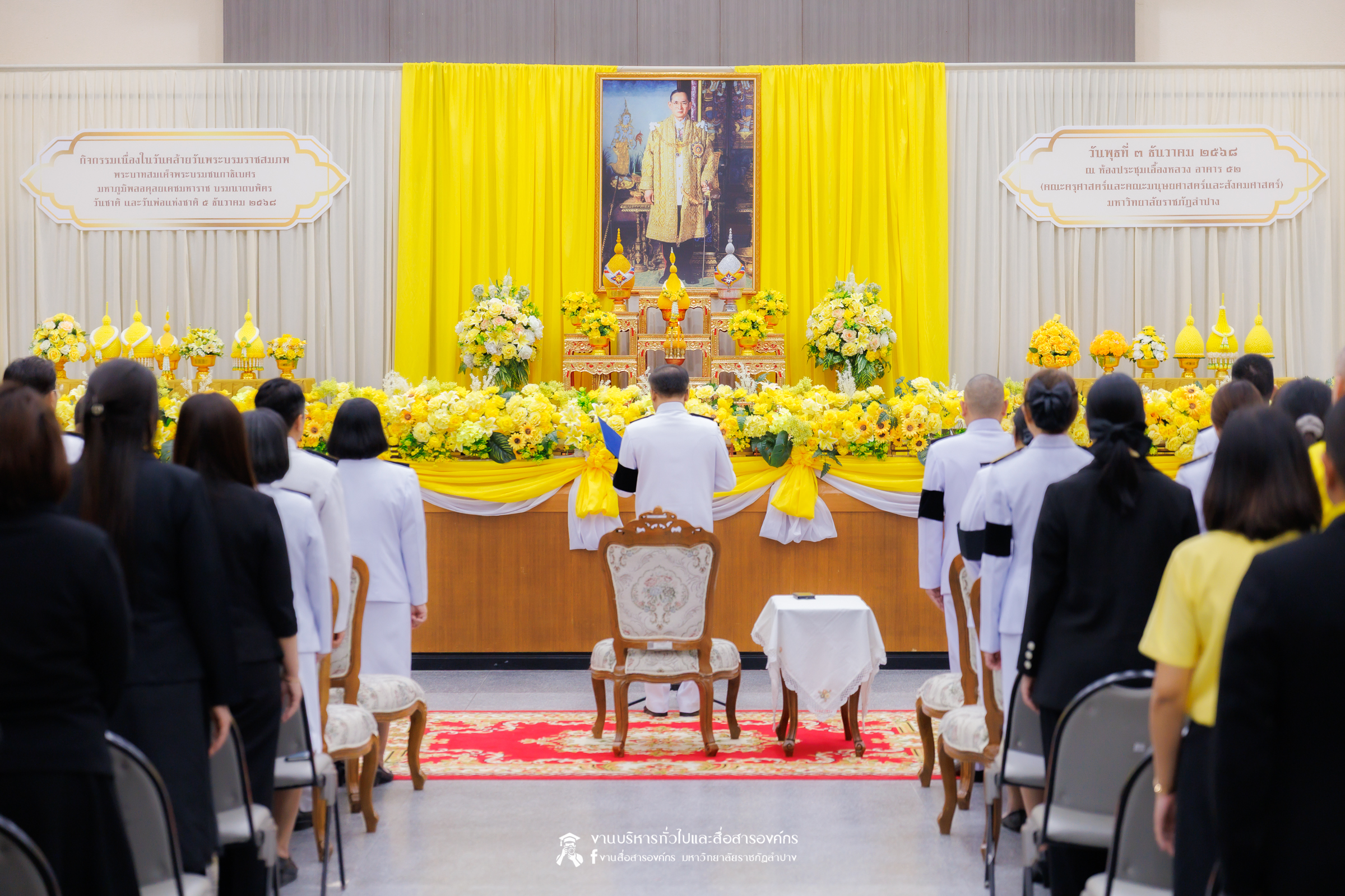 ภายในพิธี อธิการบดีได้ประกอบพิธีวางพานพุ่มดอกไม้ ถวายบังคมพระบรมฉายาลักษณ์ พร้อมนำกล่าวน้อมรำลึกในพระมหากรุณาธิคุณ ที่พระองค์ทรงอุทิศพระวรกายเพื่อพัฒนาคุณภาพชีวิตของประชาชนไทยในทุกภูมิภาค โดยเฉพาะโครงการอันเนื่องมาจากพระราชดำริด้านการศึกษา การเกษตรกรรม การจัดการน้ำ และการพัฒนาชุมชน ซึ่งมหาวิทยาลัยราชภัฏลำปางได้น้อมนำหลักปรัชญาเศรษฐกิจพอเพียงมาปรับใช้ในการดำเนินงาน สะท้อนถึงความมุ่งมั่นในการสืบสาน รักษา และต่อยอดแนวพระราชดำริ ให้เกิดประโยชน์กับสังคมและชุมชนในพื้นที่และการพัฒนาท้องถิ่นอย่างต่อเนื่อง