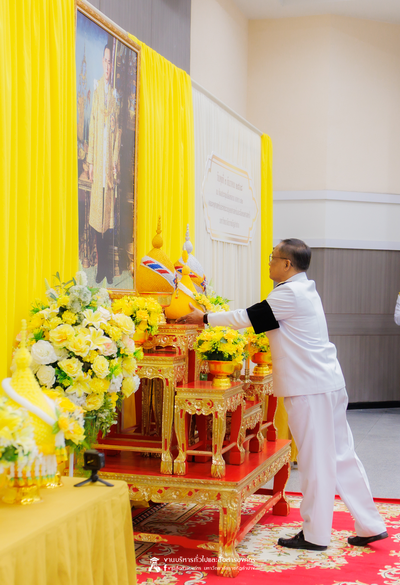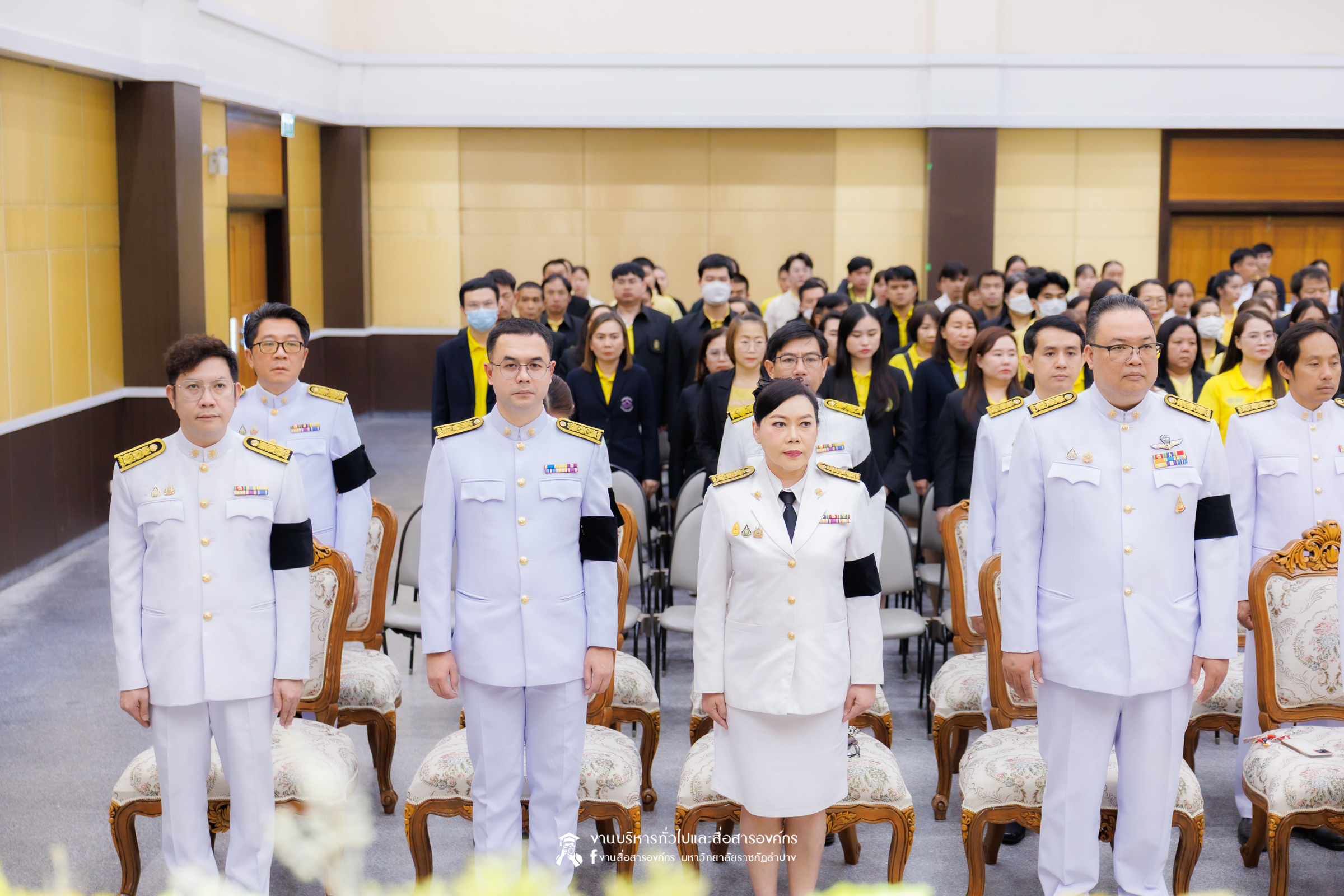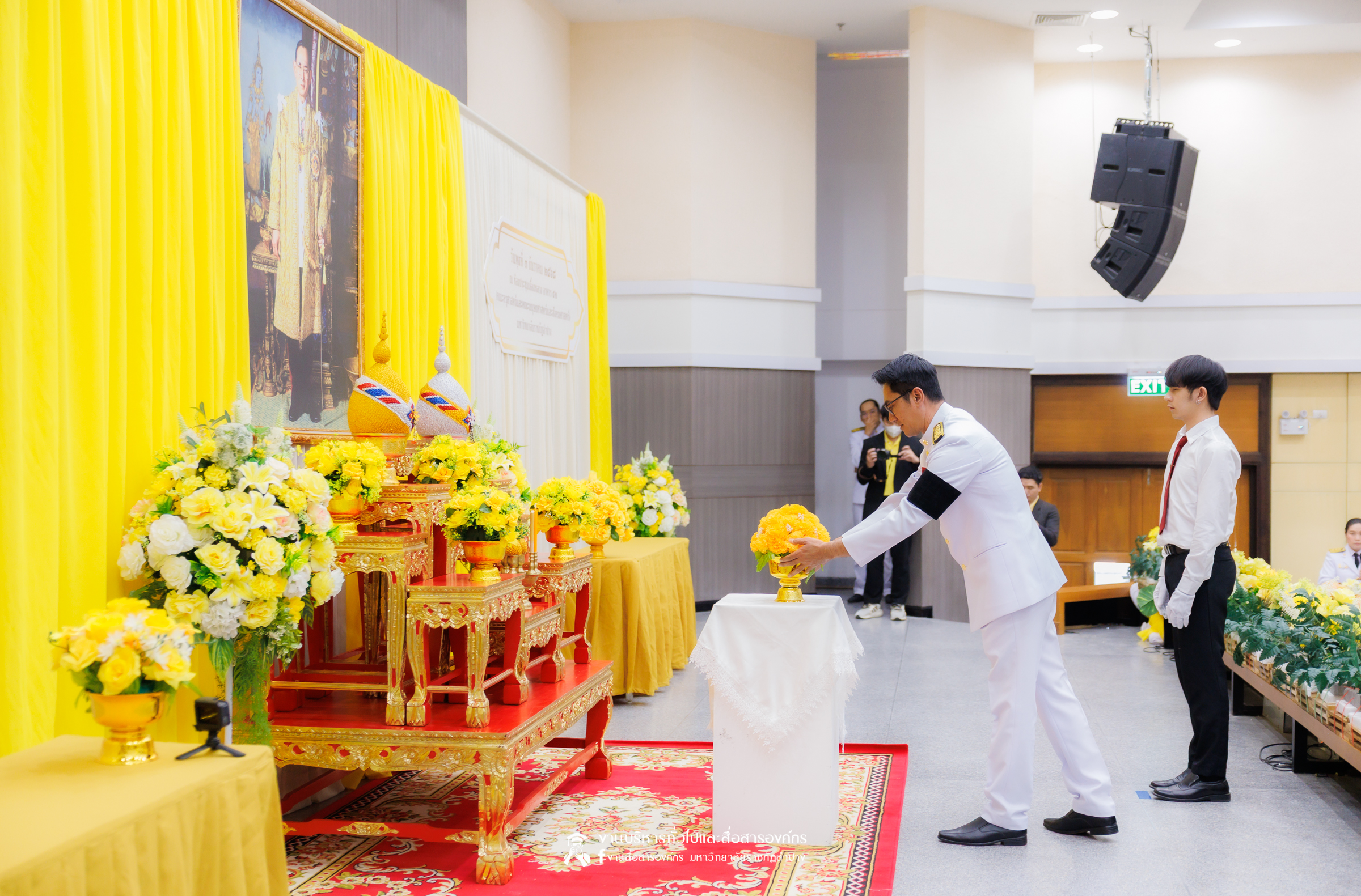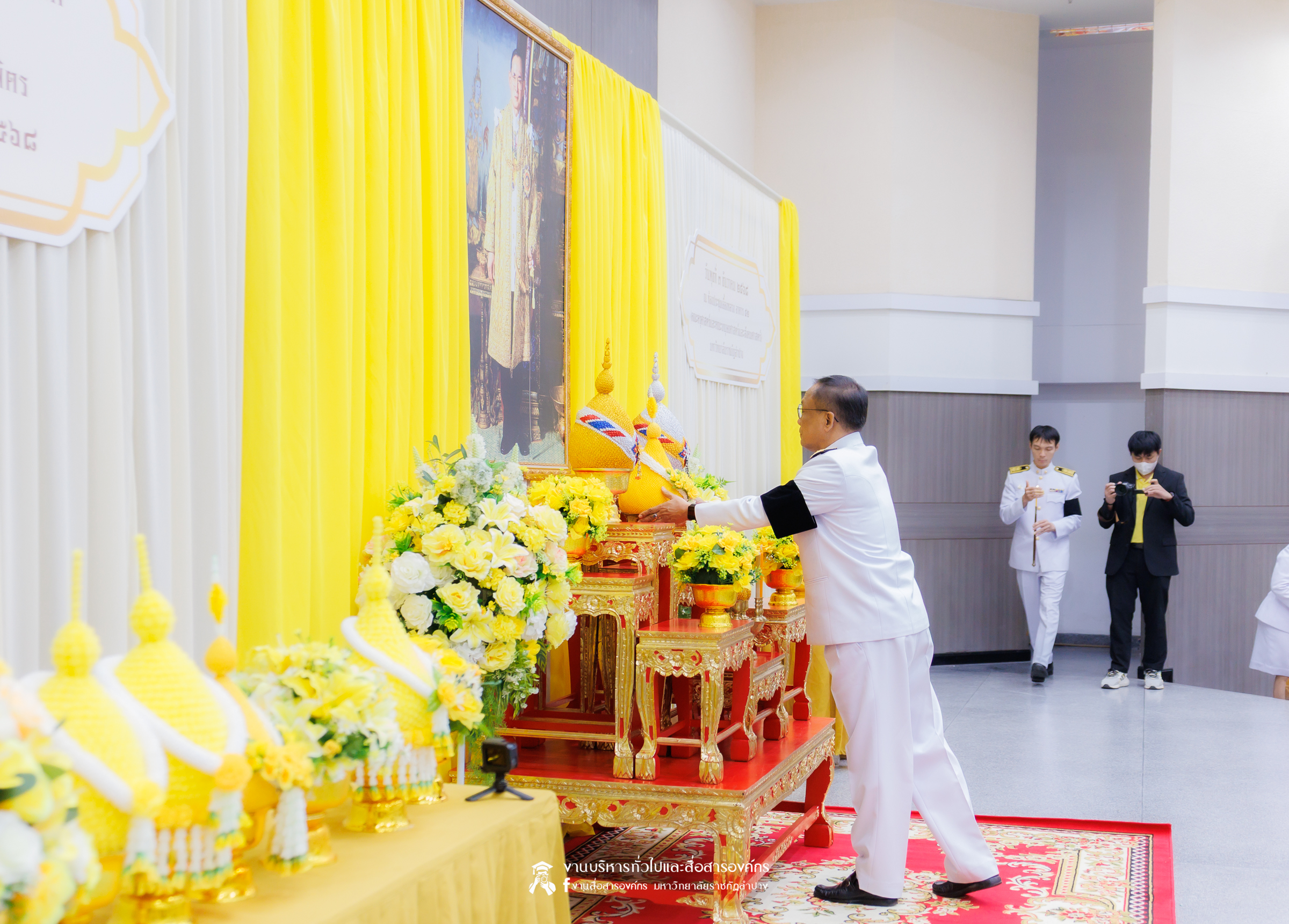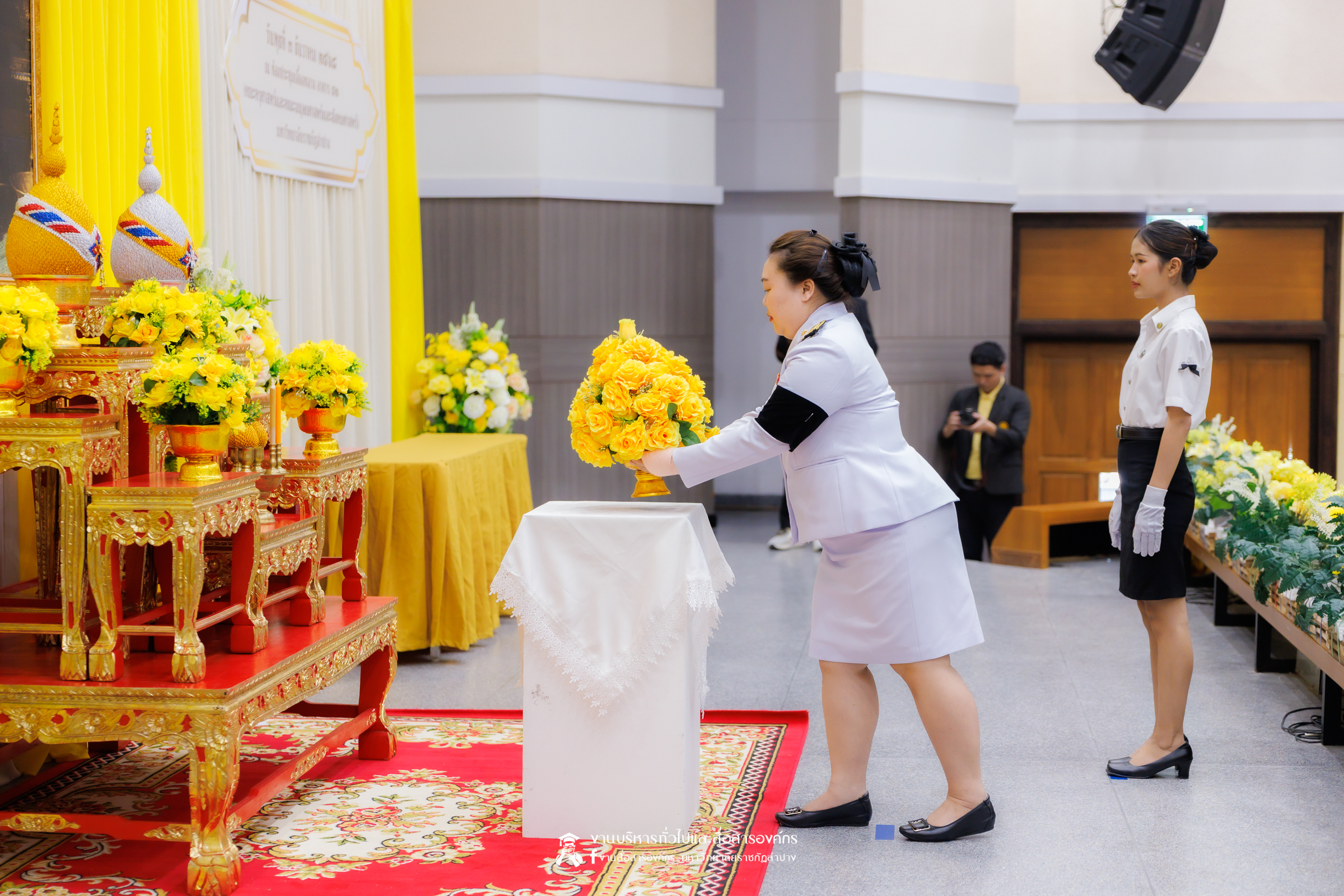 ภายในพิธี อธิการบดีได้ประกอบพิธีวางพานพุ่มดอกไม้ ถวายบังคมพระบรมฉายาลักษณ์ พร้อมนำกล่าวน้อมรำลึกในพระมหากรุณาธิคุณ ที่พระองค์ทรงอุทิศพระวรกายเพื่อพัฒนาคุณภาพชีวิตของประชาชนไทยในทุกภูมิภาค โดยเฉพาะโครงการอันเนื่องมาจากพระราชดำริด้านการศึกษา การเกษตรกรรม การจัดการน้ำ และการพัฒนาชุมชน ซึ่งมหาวิทยาลัยราชภัฏลำปางได้น้อมนำหลักปรัชญาเศรษฐกิจพอเพียงมาปรับใช้ในการดำเนินงาน สะท้อนถึงความมุ่งมั่นในการสืบสาน รักษา และต่อยอดแนวพระราชดำริ ให้เกิดประโยชน์กับสังคมและชุมชนในพื้นที่และการพัฒนาท้องถิ่นอย่างต่อเนื่อง