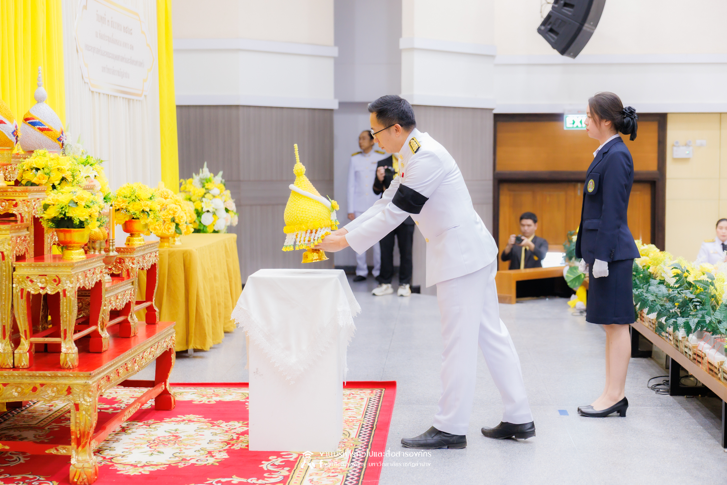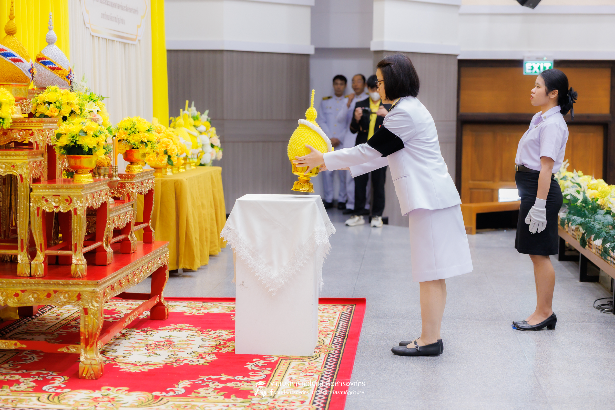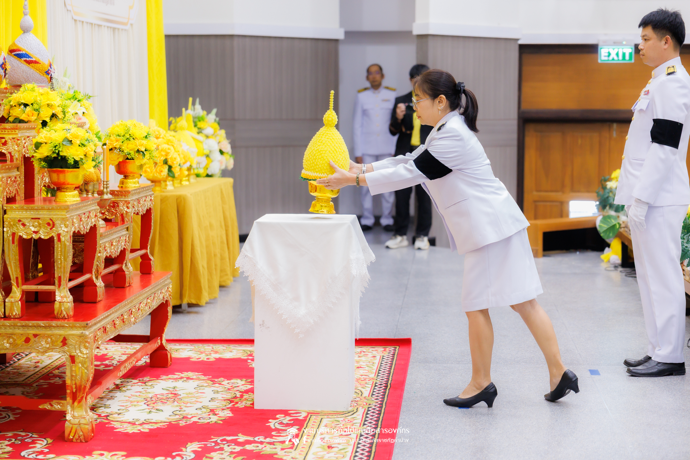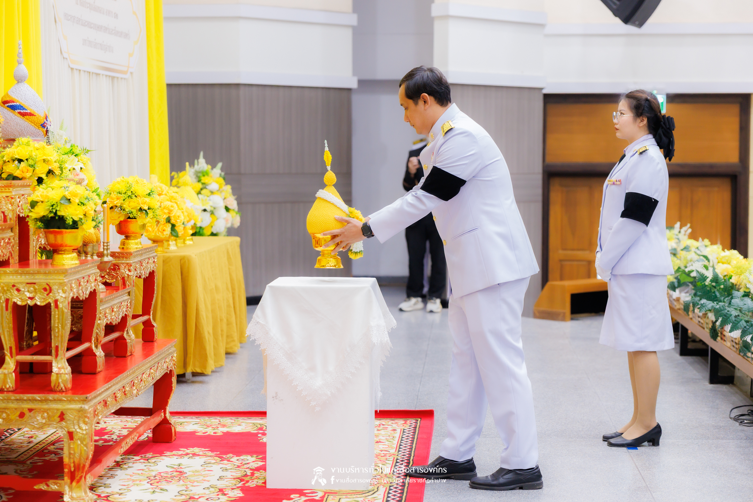 ภายในพิธี อธิการบดีได้ประกอบพิธีวางพานพุ่มดอกไม้ ถวายบังคมพระบรมฉายาลักษณ์ พร้อมนำกล่าวน้อมรำลึกในพระมหากรุณาธิคุณ ที่พระองค์ทรงอุทิศพระวรกายเพื่อพัฒนาคุณภาพชีวิตของประชาชนไทยในทุกภูมิภาค โดยเฉพาะโครงการอันเนื่องมาจากพระราชดำริด้านการศึกษา การเกษตรกรรม การจัดการน้ำ และการพัฒนาชุมชน ซึ่งมหาวิทยาลัยราชภัฏลำปางได้น้อมนำหลักปรัชญาเศรษฐกิจพอเพียงมาปรับใช้ในการดำเนินงาน สะท้อนถึงความมุ่งมั่นในการสืบสาน รักษา และต่อยอดแนวพระราชดำริ ให้เกิดประโยชน์กับสังคมและชุมชนในพื้นที่และการพัฒนาท้องถิ่นอย่างต่อเนื่อง