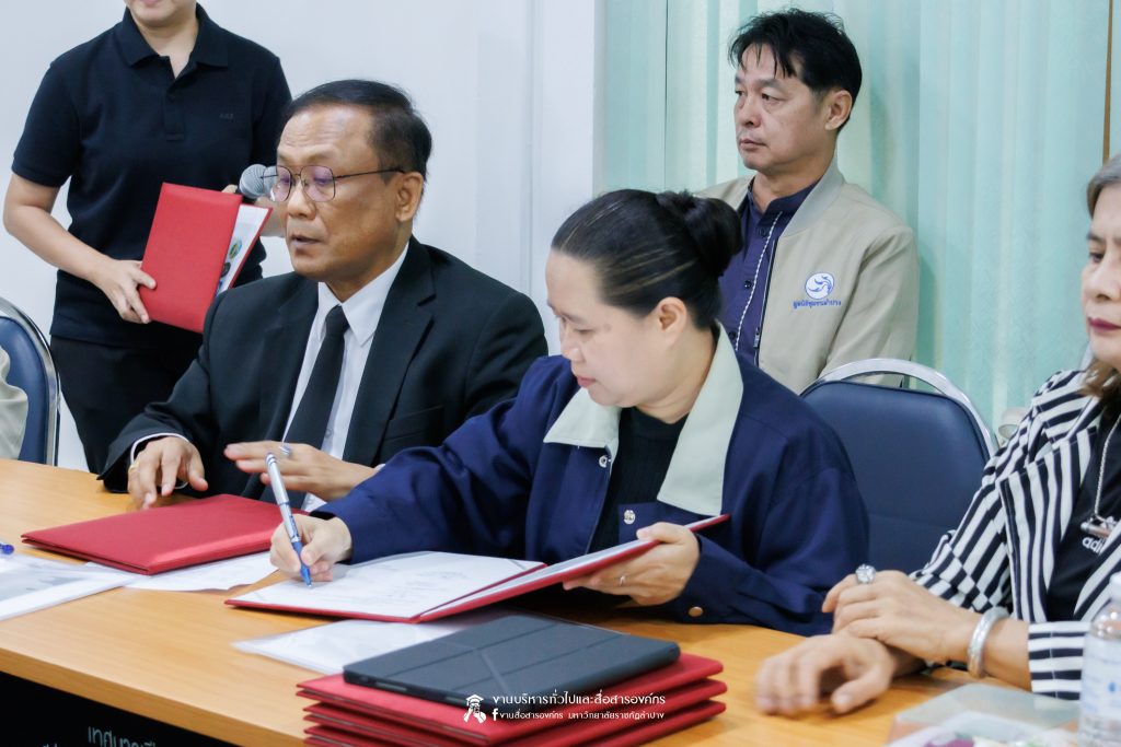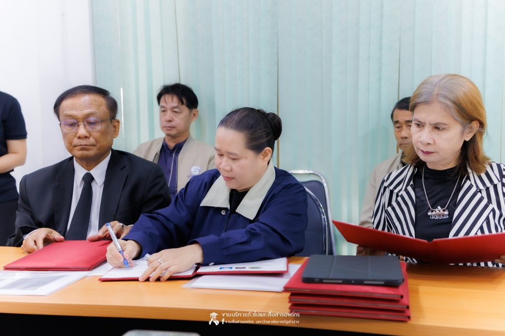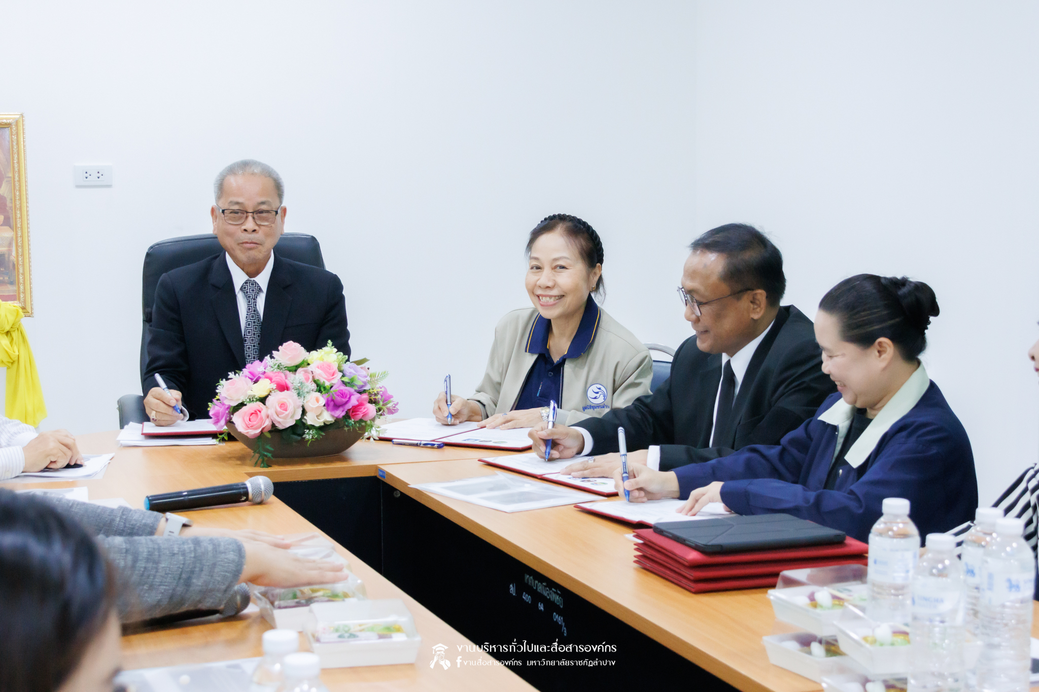 เมื่อวันที่ 4 พฤศจิกายน 2568 รศ.ดร.กิตติศักดิ์ สมุทธารักษ์ อธิการบดีมหาวิทยาลัยราชภัฏลำปาง พร้อมด้วย ผศ.จริยา วิไลวรรณ ประธานมูลนิธิชุมชนลําปาง และ นายสองเมือง วงศ์ไชย นากยกเทศมนตรีเมืองพิชัย ได้ทำการบันทึกข้อตกลงความร่วมมือ ภายใต้โครงการ การสร้างกลไกความร่วมมือแบบบูรณาการเพื่อขับเคลื่อนยุทธศาสตร์ขจัดความยากจน และสร้างโอกาสทางสังคมของจังหวัดลําปาง ปีที่ 2 โดยมหาวิทยาลัยราชภัฏลําปางได้การสนับสนุนงบอุดหนุนการวิจัย จากกองทุนส่งเสริมวิทยาศาสตร์ วิจัยและนวัตกรรม (กองทุนส่งเสริมววน.) และหน่วยบริหารและจัดการทุนด้านการพัฒนาระดับพื้นที่ (บพท.) ณ เทศบาลนครลำปาง อำเภอเมือง จังหวัดลำปาง โอกาสนี้ รศ.วิไลลักษณ์ พรมเสน รองอธิการบดีฝ่ายวิจัยและวิชาการต่างประเทศ ร่วมลงนามเป็นสักขีพยานในการลงนามครั้งนี้ด้วย พร้อมด้วยคณะนักวิจัยของมหาวิทยาลัยราชภัฏลำปางและผู้บริหารเทศบาลเมืองพิชัยเข้าร่วมในการลงนาม ครั้งนี้ด้วย