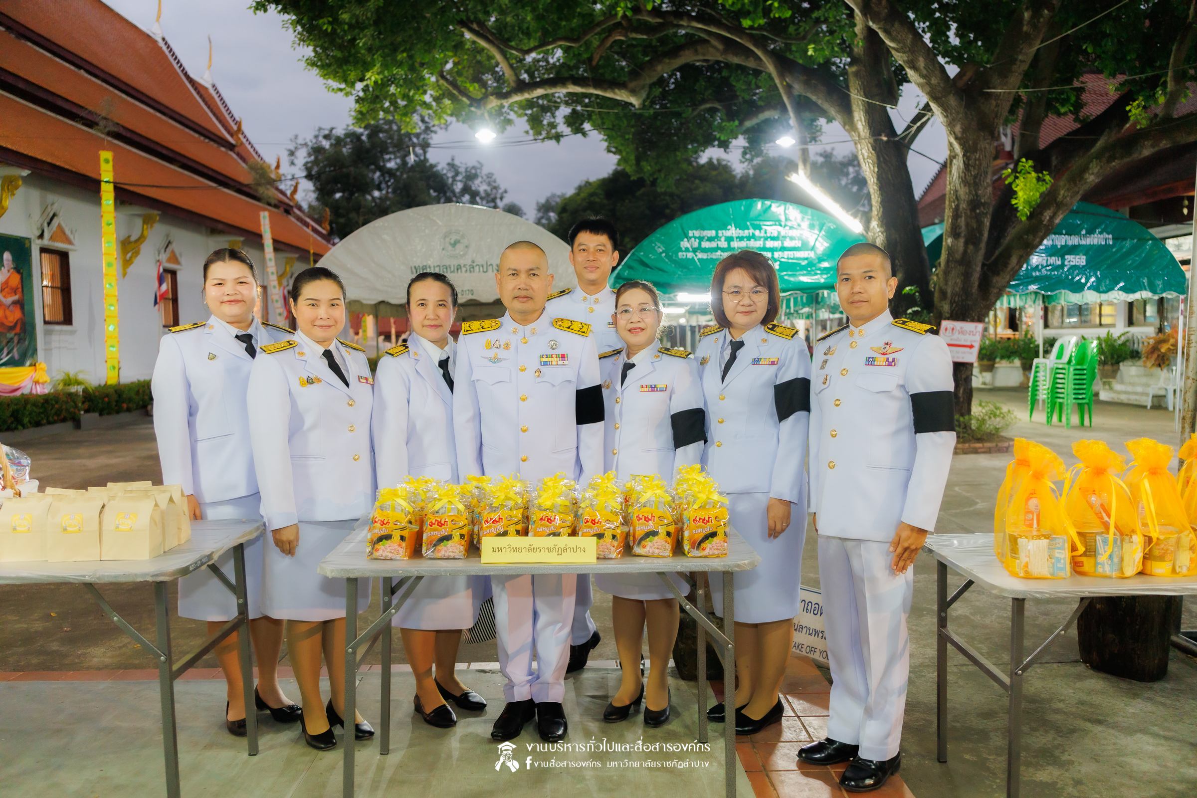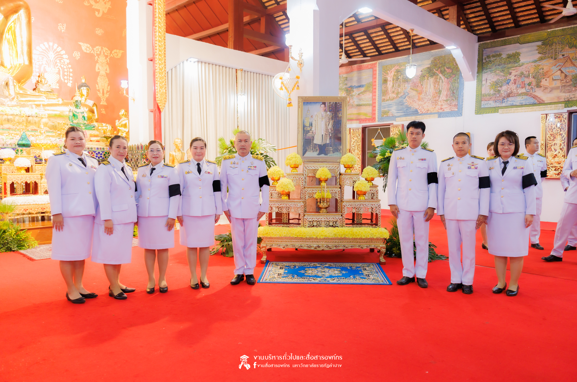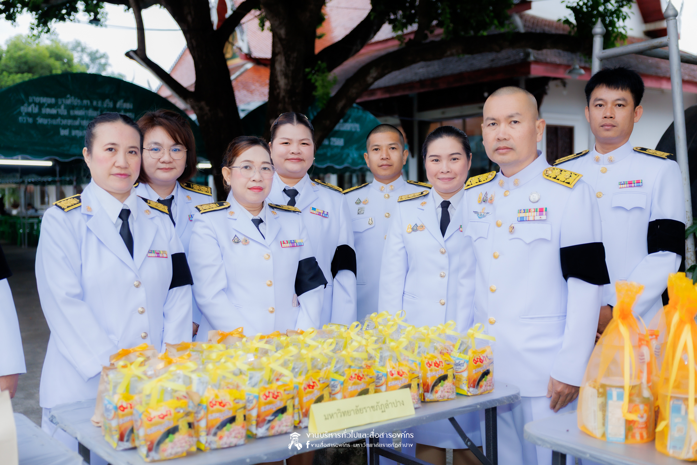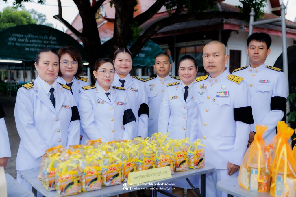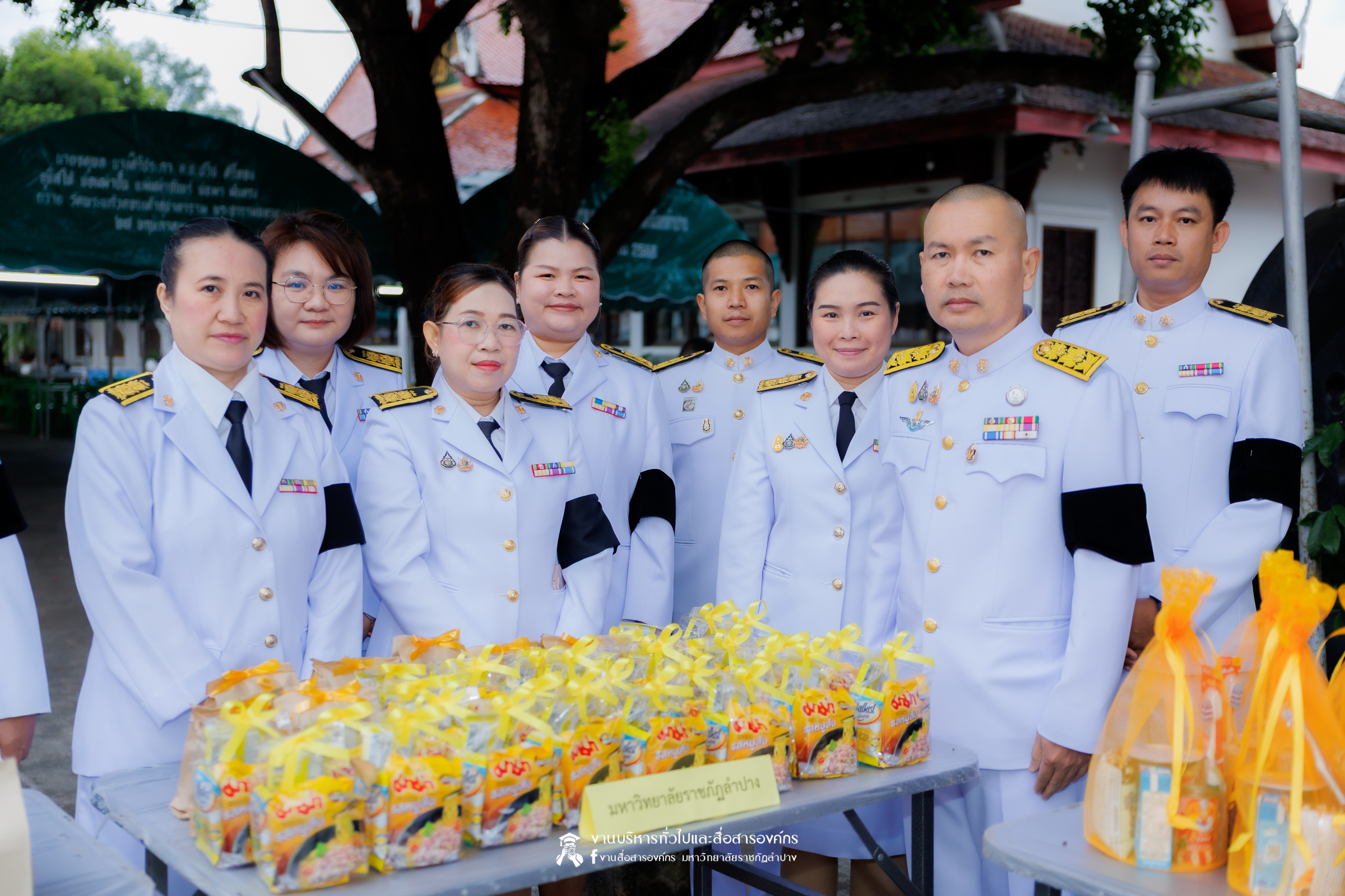 เมื่อวันที่ 5 ธันวาคม 2568 รศ.ดร.ปริเยศ สิทธิสรวง รองอธิการบดีฝ่ายบริหาร พร้อมด้วย นางสาวศศธร เครือนันตา นักประชาสัมพันธ์ ชำนาญการ รักษาการในตำแหน่งหัวหน้างานบริหารทั่วไปและสื่อสารองค์กร นางกันทิมา จันทร์แสง เจ้าหน้าที่บริหารงานทั่วไป ปฏิบัติการ ปฏิบัติหน้าที่ในตำแหน่งหัวหน้างานบริหารทั่วไป สังกัดกองพัฒนานักศึกษา นางสาวศิริลักษณ์ พิลัยหล้า นักวิชาการศึกษาพิเศษ ปฏิบัติการ นางสาวกาญจนา ไชยโย นักวิชาการศึกษาพิเศษ ปฏิบัติการ นายณัฐวุฒิ นันต๊ะแขม เจ้าหน้าที่บริหารงานทั่วไป ปฏิบัติการ นางสาวเปรมกมล สานำ เจ้าหน้าที่บริหารงานทั่วไป ปฏิบัติการ ว่าที่ร้อยเอกเอกนรินทร์ เสาสีนาด นักวิชาการศึกษา ปฏิบัติการ สังกัดกองพัฒนานักศึกษา และนายชนาธิป เมืองมูล นักประชาสัมพันธ์ ปฏิบัติการ สังกัดงานบริหารทั่วไปและสื่อสารองค์กร สำนักงานอธิการบดี ร่วมพิธีเจริญพระพุทธมนต์ และทำบุญตักบาตรถวายพระราชกุศล เนื่องในวันคล้ายวันพระบรมราชสมภพ พระบาทสมเด็จพระบรมชนกาธิเบศร มหาภูมิพลอดุลยเดชมหาราช บรมนาถบพิตร วันชาติ และวันพ่อแห่งชาติ 5 ธันวาคม 2568 โดยมี นายวิวัฒน์ อินทร์ไทยวงศ์ ผู้ว่าราชการจังหวัดลำปาง นำคณะผู้บริหาร หัวหน้าส่วนราชการ ข้าราชการ เจ้าหน้าที่ และประชาชนชาวจังหวัดลำปางทุกหมู่เหล่า เข้าร่วมพิธี ณ วัดพระแก้วดอนเต้าสุชาดาราม พระอารามหลวง
