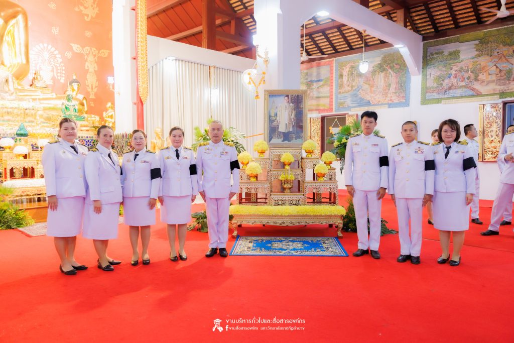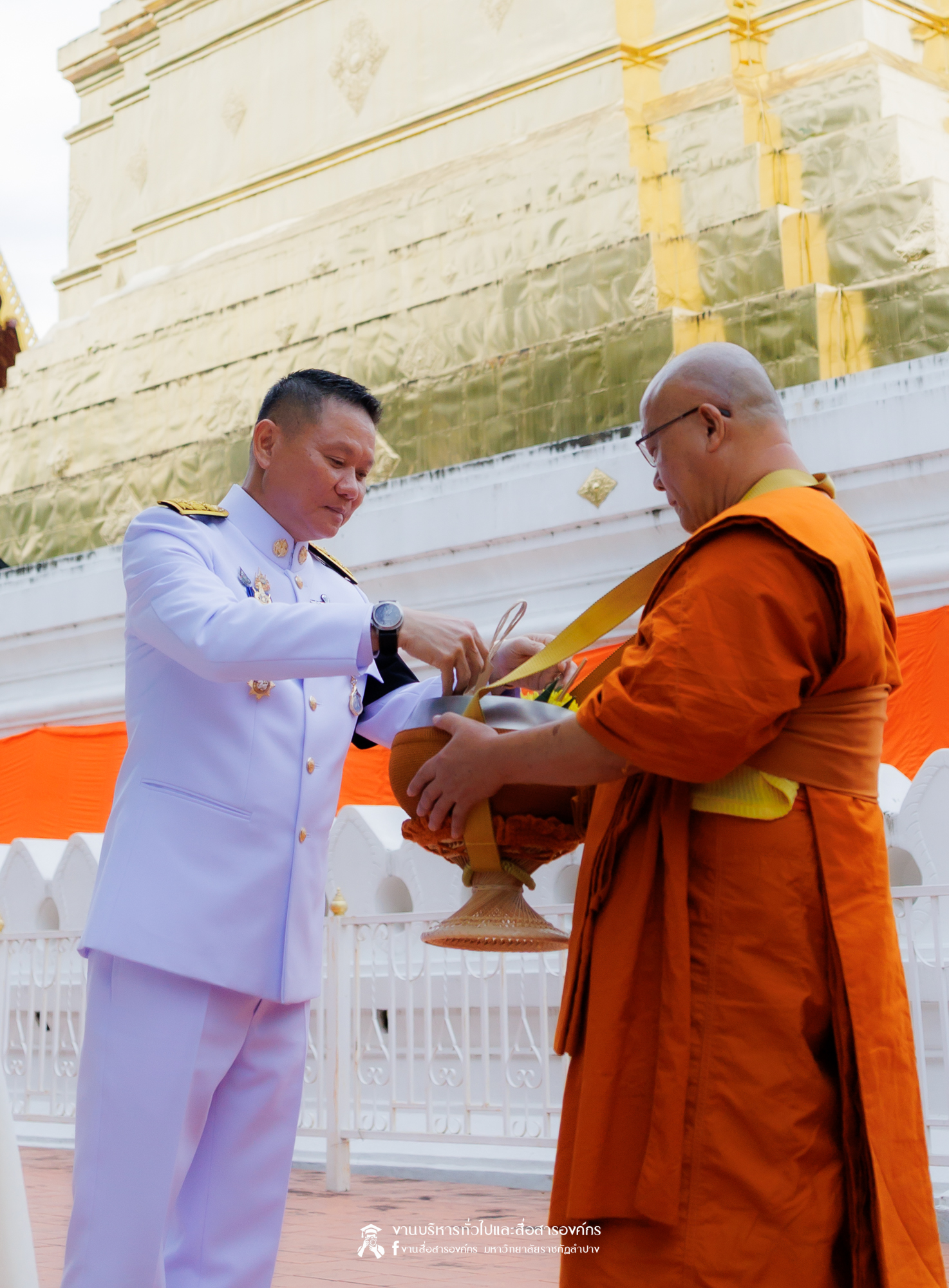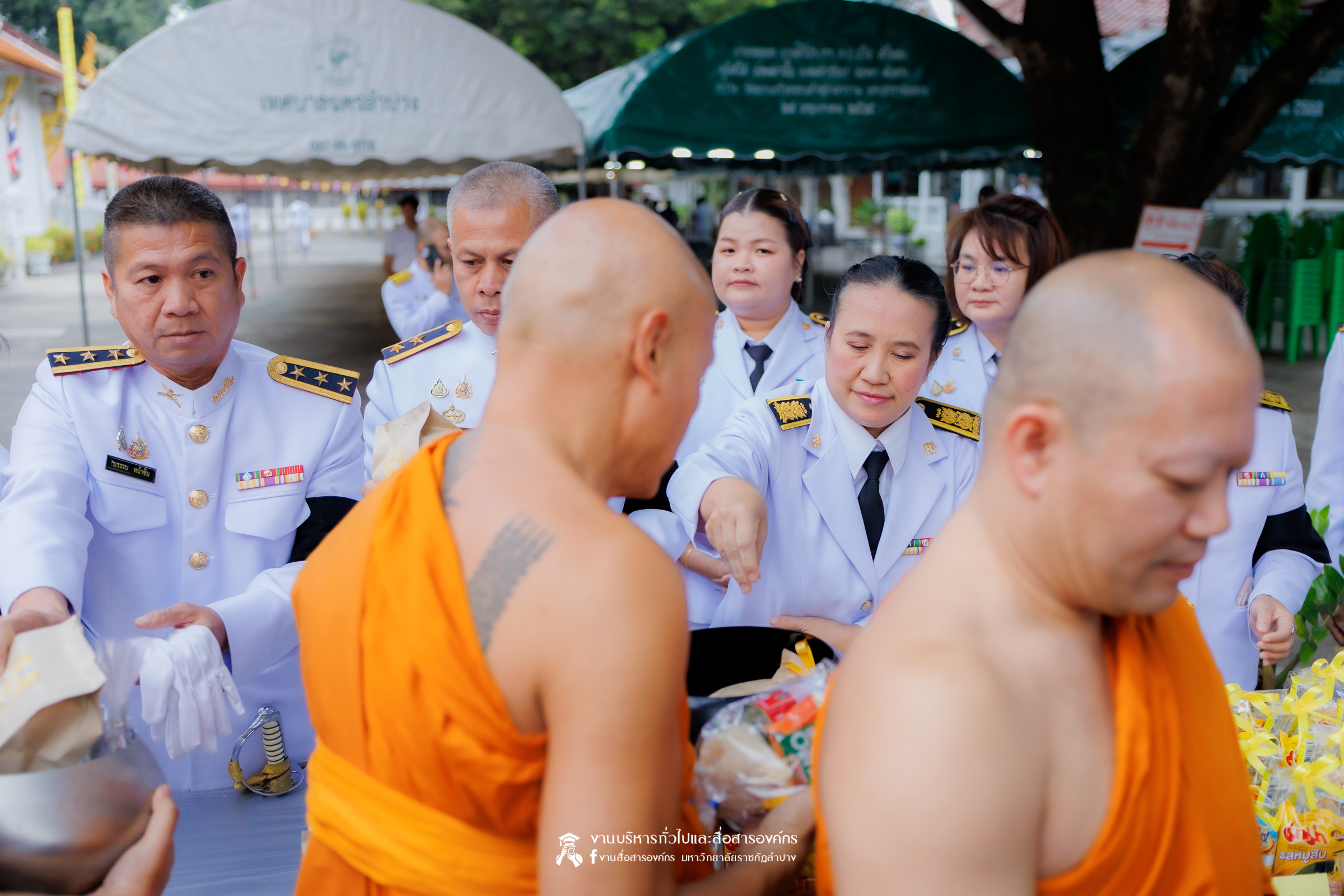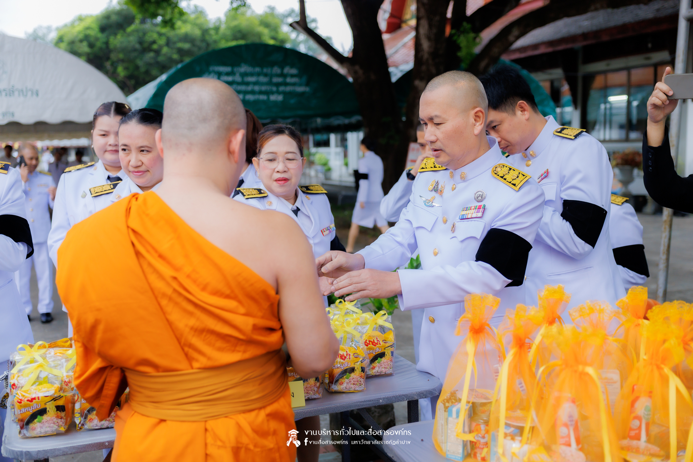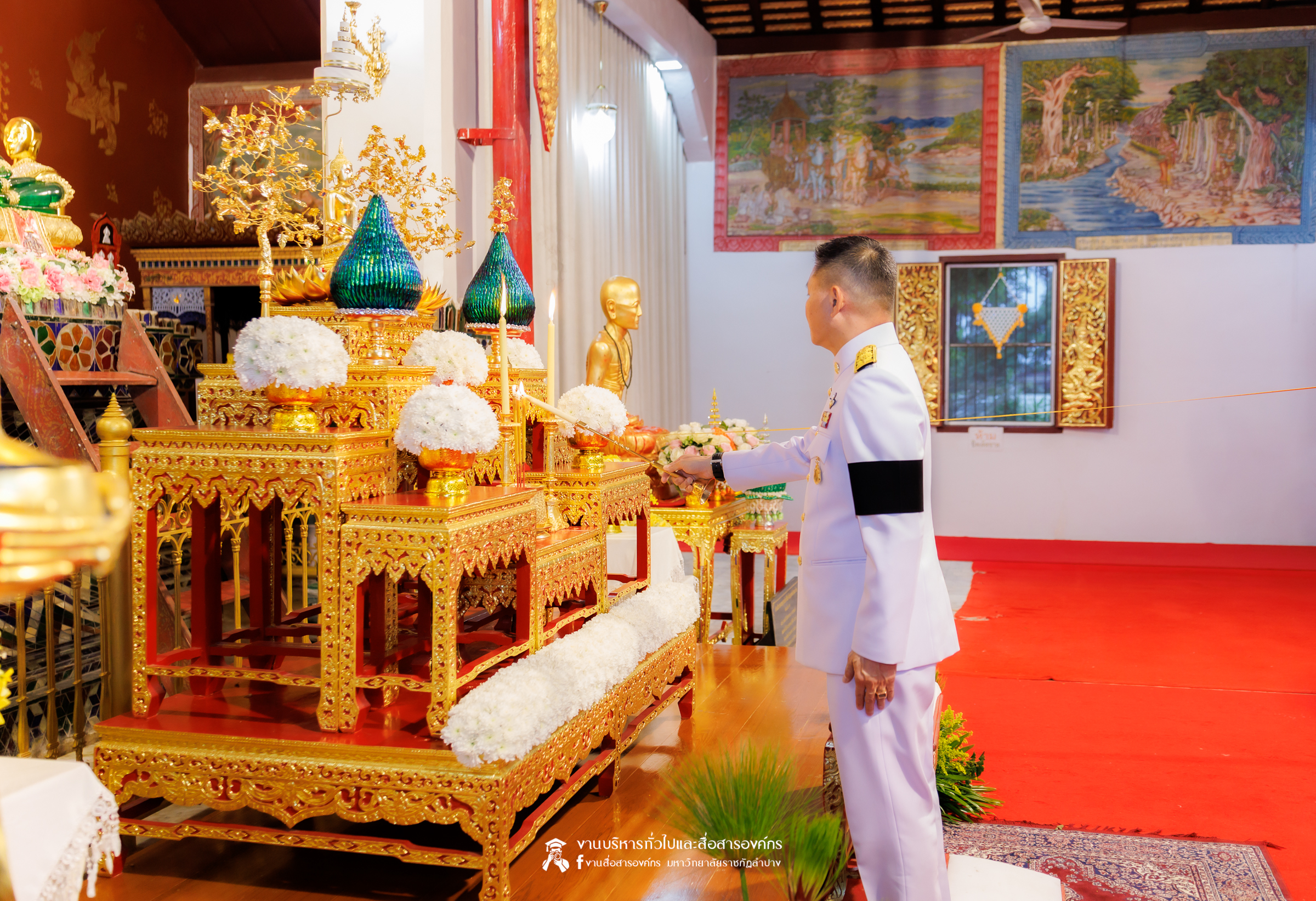 เมื่อวันที่ 5 ธันวาคม 2568 รศ.ดร.ปริเยศ สิทธิสรวง รองอธิการบดีฝ่ายบริหาร พร้อมด้วย นางสาวศศธร เครือนันตา นักประชาสัมพันธ์ ชำนาญการ รักษาการในตำแหน่งหัวหน้างานบริหารทั่วไปและสื่อสารองค์กร นางกันทิมา จันทร์แสง เจ้าหน้าที่บริหารงานทั่วไป ปฏิบัติการ ปฏิบัติหน้าที่ในตำแหน่งหัวหน้างานบริหารทั่วไป สังกัดกองพัฒนานักศึกษา นางสาวศิริลักษณ์ พิลัยหล้า นักวิชาการศึกษาพิเศษ ปฏิบัติการ นางสาวกาญจนา ไชยโย นักวิชาการศึกษาพิเศษ ปฏิบัติการ นายณัฐวุฒิ นันต๊ะแขม เจ้าหน้าที่บริหารงานทั่วไป ปฏิบัติการ นางสาวเปรมกมล สานำ เจ้าหน้าที่บริหารงานทั่วไป ปฏิบัติการ ว่าที่ร้อยเอกเอกนรินทร์ เสาสีนาด นักวิชาการศึกษา ปฏิบัติการ สังกัดกองพัฒนานักศึกษา และนายชนาธิป เมืองมูล นักประชาสัมพันธ์ ปฏิบัติการ สังกัดงานบริหารทั่วไปและสื่อสารองค์กร สำนักงานอธิการบดี ร่วมพิธีเจริญพระพุทธมนต์ และทำบุญตักบาตรถวายพระราชกุศล เนื่องในวันคล้ายวันพระบรมราชสมภพ พระบาทสมเด็จพระบรมชนกาธิเบศร มหาภูมิพลอดุลยเดชมหาราช บรมนาถบพิตร วันชาติ และวันพ่อแห่งชาติ 5 ธันวาคม 2568 โดยมี นายวิวัฒน์ อินทร์ไทยวงศ์ ผู้ว่าราชการจังหวัดลำปาง นำคณะผู้บริหาร หัวหน้าส่วนราชการ ข้าราชการ เจ้าหน้าที่ และประชาชนชาวจังหวัดลำปางทุกหมู่เหล่า เข้าร่วมพิธี ณ วัดพระแก้วดอนเต้าสุชาดาราม พระอารามหลวง