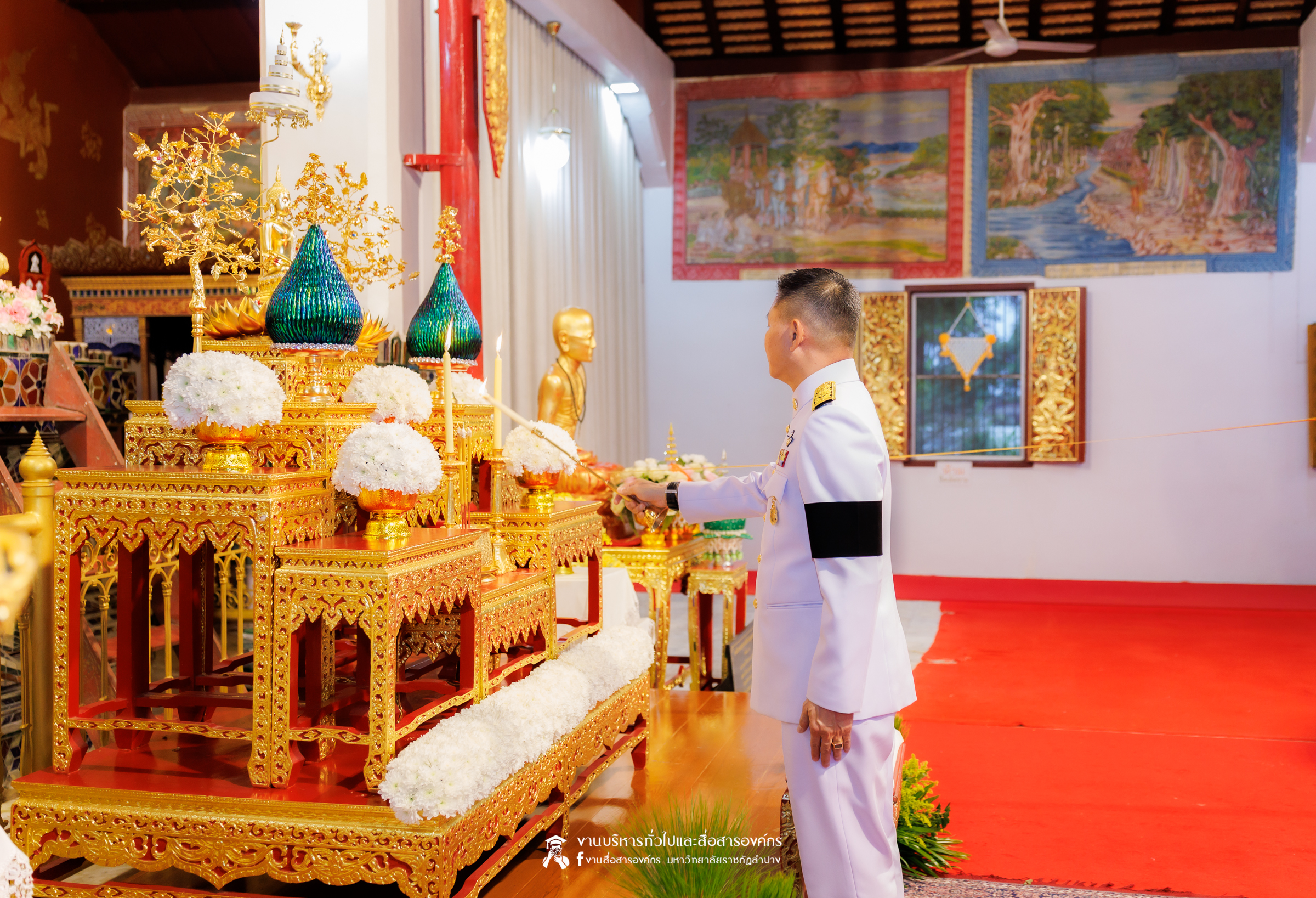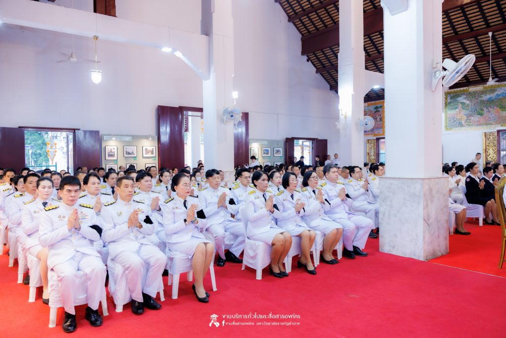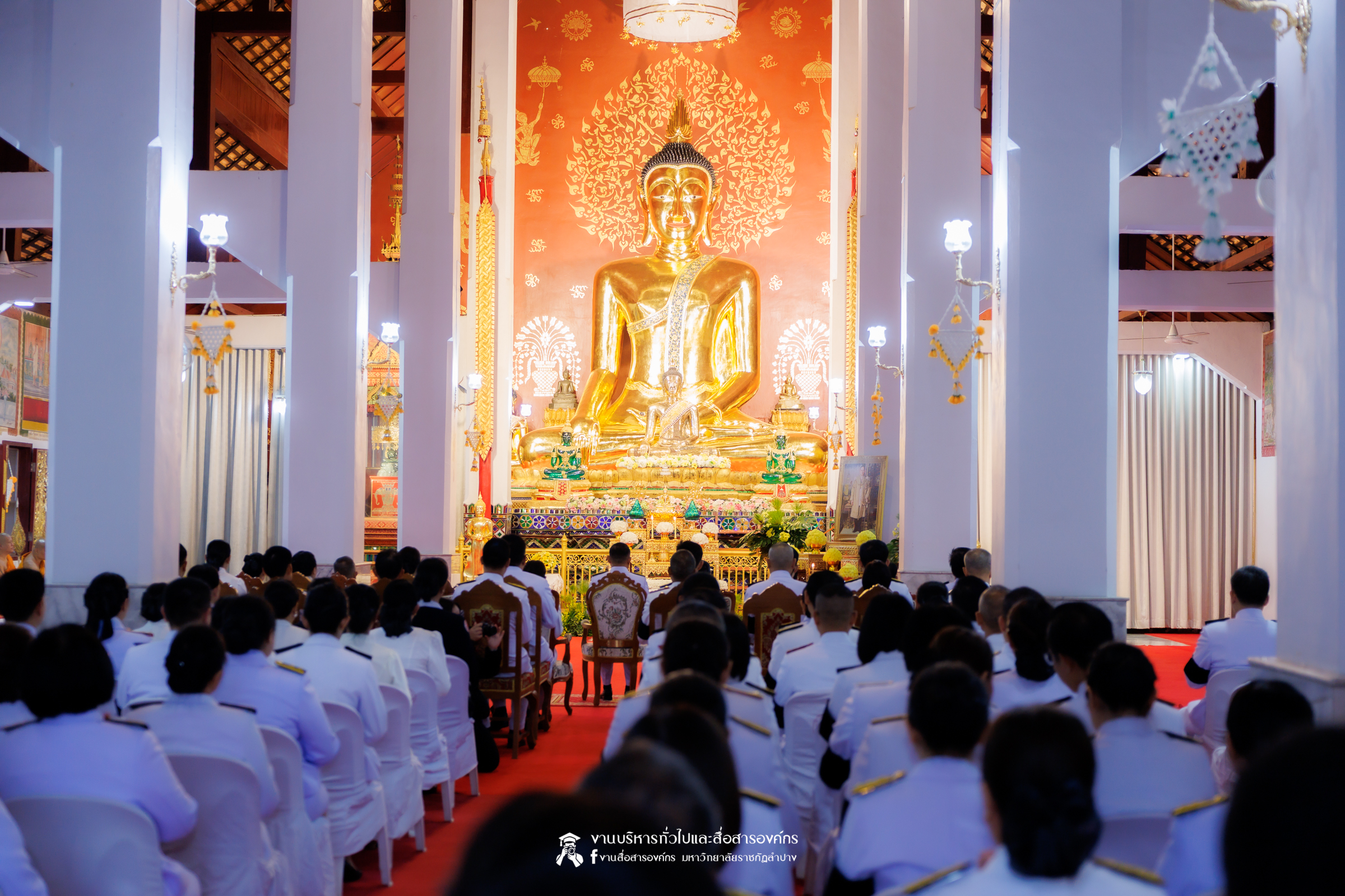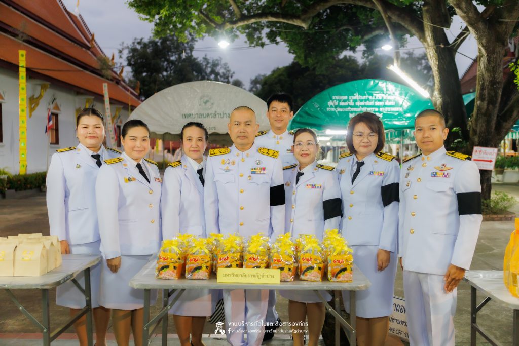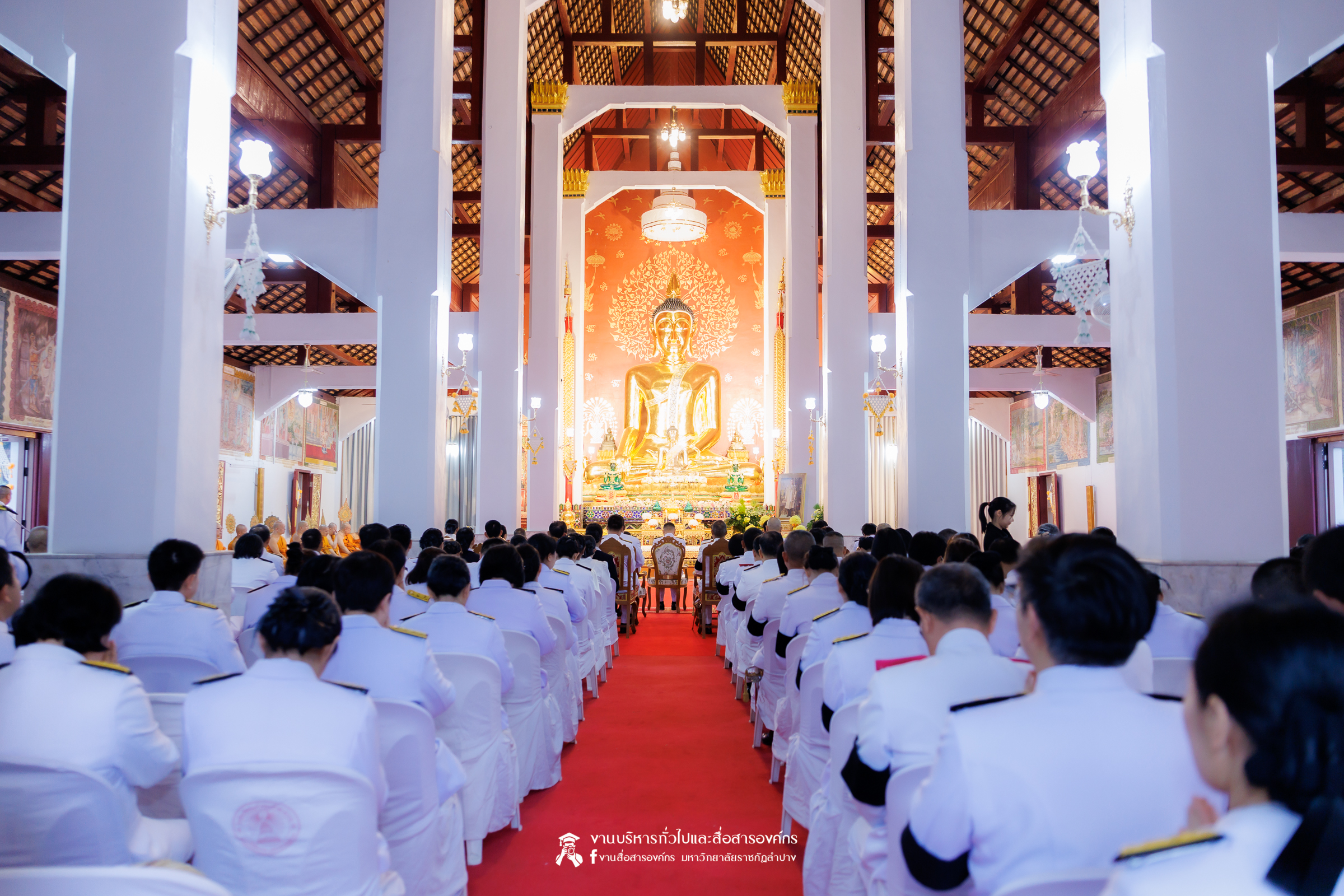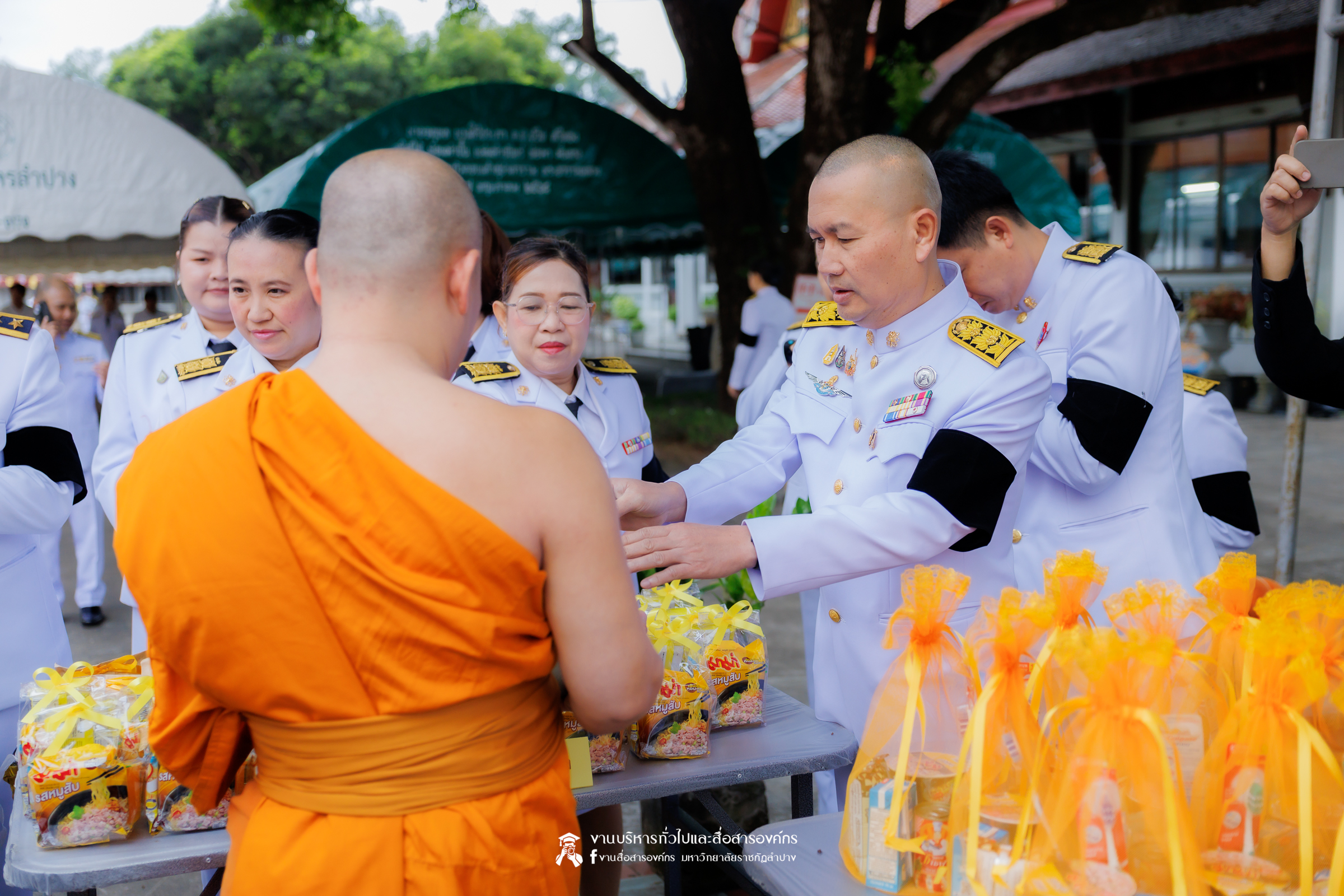 เมื่อวันที่ 5 ธันวาคม 2568 รศ.ดร.ปริเยศ สิทธิสรวง รองอธิการบดีฝ่ายบริหาร พร้อมด้วย นางสาวศศธร เครือนันตา นักประชาสัมพันธ์ ชำนาญการ รักษาการในตำแหน่งหัวหน้างานบริหารทั่วไปและสื่อสารองค์กร นางกันทิมา จันทร์แสง เจ้าหน้าที่บริหารงานทั่วไป ปฏิบัติการ ปฏิบัติหน้าที่ในตำแหน่งหัวหน้างานบริหารทั่วไป สังกัดกองพัฒนานักศึกษา นางสาวศิริลักษณ์ พิลัยหล้า นักวิชาการศึกษาพิเศษ ปฏิบัติการ นางสาวกาญจนา ไชยโย นักวิชาการศึกษาพิเศษ ปฏิบัติการ นายณัฐวุฒิ นันต๊ะแขม เจ้าหน้าที่บริหารงานทั่วไป ปฏิบัติการ นางสาวเปรมกมล สานำ เจ้าหน้าที่บริหารงานทั่วไป ปฏิบัติการ ว่าที่ร้อยเอกเอกนรินทร์ เสาสีนาด นักวิชาการศึกษา ปฏิบัติการ สังกัดกองพัฒนานักศึกษา และนายชนาธิป เมืองมูล นักประชาสัมพันธ์ ปฏิบัติการ สังกัดงานบริหารทั่วไปและสื่อสารองค์กร สำนักงานอธิการบดี ร่วมพิธีเจริญพระพุทธมนต์ และทำบุญตักบาตรถวายพระราชกุศล เนื่องในวันคล้ายวันพระบรมราชสมภพ พระบาทสมเด็จพระบรมชนกาธิเบศร มหาภูมิพลอดุลยเดชมหาราช บรมนาถบพิตร วันชาติ และวันพ่อแห่งชาติ 5 ธันวาคม 2568 โดยมี นายวิวัฒน์ อินทร์ไทยวงศ์ ผู้ว่าราชการจังหวัดลำปาง นำคณะผู้บริหาร หัวหน้าส่วนราชการ ข้าราชการ เจ้าหน้าที่ และประชาชนชาวจังหวัดลำปางทุกหมู่เหล่า เข้าร่วมพิธี ณ วัดพระแก้วดอนเต้าสุชาดาราม พระอารามหลวง