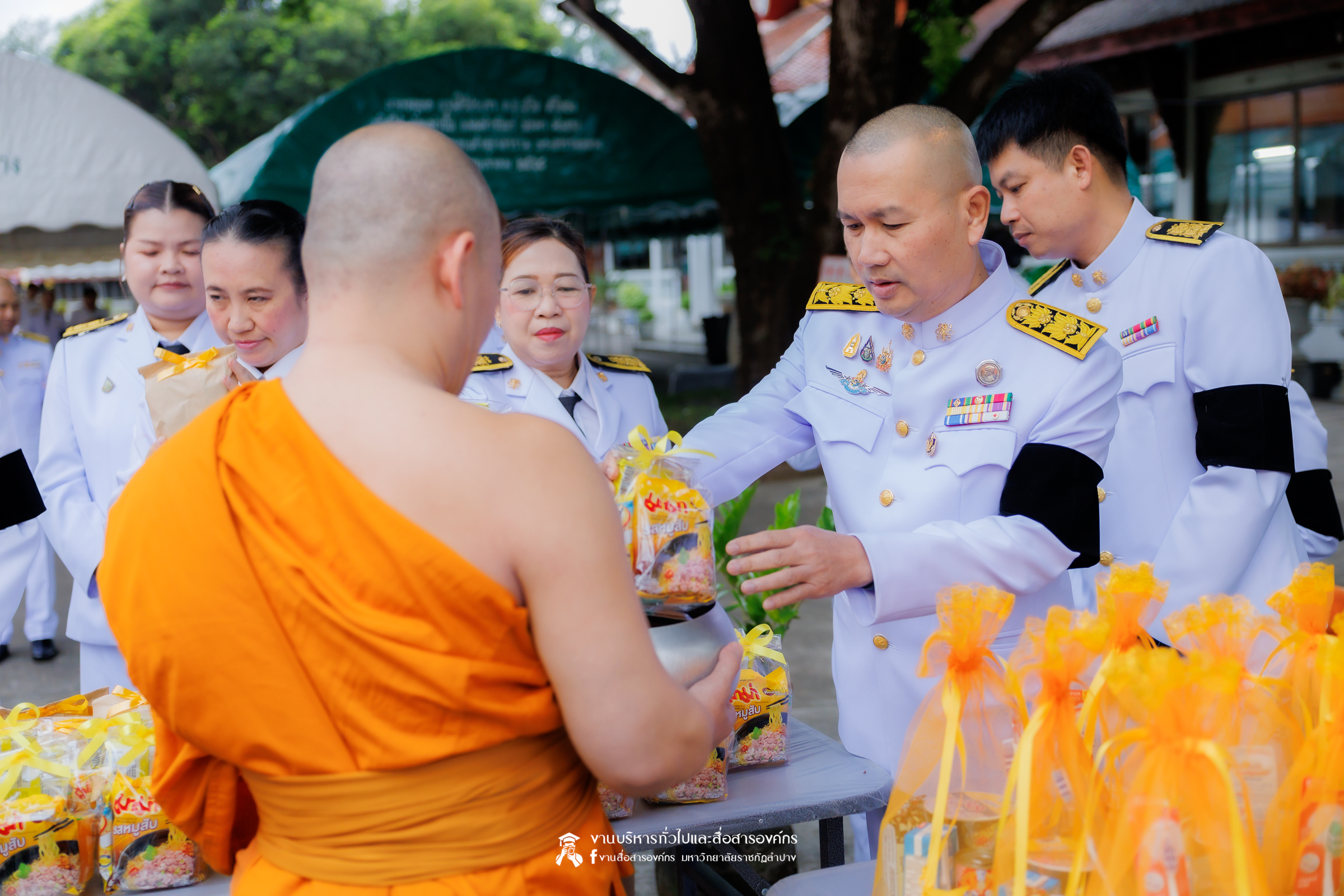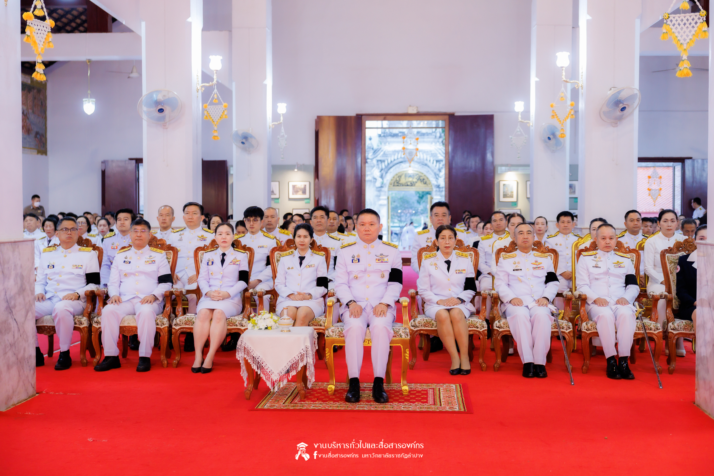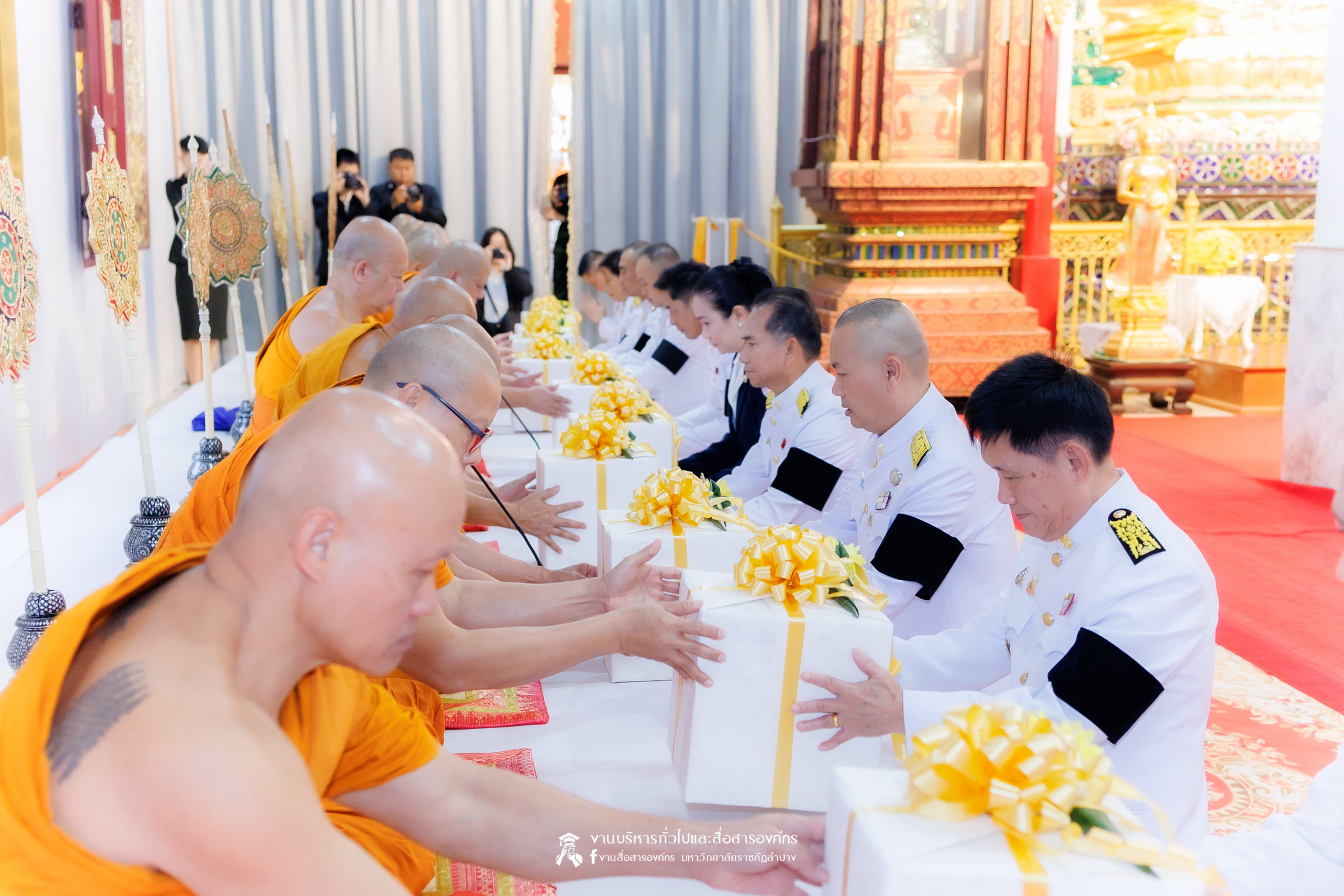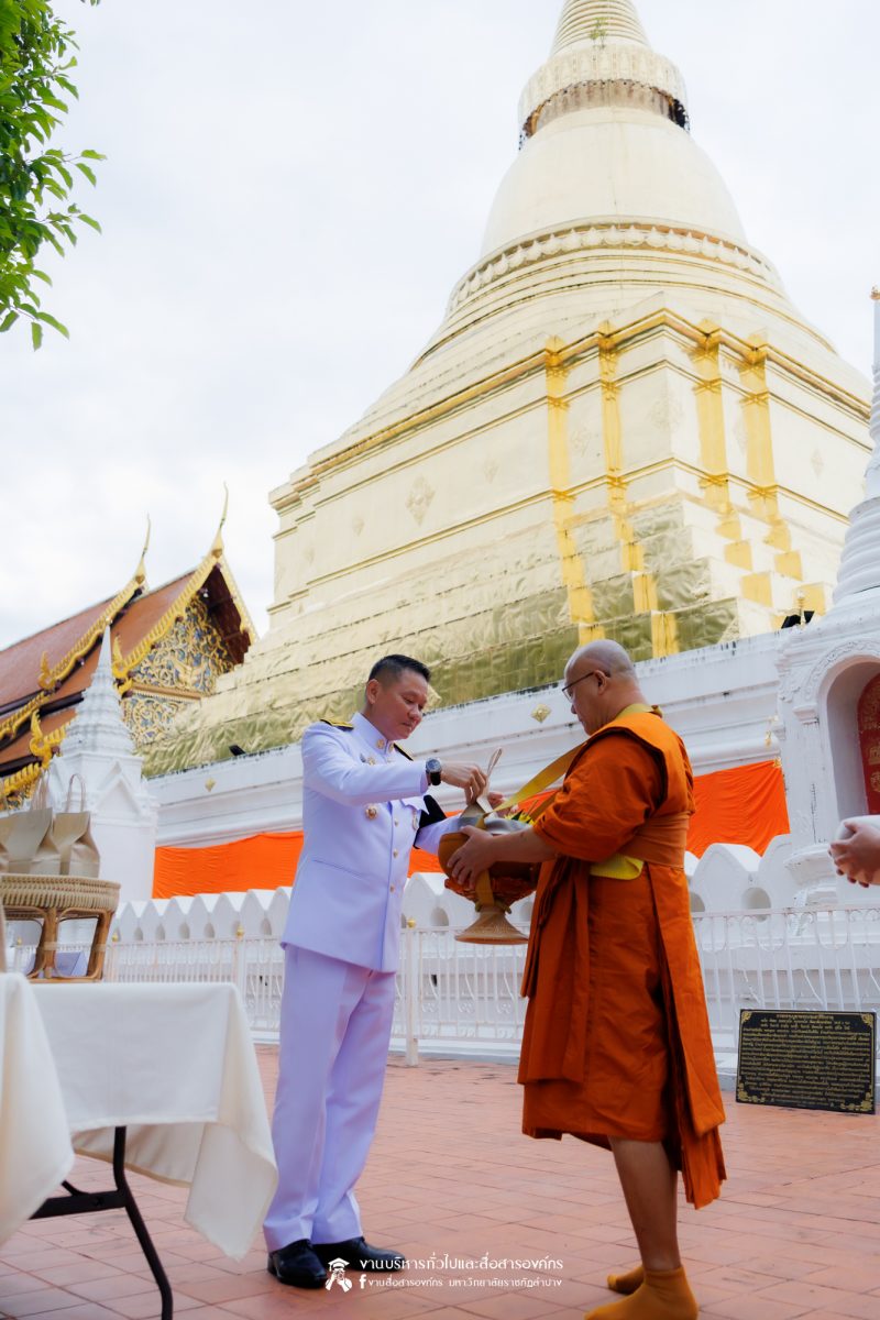 เมื่อวันที่ 5 ธันวาคม 2568 รศ.ดร.ปริเยศ สิทธิสรวง รองอธิการบดีฝ่ายบริหาร พร้อมด้วย นางสาวศศธร เครือนันตา นักประชาสัมพันธ์ ชำนาญการ รักษาการในตำแหน่งหัวหน้างานบริหารทั่วไปและสื่อสารองค์กร นางกันทิมา จันทร์แสง เจ้าหน้าที่บริหารงานทั่วไป ปฏิบัติการ ปฏิบัติหน้าที่ในตำแหน่งหัวหน้างานบริหารทั่วไป สังกัดกองพัฒนานักศึกษา นางสาวศิริลักษณ์ พิลัยหล้า นักวิชาการศึกษาพิเศษ ปฏิบัติการ นางสาวกาญจนา ไชยโย นักวิชาการศึกษาพิเศษ ปฏิบัติการ นายณัฐวุฒิ นันต๊ะแขม เจ้าหน้าที่บริหารงานทั่วไป ปฏิบัติการ นางสาวเปรมกมล สานำ เจ้าหน้าที่บริหารงานทั่วไป ปฏิบัติการ ว่าที่ร้อยเอกเอกนรินทร์ เสาสีนาด นักวิชาการศึกษา ปฏิบัติการ สังกัดกองพัฒนานักศึกษา และนายชนาธิป เมืองมูล นักประชาสัมพันธ์ ปฏิบัติการ สังกัดงานบริหารทั่วไปและสื่อสารองค์กร สำนักงานอธิการบดี ร่วมพิธีเจริญพระพุทธมนต์ และทำบุญตักบาตรถวายพระราชกุศล เนื่องในวันคล้ายวันพระบรมราชสมภพ พระบาทสมเด็จพระบรมชนกาธิเบศร มหาภูมิพลอดุลยเดชมหาราช บรมนาถบพิตร วันชาติ และวันพ่อแห่งชาติ 5 ธันวาคม 2568 โดยมี นายวิวัฒน์ อินทร์ไทยวงศ์ ผู้ว่าราชการจังหวัดลำปาง นำคณะผู้บริหาร หัวหน้าส่วนราชการ ข้าราชการ เจ้าหน้าที่ และประชาชนชาวจังหวัดลำปางทุกหมู่เหล่า เข้าร่วมพิธี ณ วัดพระแก้วดอนเต้าสุชาดาราม พระอารามหลวง
