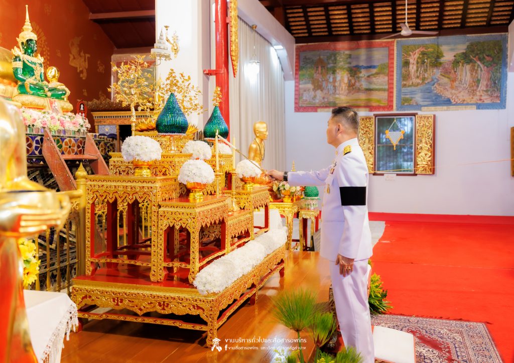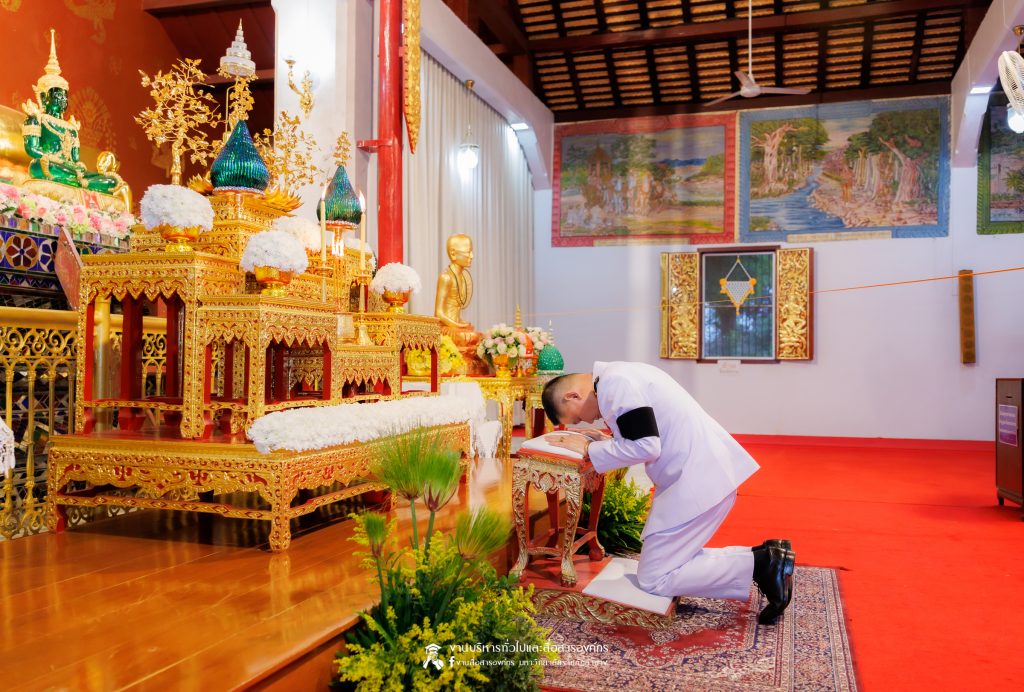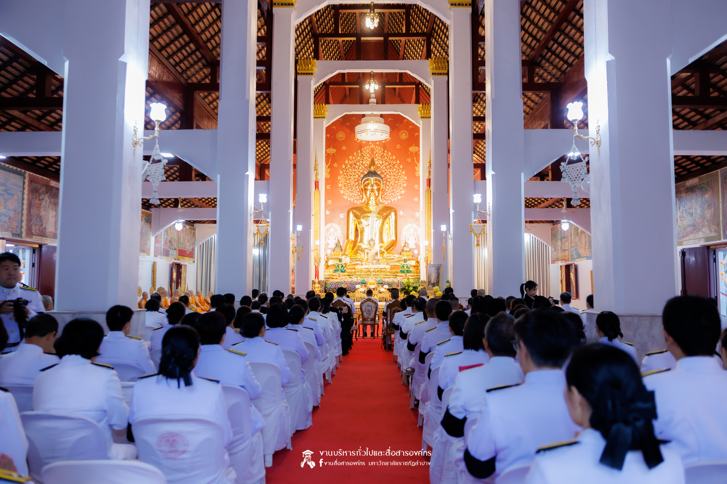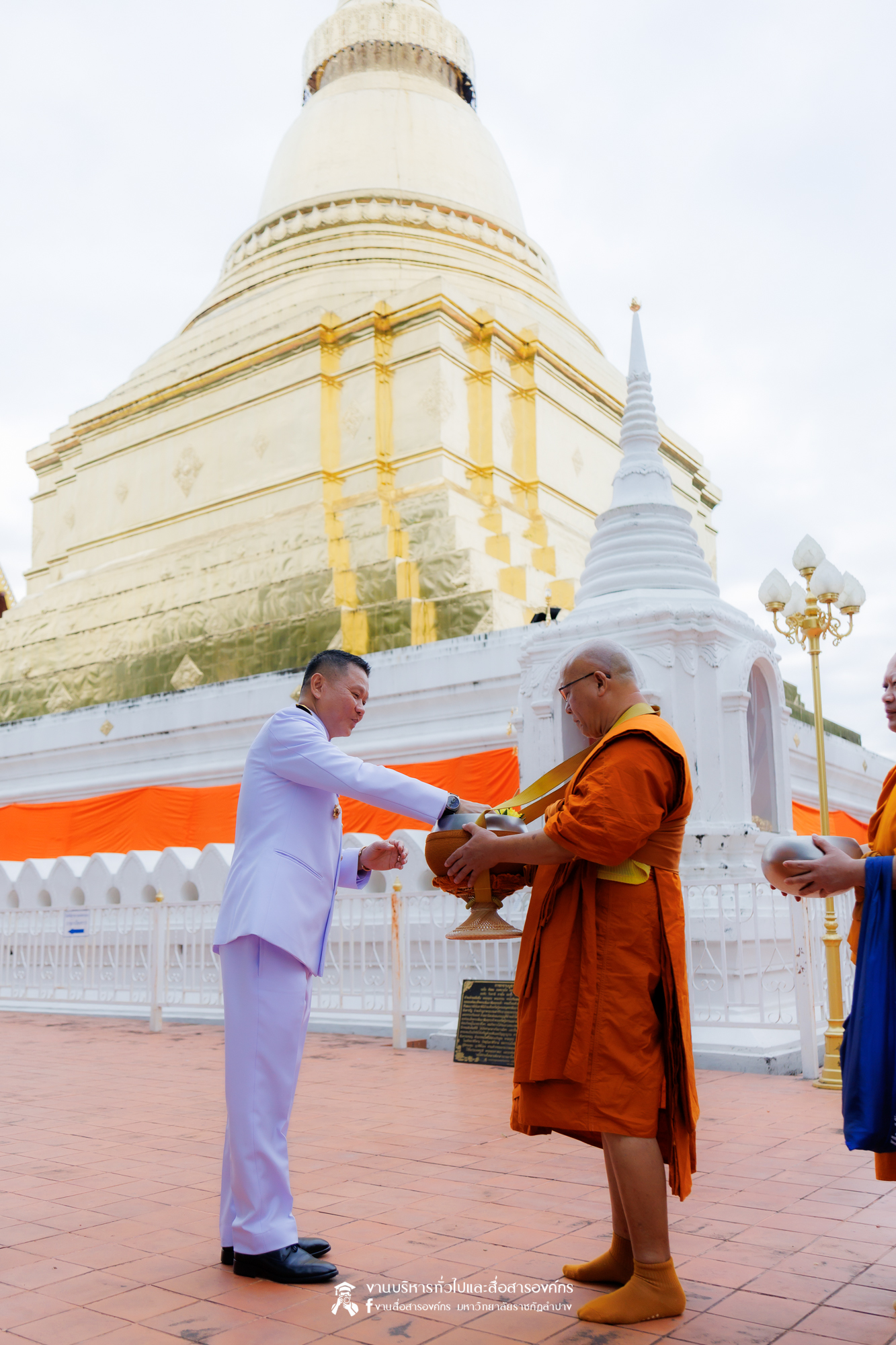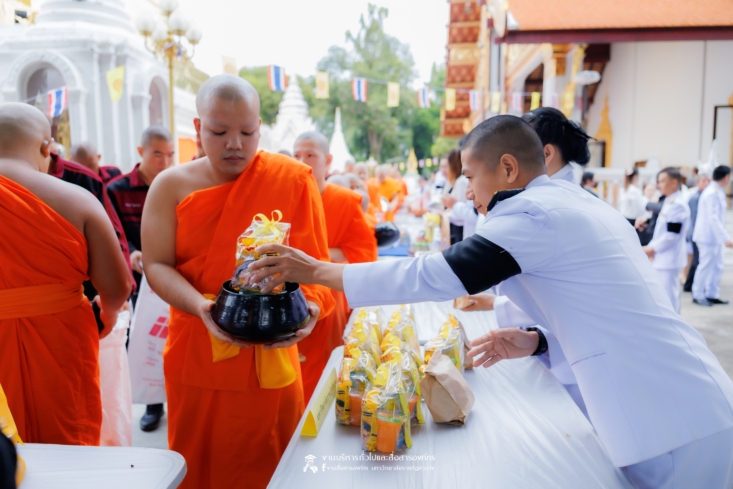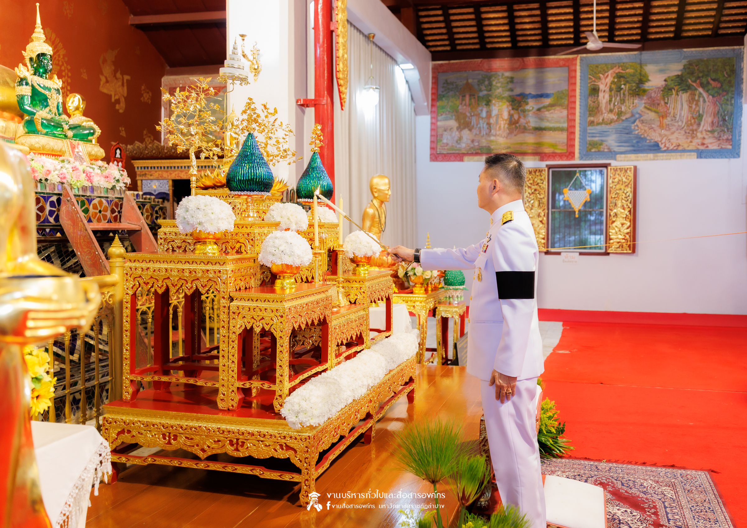 เมื่อวันที่ 5 ธันวาคม 2568 รศ.ดร.ปริเยศ สิทธิสรวง รองอธิการบดีฝ่ายบริหาร พร้อมด้วย นางสาวศศธร เครือนันตา นักประชาสัมพันธ์ ชำนาญการ รักษาการในตำแหน่งหัวหน้างานบริหารทั่วไปและสื่อสารองค์กร นางกันทิมา จันทร์แสง เจ้าหน้าที่บริหารงานทั่วไป ปฏิบัติการ ปฏิบัติหน้าที่ในตำแหน่งหัวหน้างานบริหารทั่วไป สังกัดกองพัฒนานักศึกษา นางสาวศิริลักษณ์ พิลัยหล้า นักวิชาการศึกษาพิเศษ ปฏิบัติการ นางสาวกาญจนา ไชยโย นักวิชาการศึกษาพิเศษ ปฏิบัติการ นายณัฐวุฒิ นันต๊ะแขม เจ้าหน้าที่บริหารงานทั่วไป ปฏิบัติการ นางสาวเปรมกมล สานำ เจ้าหน้าที่บริหารงานทั่วไป ปฏิบัติการ ว่าที่ร้อยเอกเอกนรินทร์ เสาสีนาด นักวิชาการศึกษา ปฏิบัติการ สังกัดกองพัฒนานักศึกษา และนายชนาธิป เมืองมูล นักประชาสัมพันธ์ ปฏิบัติการ สังกัดงานบริหารทั่วไปและสื่อสารองค์กร สำนักงานอธิการบดี ร่วมพิธีเจริญพระพุทธมนต์ และทำบุญตักบาตรถวายพระราชกุศล เนื่องในวันคล้ายวันพระบรมราชสมภพ พระบาทสมเด็จพระบรมชนกาธิเบศร มหาภูมิพลอดุลยเดชมหาราช บรมนาถบพิตร วันชาติ และวันพ่อแห่งชาติ 5 ธันวาคม 2568 โดยมี นายวิวัฒน์ อินทร์ไทยวงศ์ ผู้ว่าราชการจังหวัดลำปาง นำคณะผู้บริหาร หัวหน้าส่วนราชการ ข้าราชการ เจ้าหน้าที่ และประชาชนชาวจังหวัดลำปางทุกหมู่เหล่า เข้าร่วมพิธี ณ วัดพระแก้วดอนเต้าสุชาดาราม พระอารามหลวง