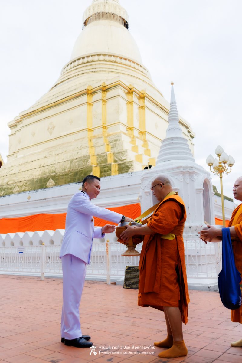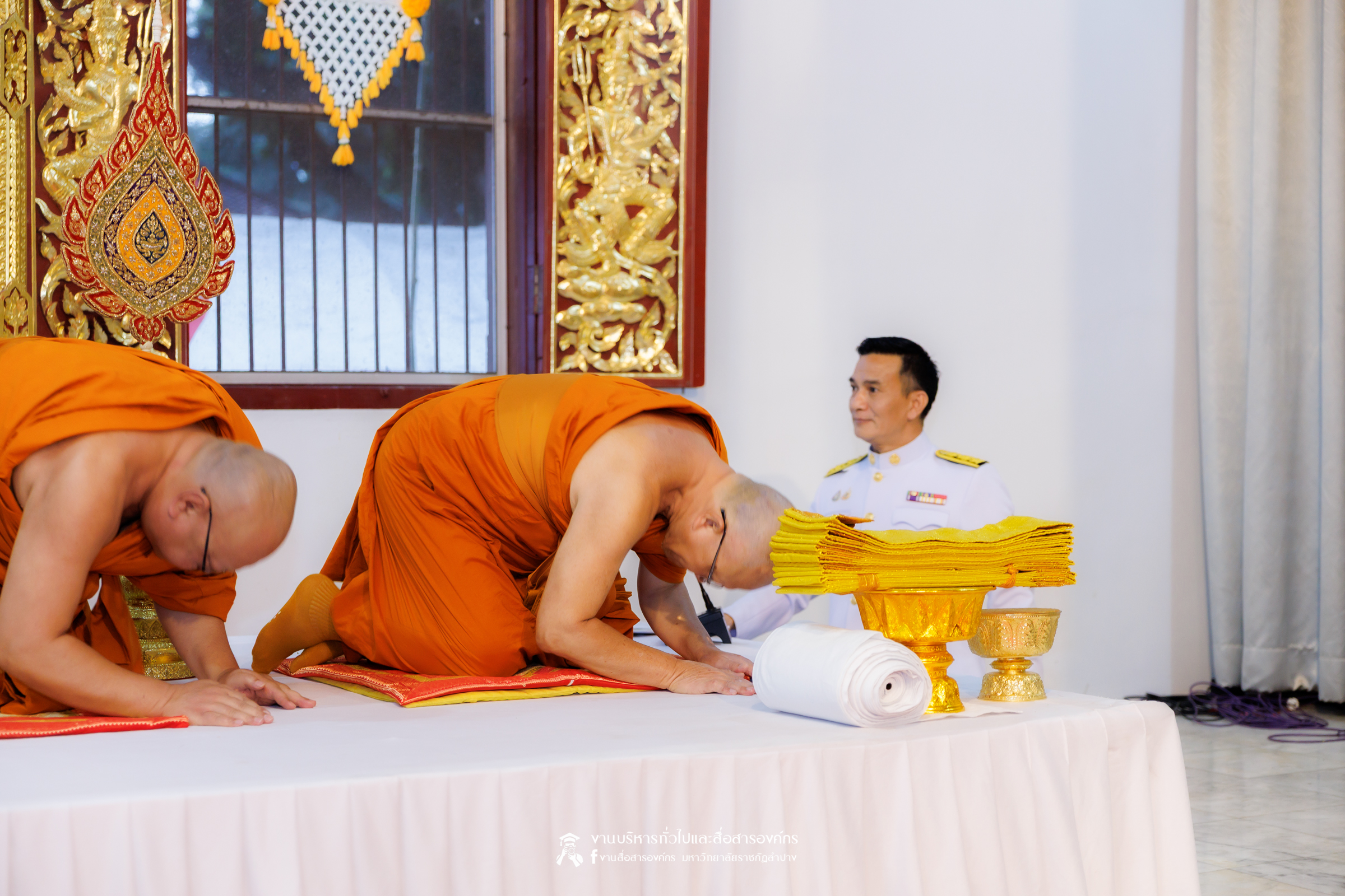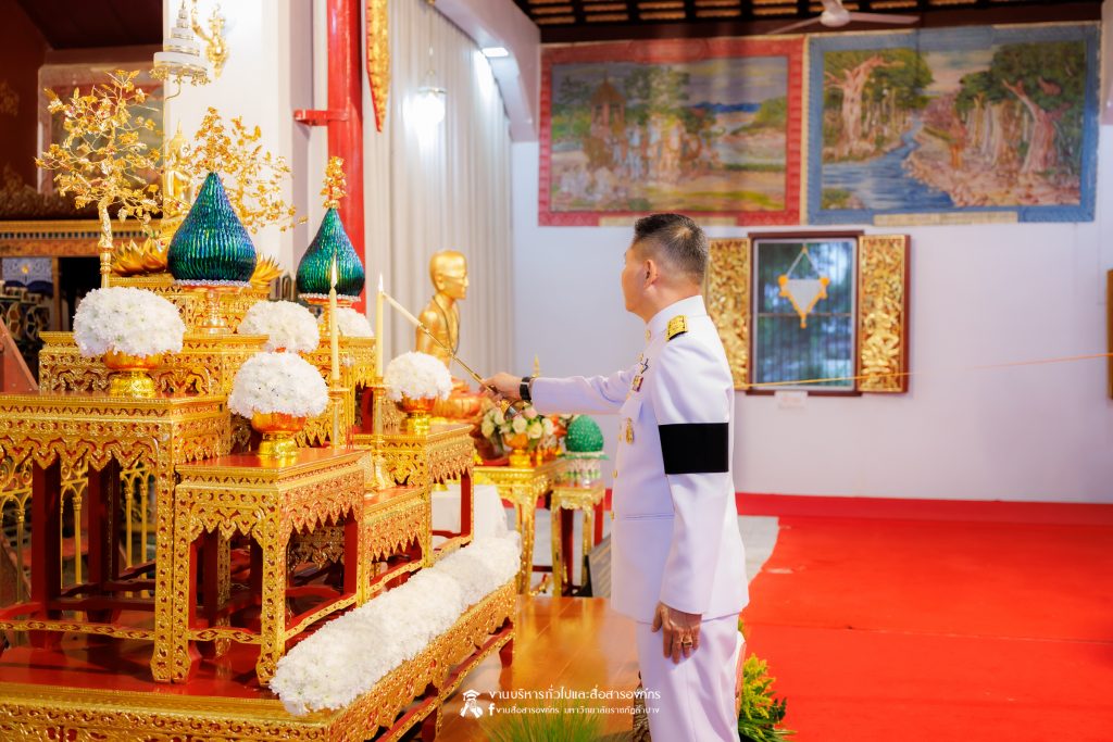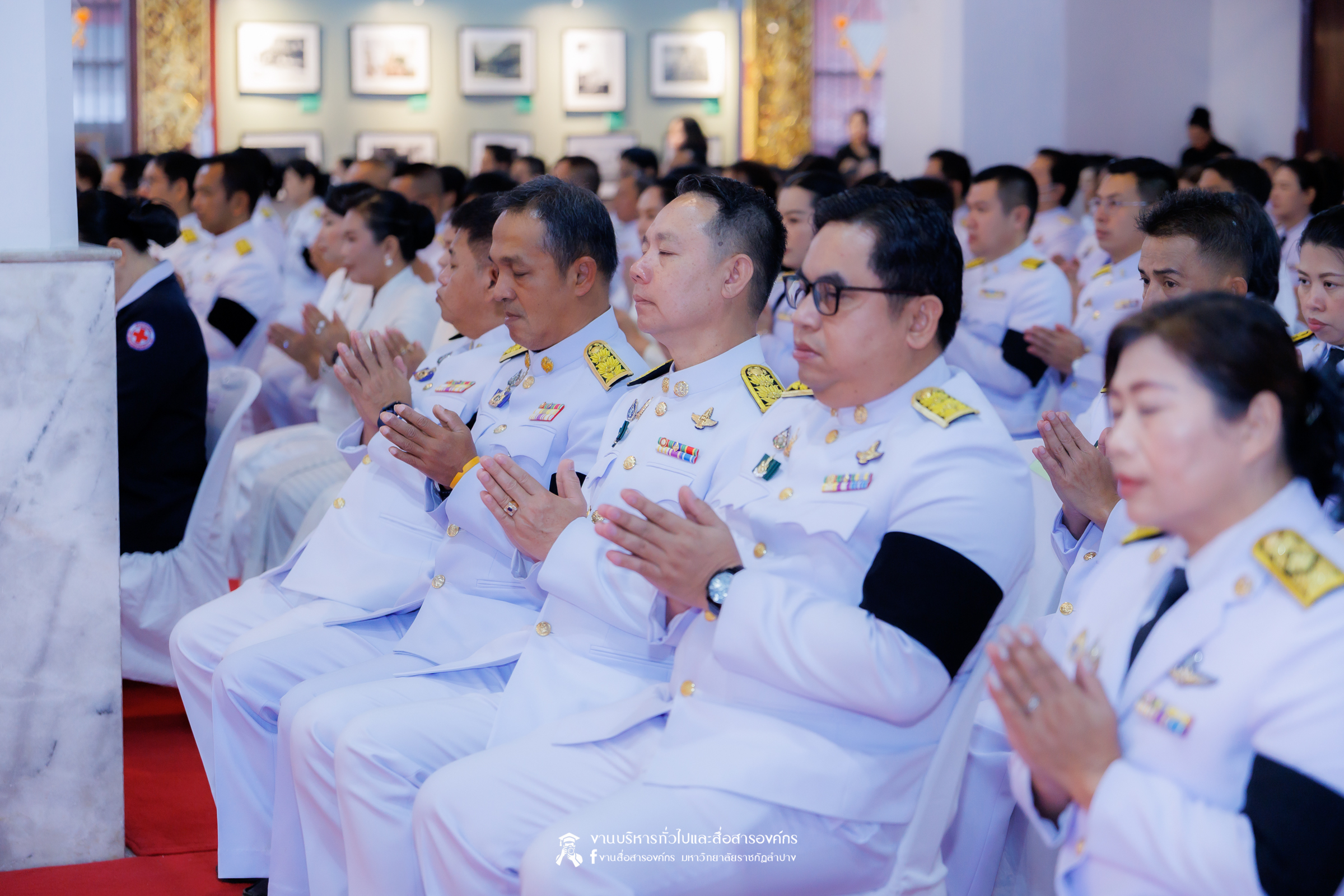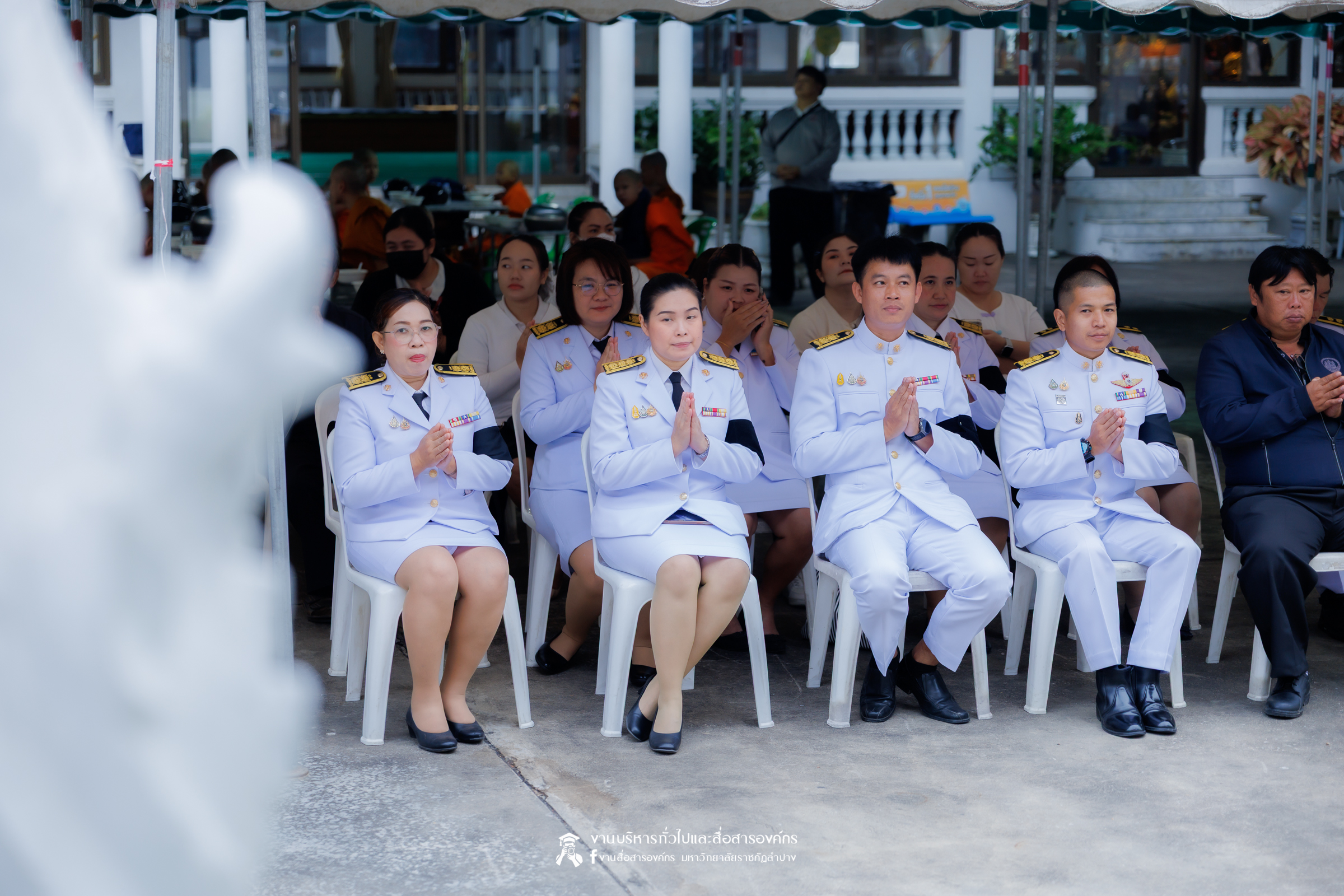 เมื่อวันที่ 5 ธันวาคม 2568 รศ.ดร.ปริเยศ สิทธิสรวง รองอธิการบดีฝ่ายบริหาร พร้อมด้วย นางสาวศศธร เครือนันตา นักประชาสัมพันธ์ ชำนาญการ รักษาการในตำแหน่งหัวหน้างานบริหารทั่วไปและสื่อสารองค์กร นางกันทิมา จันทร์แสง เจ้าหน้าที่บริหารงานทั่วไป ปฏิบัติการ ปฏิบัติหน้าที่ในตำแหน่งหัวหน้างานบริหารทั่วไป สังกัดกองพัฒนานักศึกษา นางสาวศิริลักษณ์ พิลัยหล้า นักวิชาการศึกษาพิเศษ ปฏิบัติการ นางสาวกาญจนา ไชยโย นักวิชาการศึกษาพิเศษ ปฏิบัติการ นายณัฐวุฒิ นันต๊ะแขม เจ้าหน้าที่บริหารงานทั่วไป ปฏิบัติการ นางสาวเปรมกมล สานำ เจ้าหน้าที่บริหารงานทั่วไป ปฏิบัติการ ว่าที่ร้อยเอกเอกนรินทร์ เสาสีนาด นักวิชาการศึกษา ปฏิบัติการ สังกัดกองพัฒนานักศึกษา และนายชนาธิป เมืองมูล นักประชาสัมพันธ์ ปฏิบัติการ สังกัดงานบริหารทั่วไปและสื่อสารองค์กร สำนักงานอธิการบดี ร่วมพิธีเจริญพระพุทธมนต์ และทำบุญตักบาตรถวายพระราชกุศล เนื่องในวันคล้ายวันพระบรมราชสมภพ พระบาทสมเด็จพระบรมชนกาธิเบศร มหาภูมิพลอดุลยเดชมหาราช บรมนาถบพิตร วันชาติ และวันพ่อแห่งชาติ 5 ธันวาคม 2568 โดยมี นายวิวัฒน์ อินทร์ไทยวงศ์ ผู้ว่าราชการจังหวัดลำปาง นำคณะผู้บริหาร หัวหน้าส่วนราชการ ข้าราชการ เจ้าหน้าที่ และประชาชนชาวจังหวัดลำปางทุกหมู่เหล่า เข้าร่วมพิธี ณ วัดพระแก้วดอนเต้าสุชาดาราม พระอารามหลวง