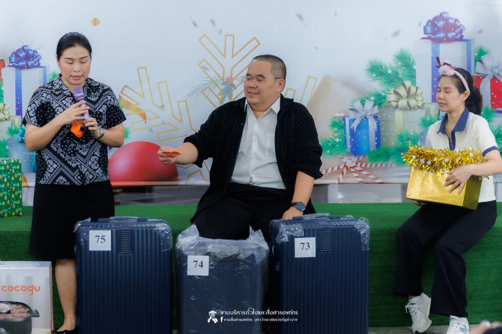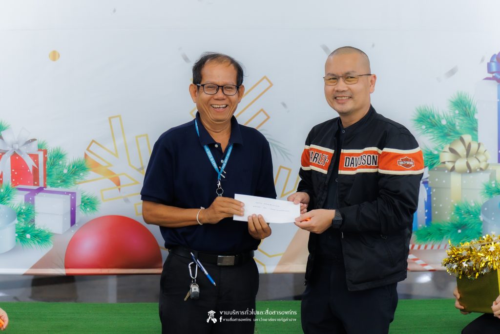 โอกาสนี้ อธิการบดีและคณะผู้บริหารมหาวิทยาลัยราชภัฏลำปาง ได้ร่วมกันจับรางวัลชิงโชคให้แก่บุคลากร ณ โถงกลาง ชั้น 1 อาคารสำนักงานอธิการบดี โดยการจับรางวัลดำเนินการผ่านระบบออนไลน์ เพื่อความสะดวก โปร่งใส และทั่วถึง ซึ่งมีคณาจารย์ เจ้าหน้าที่ และบุคลากรเข้าร่วมกิจกรรมกว่า 200 คน ท่ามกลางบรรยากาศที่อบอุ่น เป็นกันเอง และเปี่ยมไปด้วยรอยยิ้ม