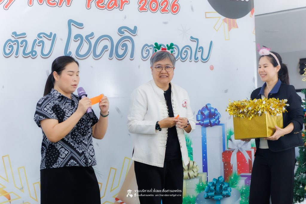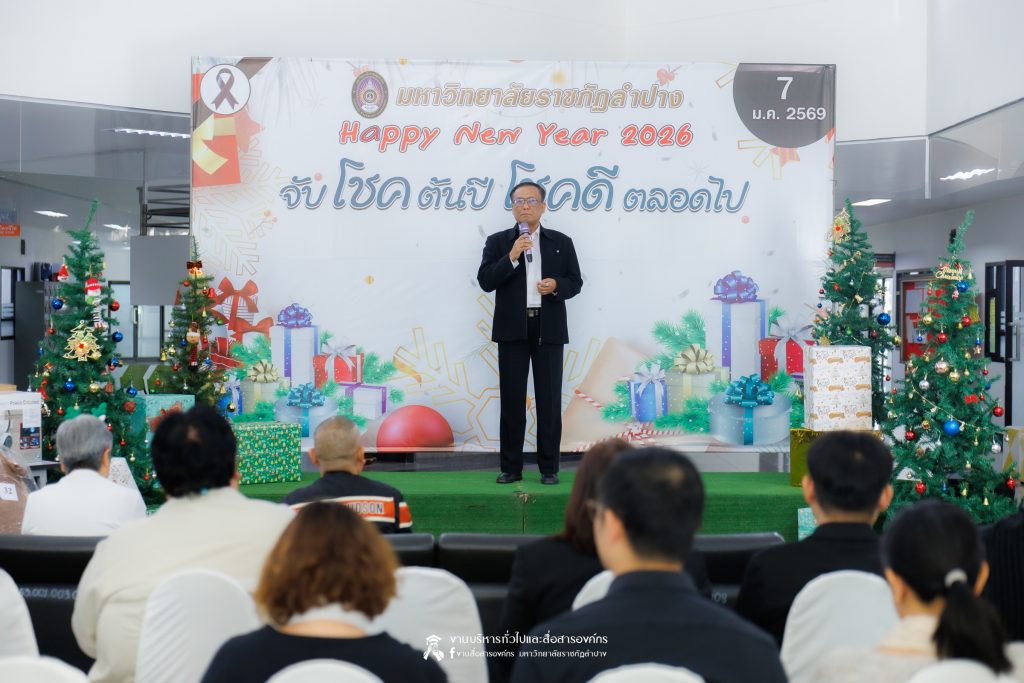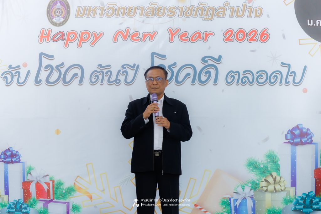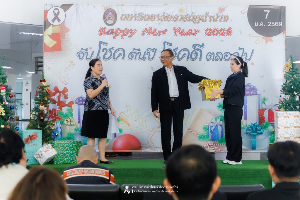 เมื่อวันที่ 7 มกราคม 2569 รศ.ดร.กิตติศักดิ์ สมุทธารักษ์ อธิการบดีมหาวิทยาลัยราชภัฏลำปาง เป็นประธานเปิดกิจกรรม “จับโชคต้นปี โชคดีตลอดไป” เนื่องในเทศกาลปีใหม่ พ.ศ. 2569 เพื่อสร้างขวัญและกำลังใจแก่คณะผู้บริหาร คณาจารย์ เจ้าหน้าที่ และบุคลากรของมหาวิทยาลัย พร้อมกล่าวอวยพรเนื่องในโอกาสขึ้นปีใหม่ แสดงความปรารถนาดีและให้กำลังใจแก่บุคลากรทุกภาคส่วนในการปฏิบัติหน้าที่ด้วยความมุ่งมั่น ตั้งใจ และร่วมกันขับเคลื่อนมหาวิทยาลัยสู่ความก้าวหน้าอย่างยั่งยืน