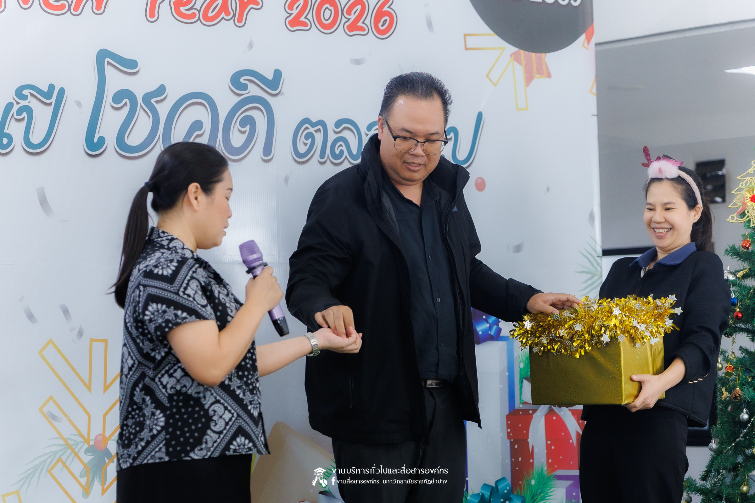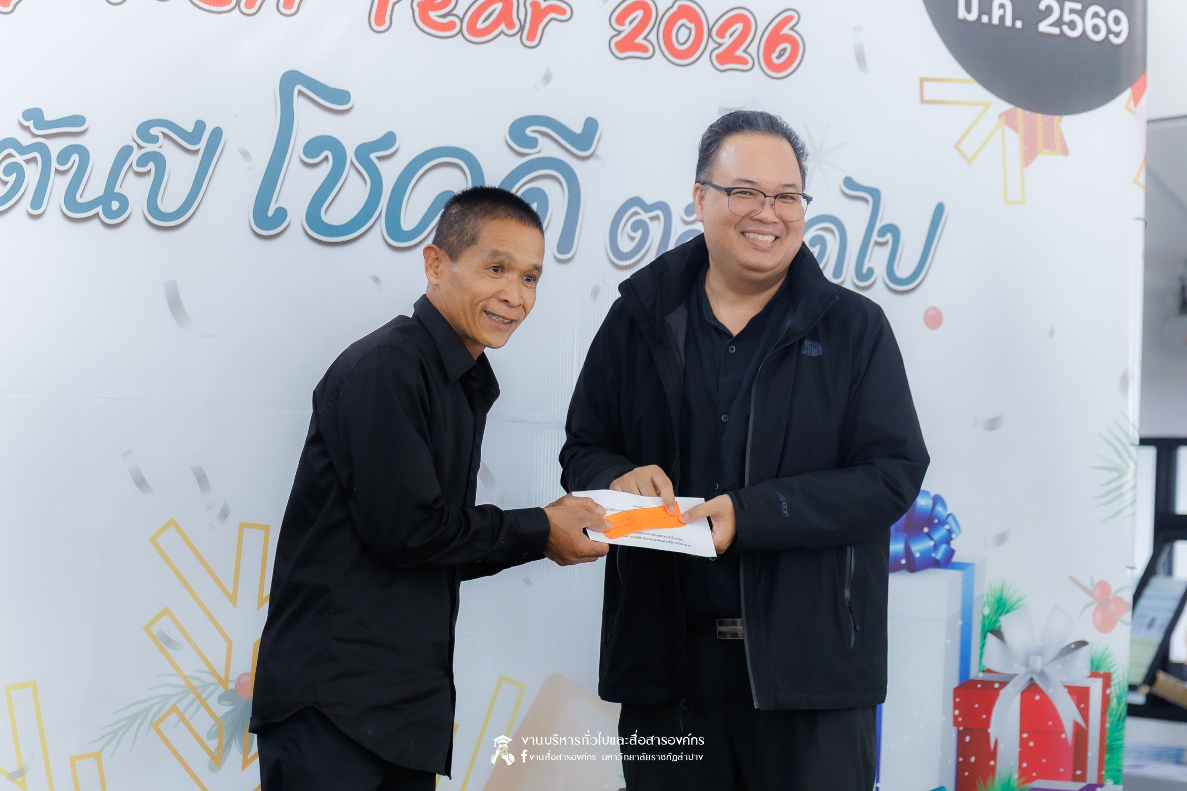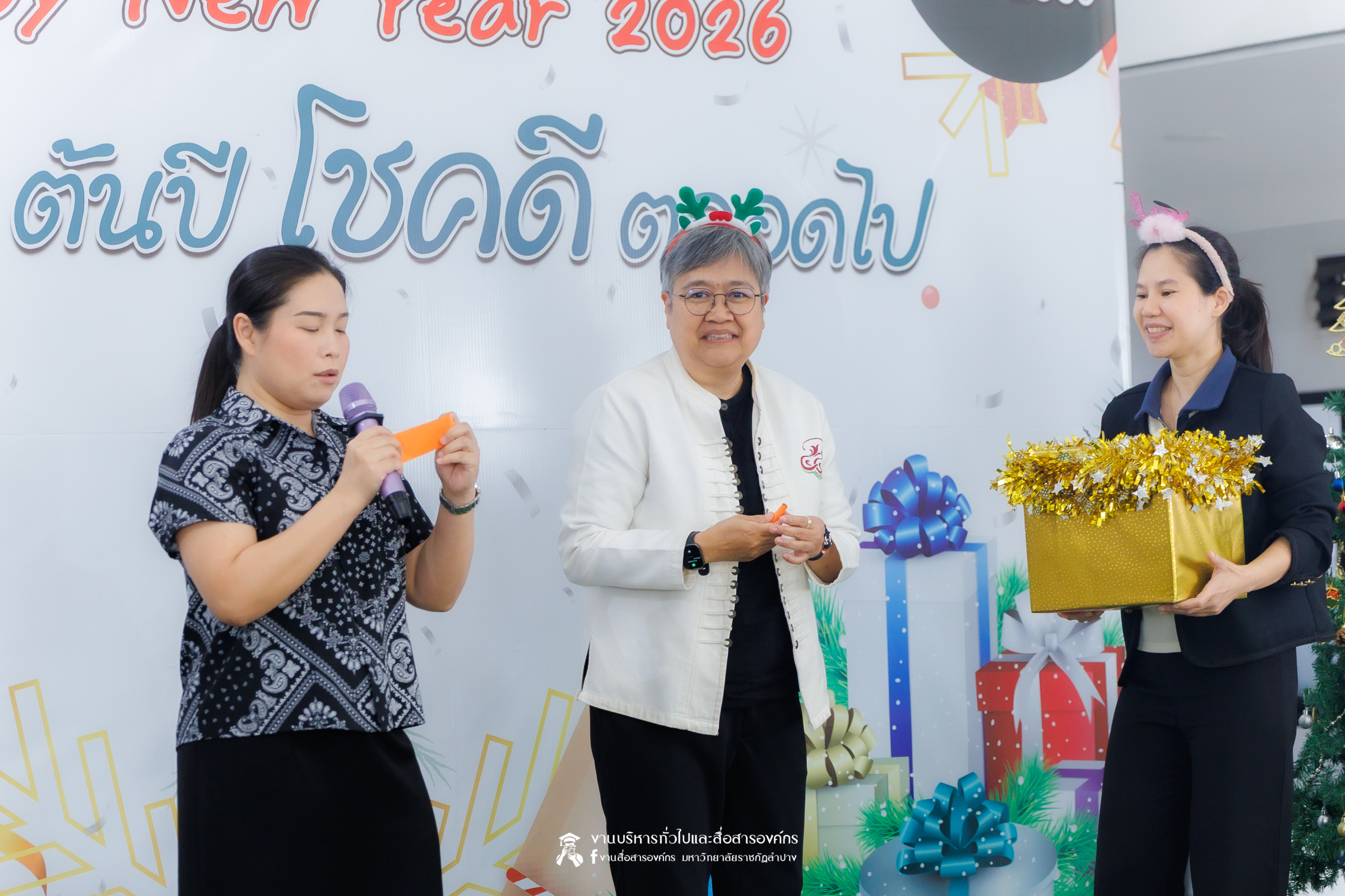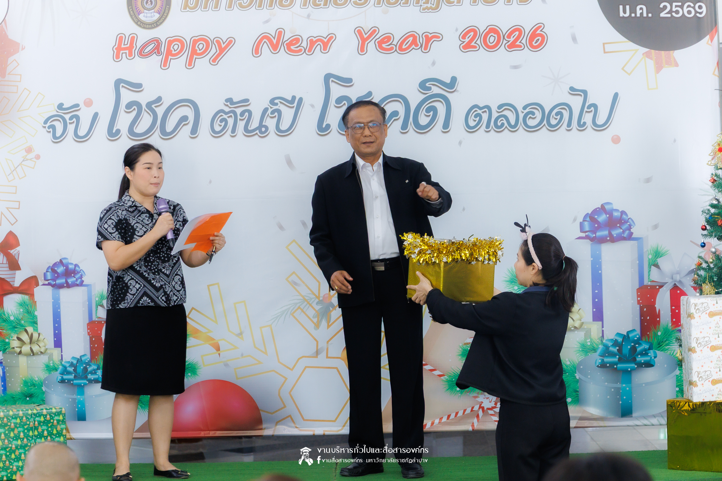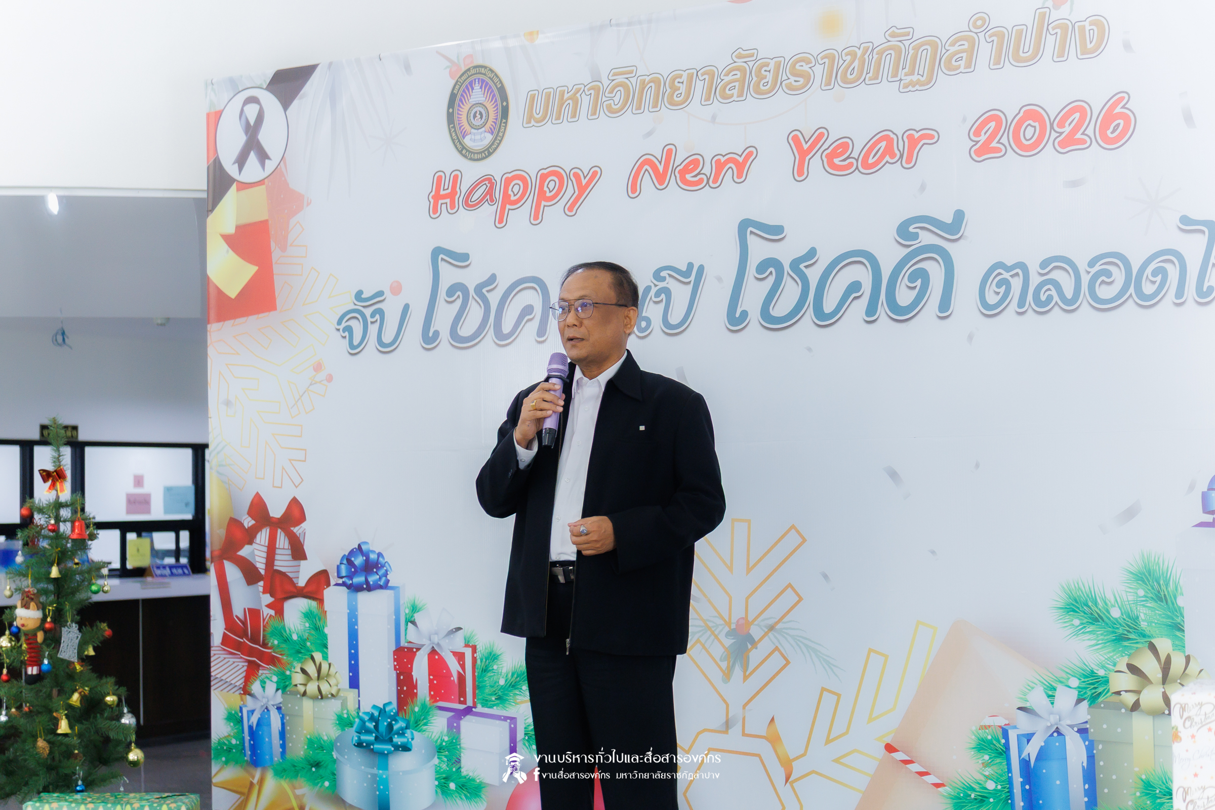 เมื่อวันที่ 7 มกราคม 2569 รศ.ดร.กิตติศักดิ์ สมุทธารักษ์ อธิการบดีมหาวิทยาลัยราชภัฏลำปาง เป็นประธานเปิดกิจกรรม “จับโชคต้นปี โชคดีตลอดไป” เนื่องในเทศกาลปีใหม่ พ.ศ. 2569 เพื่อสร้างขวัญและกำลังใจแก่คณะผู้บริหาร คณาจารย์ เจ้าหน้าที่ และบุคลากรของมหาวิทยาลัย พร้อมกล่าวอวยพรเนื่องในโอกาสขึ้นปีใหม่ แสดงความปรารถนาดีและให้กำลังใจแก่บุคลากรทุกภาคส่วนในการปฏิบัติหน้าที่ด้วยความมุ่งมั่น ตั้งใจ และร่วมกันขับเคลื่อนมหาวิทยาลัยสู่ความก้าวหน้าอย่างยั่งยืน
