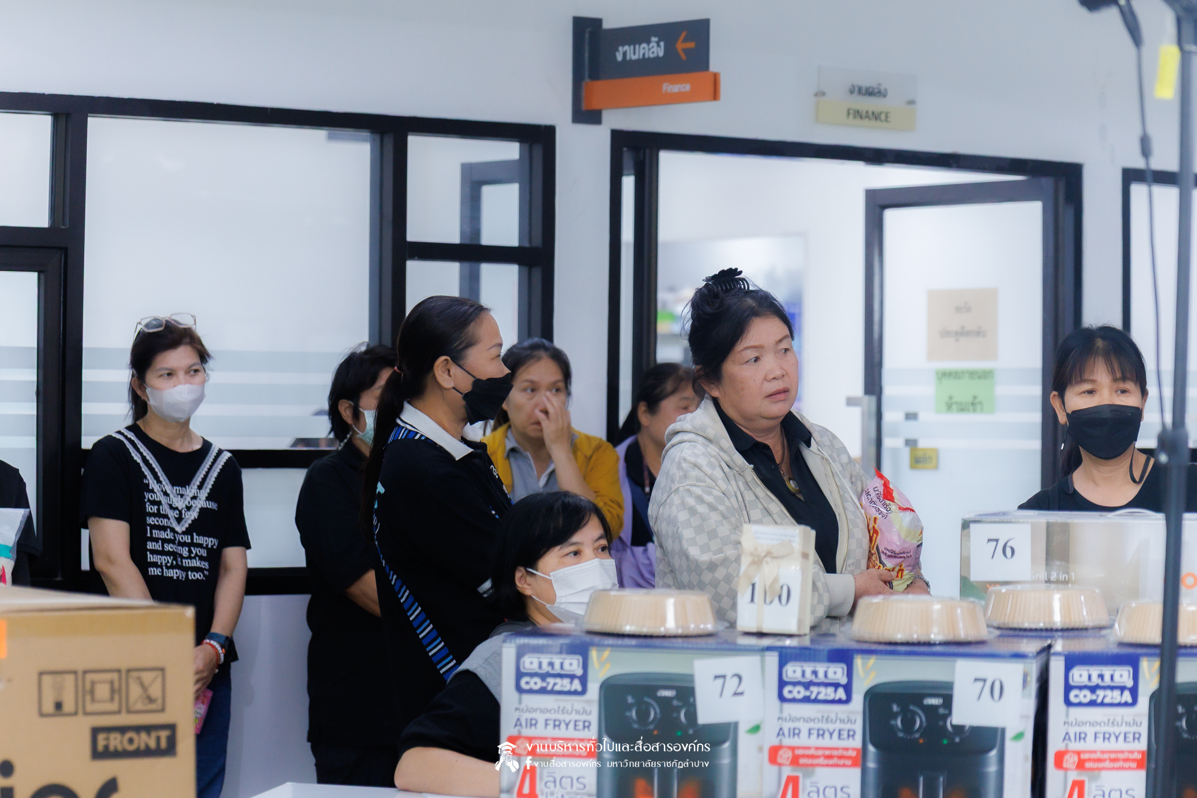 โอกาสนี้ อธิการบดีและคณะผู้บริหารมหาวิทยาลัยราชภัฏลำปาง ได้ร่วมกันจับรางวัลชิงโชคให้แก่บุคลากร ณ โถงกลาง ชั้น 1 อาคารสำนักงานอธิการบดี โดยการจับรางวัลดำเนินการผ่านระบบออนไลน์ เพื่อความสะดวก โปร่งใส และทั่วถึง ซึ่งมีคณาจารย์ เจ้าหน้าที่ และบุคลากรเข้าร่วมกิจกรรมกว่า 200 คน ท่ามกลางบรรยากาศที่อบอุ่น เป็นกันเอง และเปี่ยมไปด้วยรอยยิ้ม
