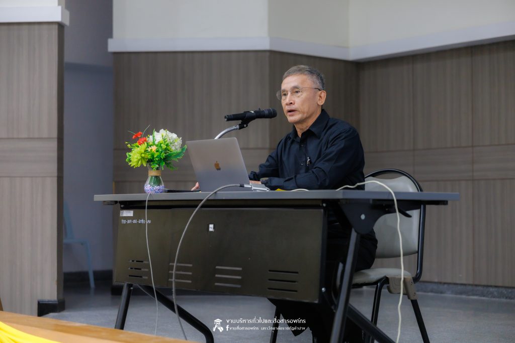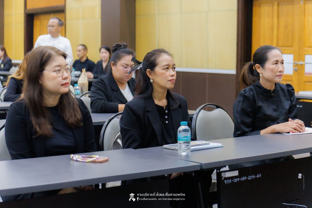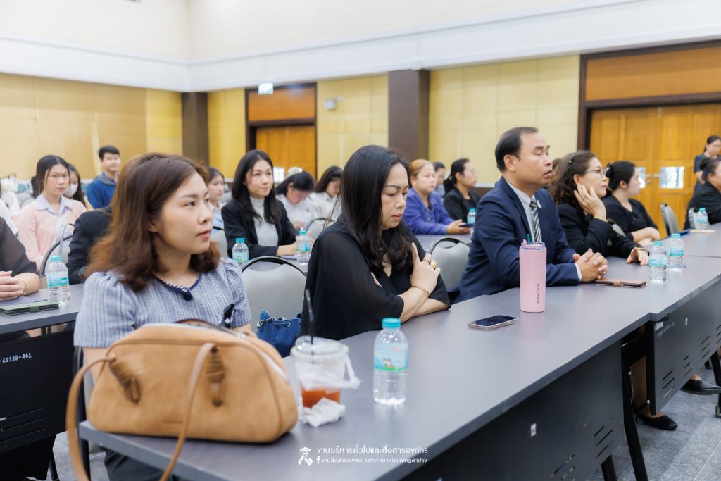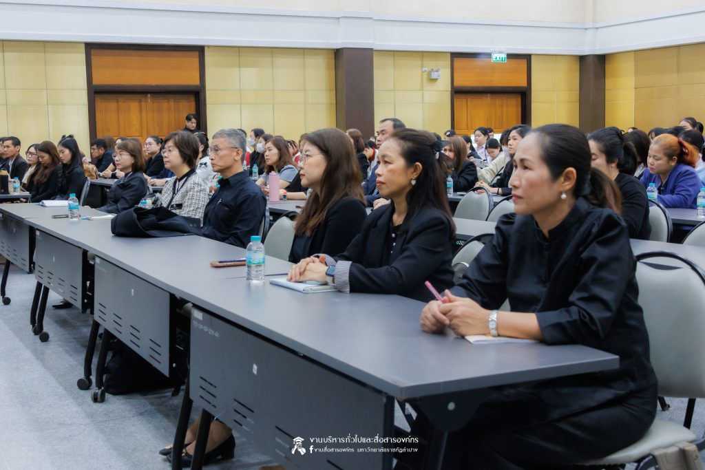 เมื่อวันที่ 6 พฤศจิกายน 2568 รศ.ดร.กิตติศักดิ์ สมุทธารักษ์ อธิการบดีมหาวิทยาลัยราชภัฏลำปาง เป็นประธานเปิด “มหกรรมจิตตปัญญา ครั้งที่ 4” โครงการหยั่งรากจิตตปัญญาสู่สังคมแห่งความสุข ณ ห้องประชุมเอื้องหลวง อาคาร 52 คณะครุศาสตร์และคณะมนุษยศาสตร์และสังคมศาสตร์ มหาวิทยาลัยราชภัฏลำปาง โดย อ.ดร.จิรัฐกาล พงศ์ภคเธียร ผู้ช่วยผู้อำนวยการฝ่ายขับเคลื่อนจิตตปัญญาศึกษา ศูนย์จิตตปัญญาศึกษา มหาวิทยาลัยมหิดล กล่าวรายงานวัตถุประสงค์ พร้อมกันนี้ รศ.ดร.ฟิสิกส์ ฌอณ บัวกนก คณบดีคณะครุศาสตร์ พร้อมด้วยผู้บริหาร คณาจารย์ และนักศึกษาสาขาวิชาจิตวิทยาการศึกษาและการแนะแนว และสาขาวิชาดนตรีศึกษา หลักสูตรตรุศาสตร์บัณฑิต เข้าร่วมในกิจกรรมครั้งนี้ นอกจากนี้ยังมีคณาจารย์หลักสูตรครุศาสตรบัณฑิต จากมหาวิทยาลัยราชภัฏภาคเหนือ 8 แห่ง และ มหาวิทยาลัยราชภัฏเครือข่าย อาทิ มหาวิทยาลัยราชภัฏเลย มหาวิทยาลัยราชภัฏอุดรธานี และมหาวิทยาลัยราชภัฏภูเก็ต เข้าร่วม