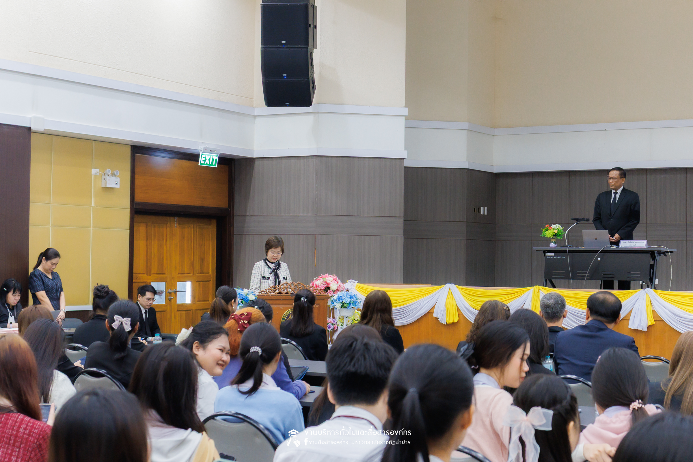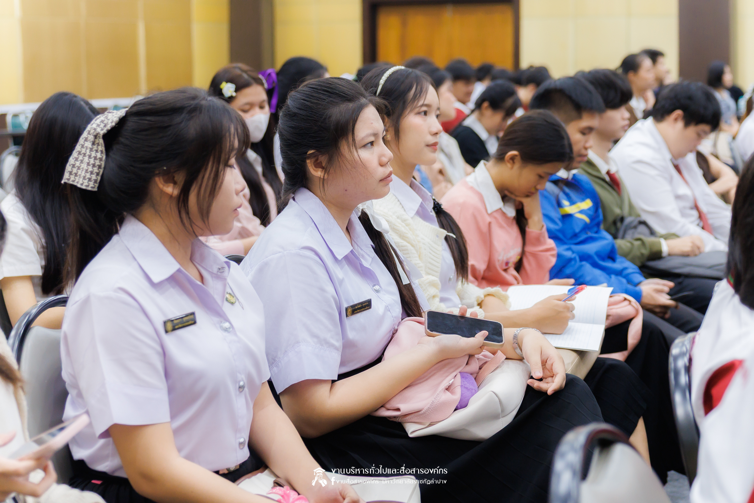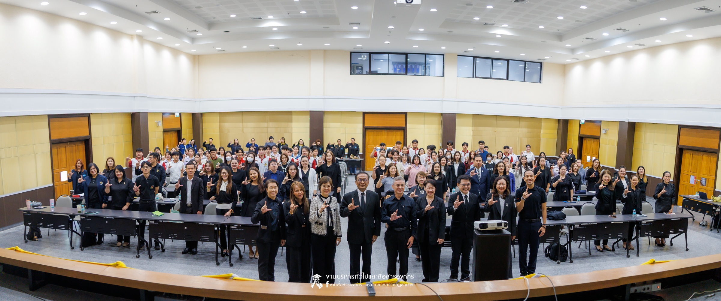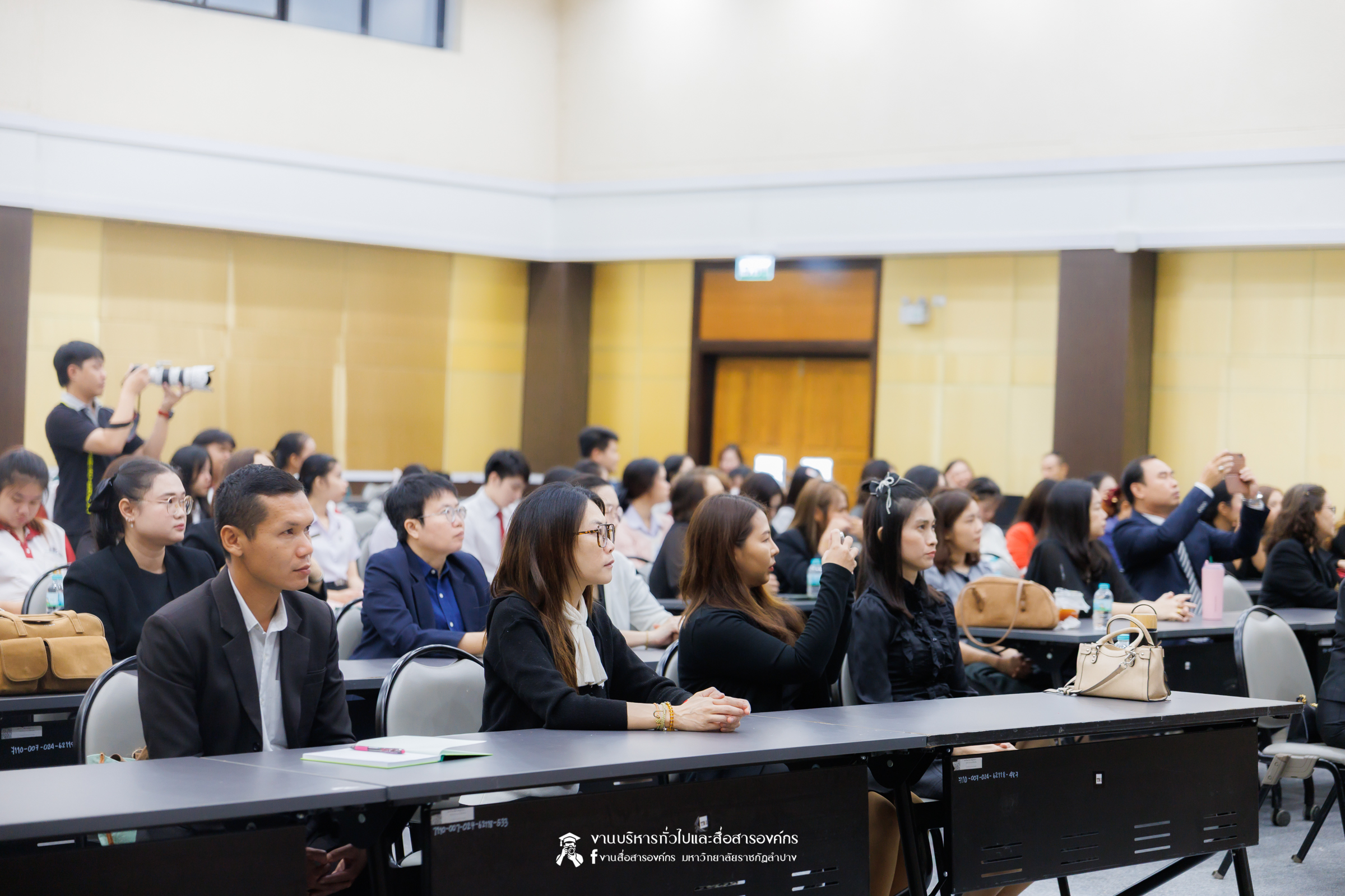 เมื่อวันที่ 6 พฤศจิกายน 2568 รศ.ดร.กิตติศักดิ์ สมุทธารักษ์ อธิการบดีมหาวิทยาลัยราชภัฏลำปาง เป็นประธานเปิด “มหกรรมจิตตปัญญา ครั้งที่ 4” โครงการหยั่งรากจิตตปัญญาสู่สังคมแห่งความสุข ณ ห้องประชุมเอื้องหลวง อาคาร 52 คณะครุศาสตร์และคณะมนุษยศาสตร์และสังคมศาสตร์ มหาวิทยาลัยราชภัฏลำปาง โดย อ.ดร.จิรัฐกาล พงศ์ภคเธียร ผู้ช่วยผู้อำนวยการฝ่ายขับเคลื่อนจิตตปัญญาศึกษา ศูนย์จิตตปัญญาศึกษา มหาวิทยาลัยมหิดล กล่าวรายงานวัตถุประสงค์ พร้อมกันนี้ รศ.ดร.ฟิสิกส์ ฌอณ บัวกนก คณบดีคณะครุศาสตร์ พร้อมด้วยผู้บริหาร คณาจารย์ และนักศึกษาสาขาวิชาจิตวิทยาการศึกษาและการแนะแนว และสาขาวิชาดนตรีศึกษา หลักสูตรตรุศาสตร์บัณฑิต เข้าร่วมในกิจกรรมครั้งนี้ นอกจากนี้ยังมีคณาจารย์หลักสูตรครุศาสตรบัณฑิต จากมหาวิทยาลัยราชภัฏภาคเหนือ 8 แห่ง และ มหาวิทยาลัยราชภัฏเครือข่าย อาทิ มหาวิทยาลัยราชภัฏเลย มหาวิทยาลัยราชภัฏอุดรธานี และมหาวิทยาลัยราชภัฏภูเก็ต เข้าร่วม