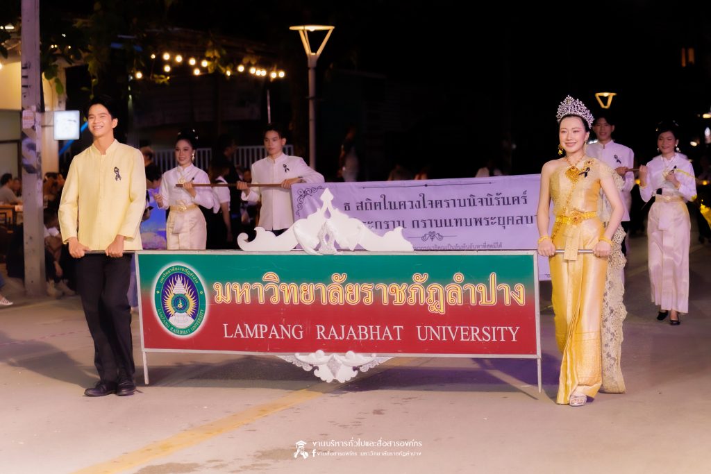 เมื่อวันที่ 6 พฤศจิกายน 2568 มหาวิทยาลัยราชภัฏลำปาง นำโดย ผศ.เจษฎา ทองสุข ผู้อำนวยการสำนักศิลปะและวัฒนธรรม พร้อมด้วย อ.สุทธิมั่น ปิยะโกศล อ.ดร.เยาวลักษณ์ งามแสนโรจน์ อ.ดร.วรรักษ์ หน่อสีดา รองผู้อำนวยการสำนักฯ อ.อัจฉริยา ครุธาโรจน์ ผู้ช่วยอธิการบดีด้านวิเทศสัมพันธ์ คณาจารย์ บุคลากร และนักศึกษากว่า 200 คน เข้าร่วมกิจกรรมประกวดขบวนสะเปารถใหญ่ ในงาน “ล่องสะเปาจาวละกอน” ประจำปี 2568 ซึ่งจัดโดยเทศบาลนครลำปาง
