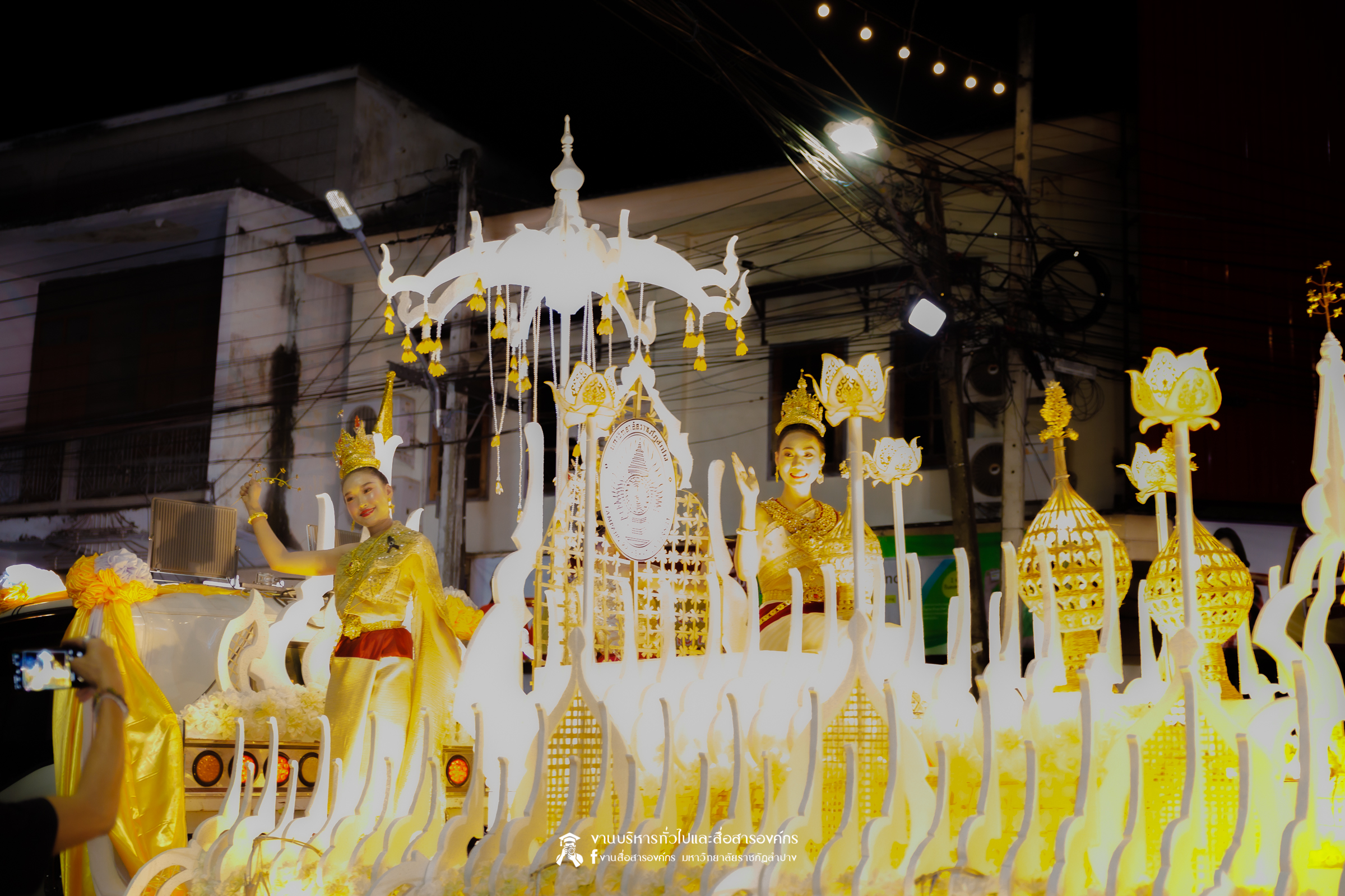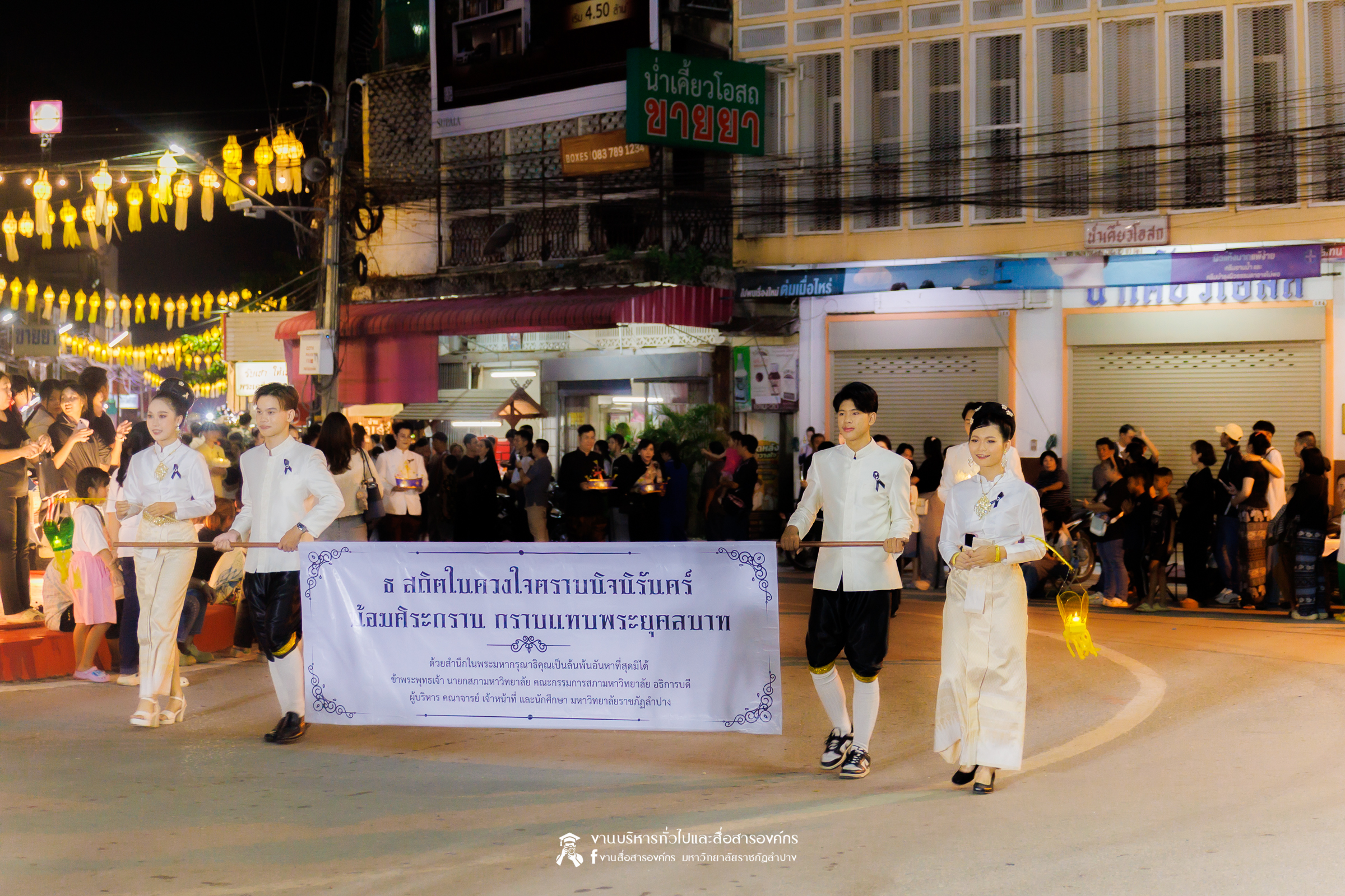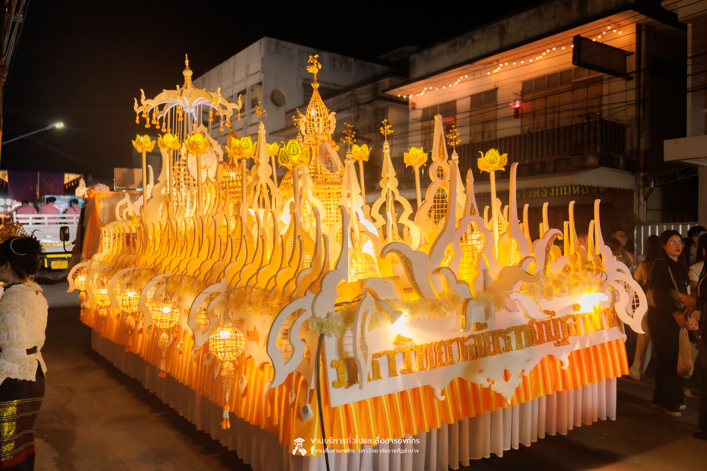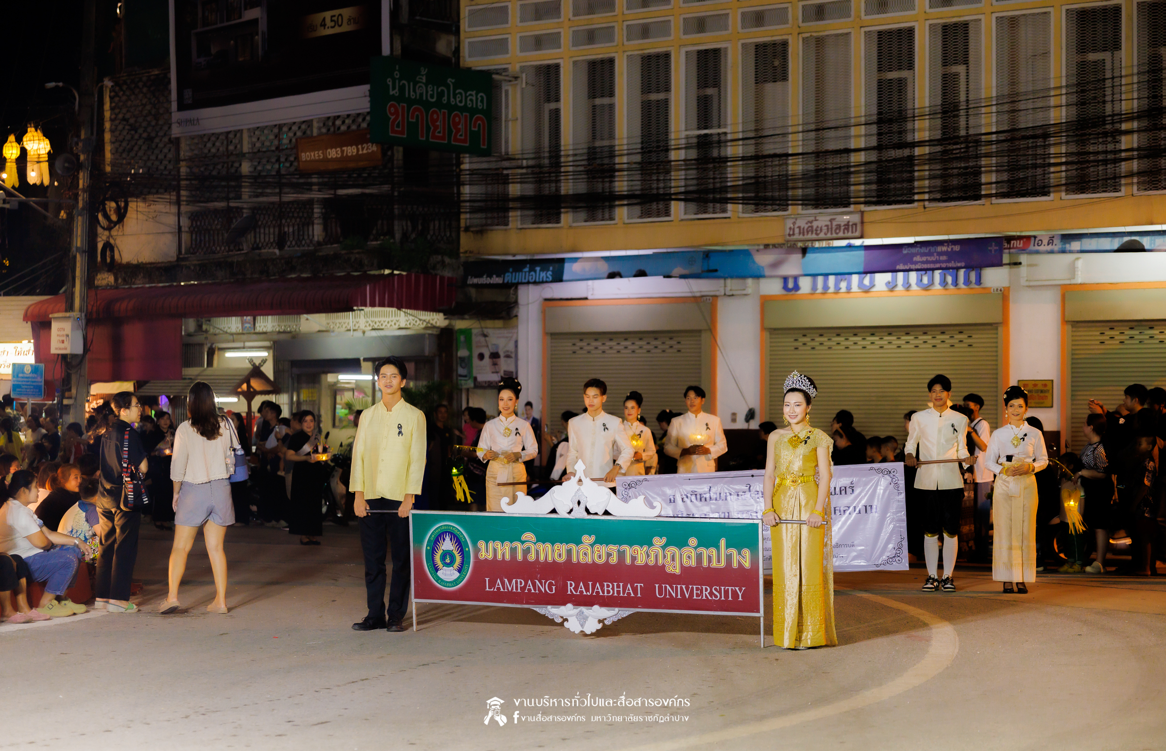 เมื่อวันที่ 6 พฤศจิกายน 2568 มหาวิทยาลัยราชภัฏลำปาง นำโดย ผศ.เจษฎา ทองสุข ผู้อำนวยการสำนักศิลปะและวัฒนธรรม พร้อมด้วย อ.สุทธิมั่น ปิยะโกศล อ.ดร.เยาวลักษณ์ งามแสนโรจน์ อ.ดร.วรรักษ์ หน่อสีดา รองผู้อำนวยการสำนักฯ อ.อัจฉริยา ครุธาโรจน์ ผู้ช่วยอธิการบดีด้านวิเทศสัมพันธ์ คณาจารย์ บุคลากร และนักศึกษากว่า 200 คน เข้าร่วมกิจกรรมประกวดขบวนสะเปารถใหญ่ ในงาน “ล่องสะเปาจาวละกอน” ประจำปี 2568 ซึ่งจัดโดยเทศบาลนครลำปาง