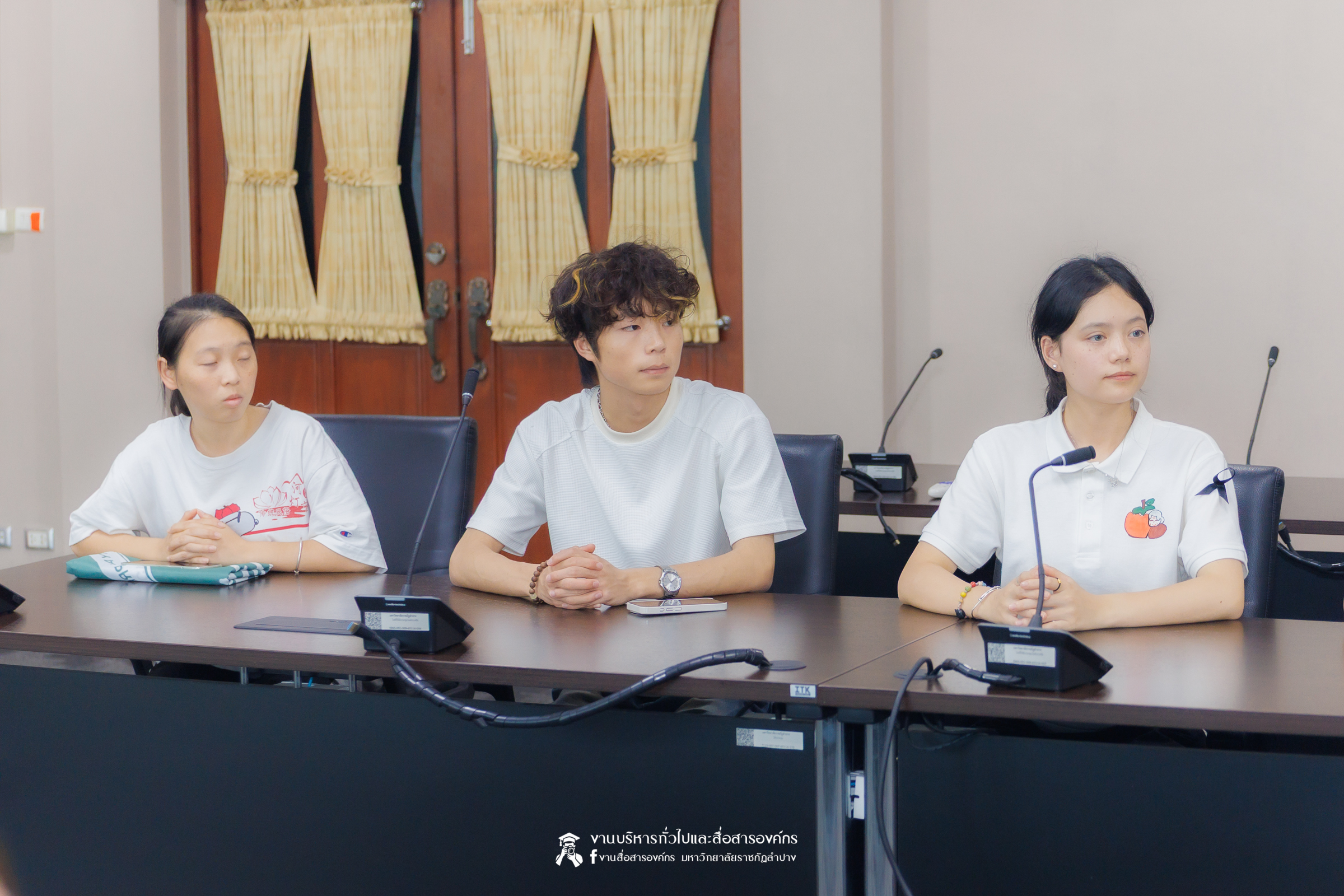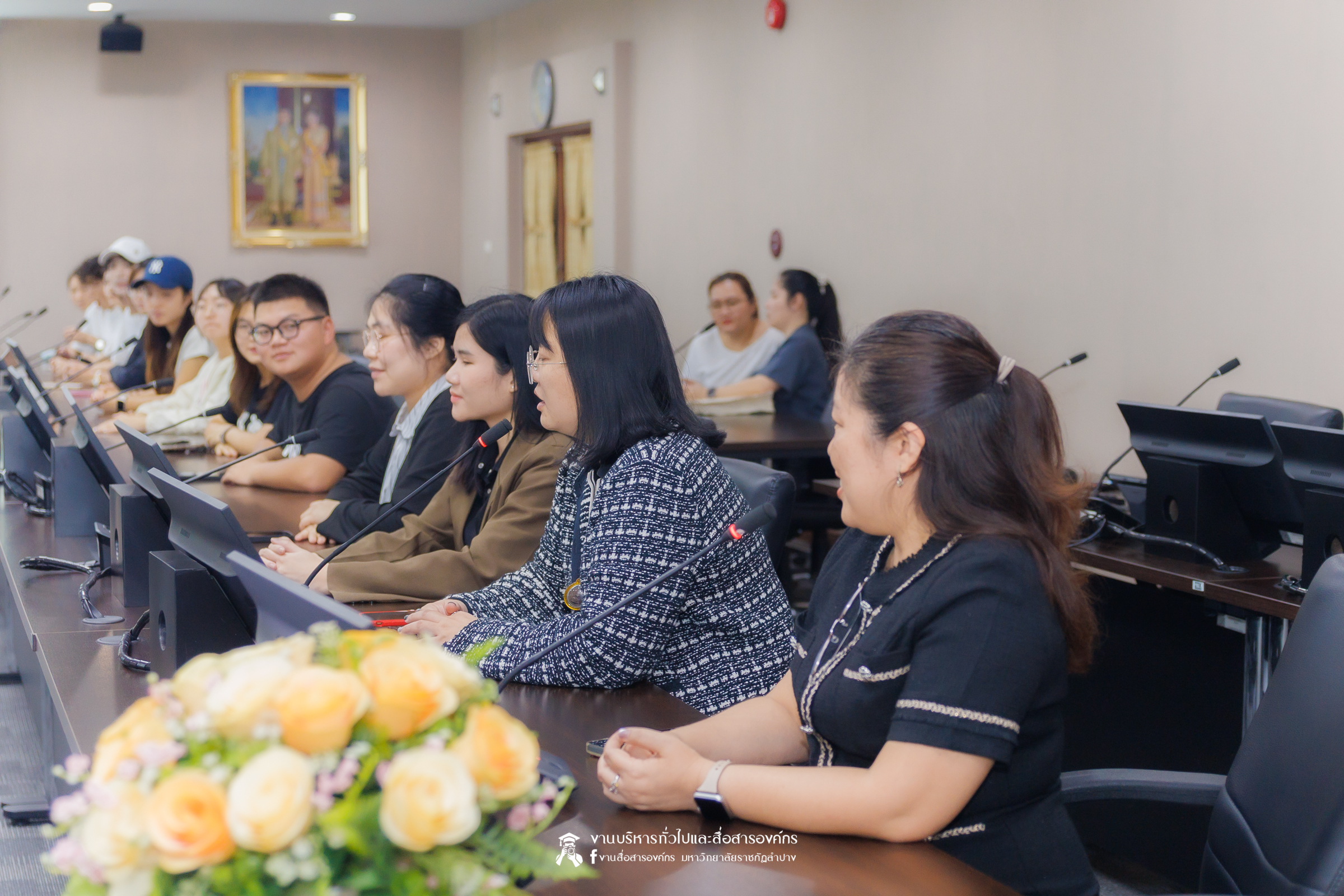 เมื่อวันที่ 7 พฤศจิกายน 2568 รศ.ดร.กิตติศักดิ์ สมุทธารักษ์ อธิการบดีมหาวิทยาลัยราชภัฏลำปางให้การต้อนรับและกล่าวให้โอวาทแก่นักศึกษาแลกเปลี่ยน โครงการฝึกอบรมระยะสั้น แลกเปลี่ยนเรียนรู้ภาษาและวัฒนธรรมไทย (2 สัปดาห์) จากวิทยาลัยการศึกษาปฐมวัยกุ้ยหยาง (Guiyang Preschool Education College) มณฑลกุ้ยโจว สาธารณรัฐประชาชนจีน โดย อ.อัจฉริยา ครุธาโรจน์ ผู้ช่วยอธิการบดีด้านวิเทศสัมพันธ์ พร้อมด้วยตัวแทนอาจารย์ทีมวิทยากร ได้แก่ อ.นิชธาวัลย์ ฟูคำ อ.ณธษา ตั้งชัยวรรณาและ อ.Wang Huan จากสาขาวิชาภาษาจีน คณะมนุษยศาสตร์และสังคมศาสตร์ นำนักศึกษาแลกเปลี่ยน ฯ ดังกล่าวเข้าพบท่านอธิการบดี ณ ห้องประชุมโอฬารฤทธิ์ ชั้น 10 อาคารโอฬาร โรจน์หิรัญ มหาวิทยาลัยราชภัฏลำปาง