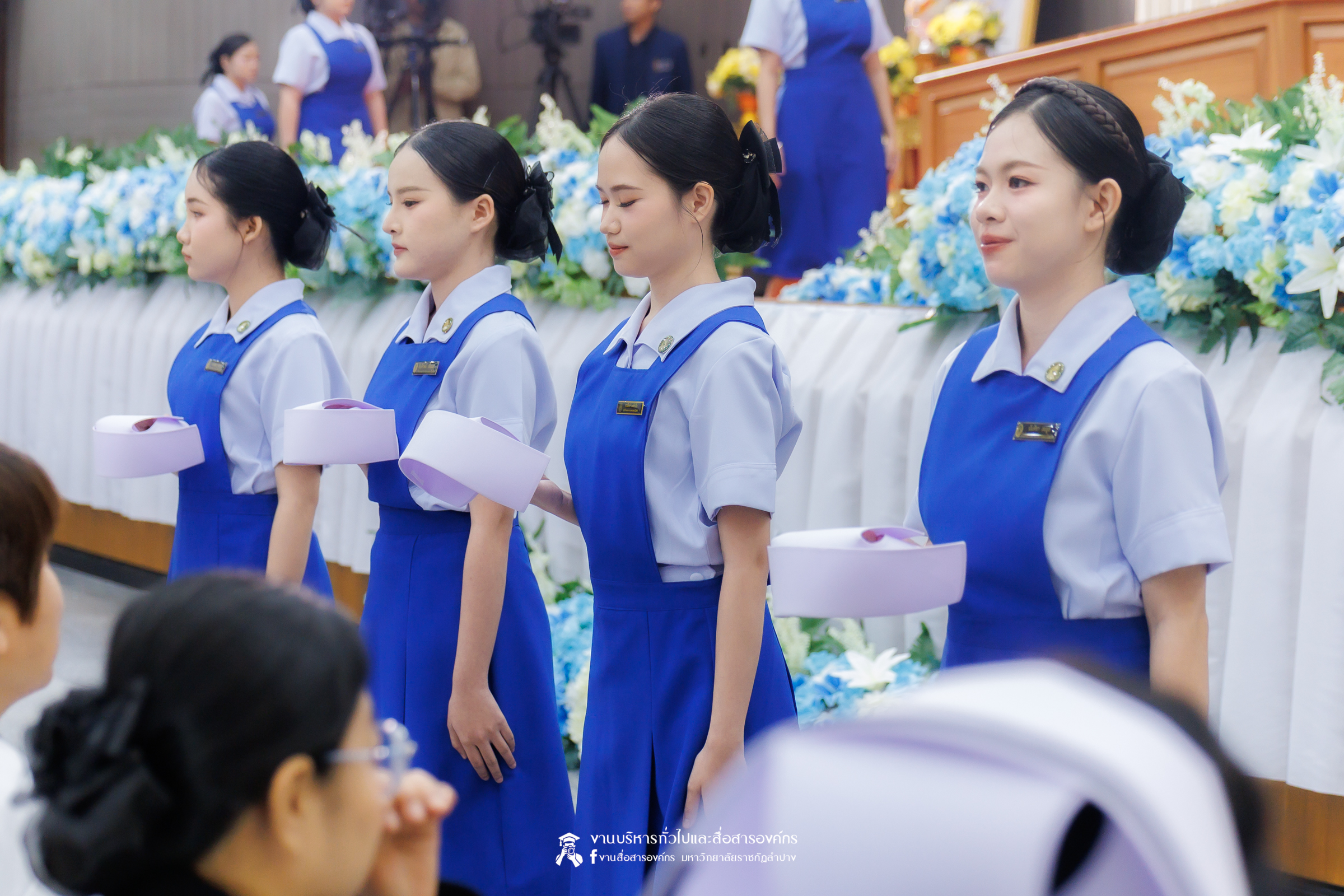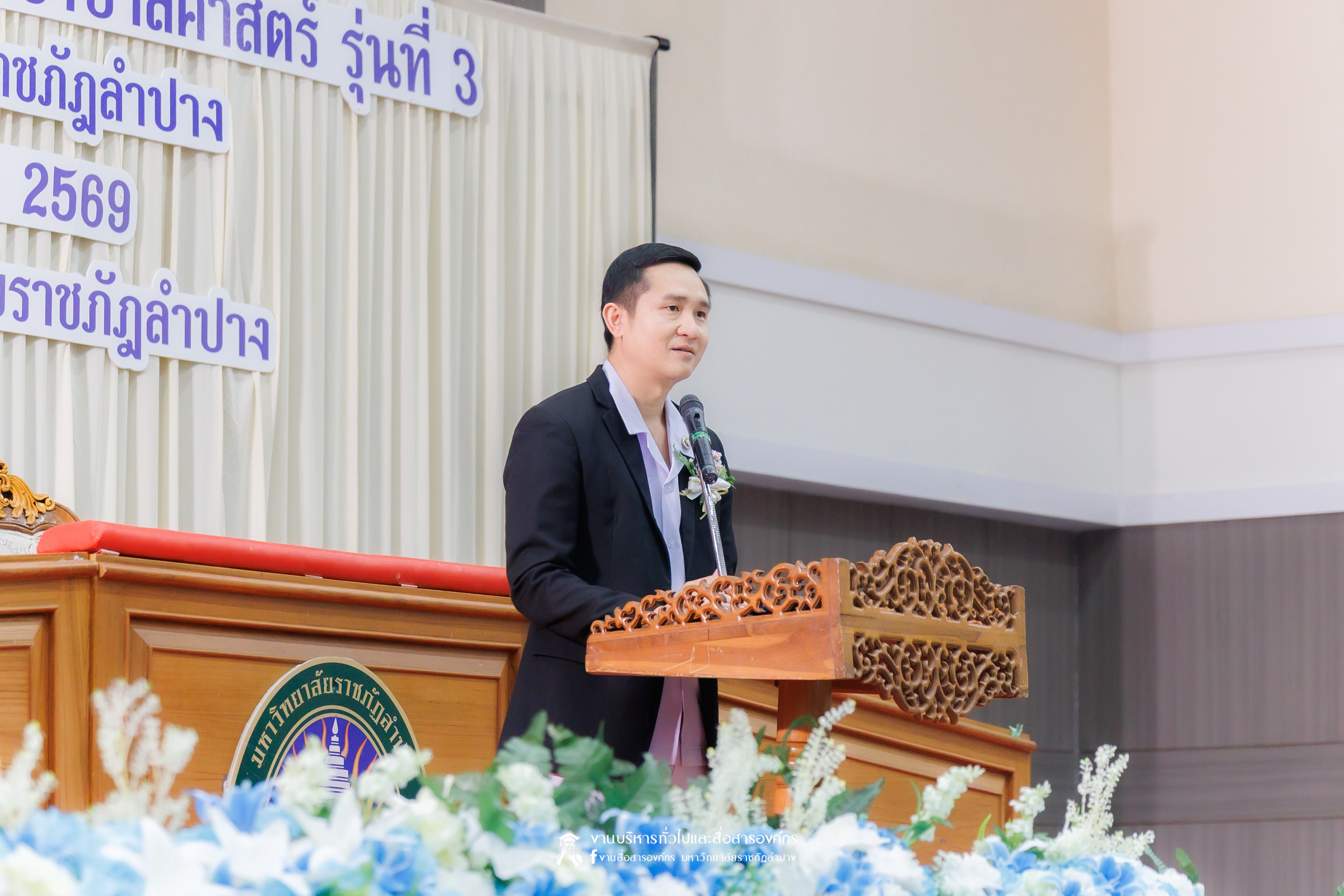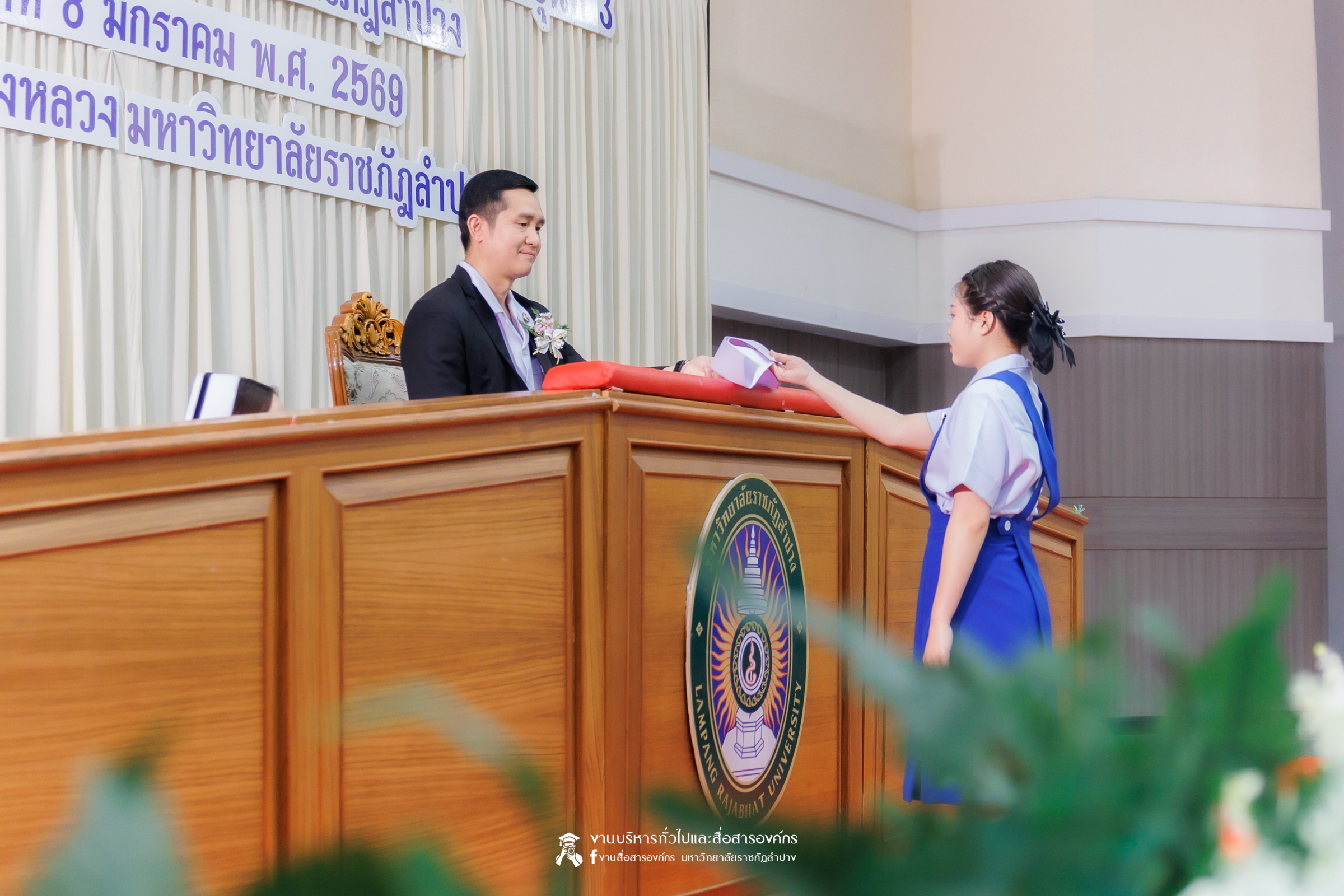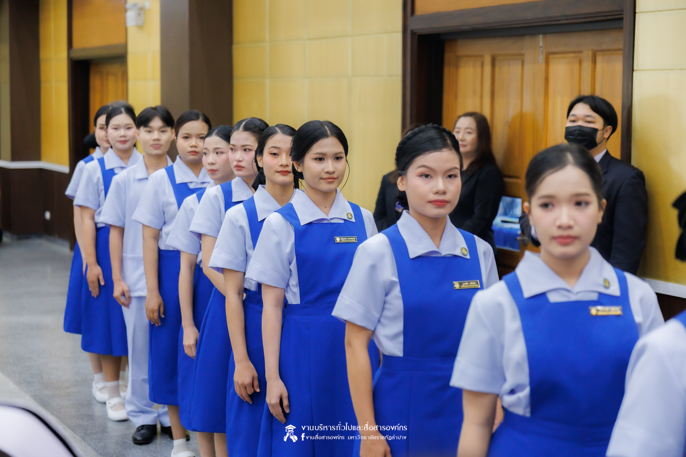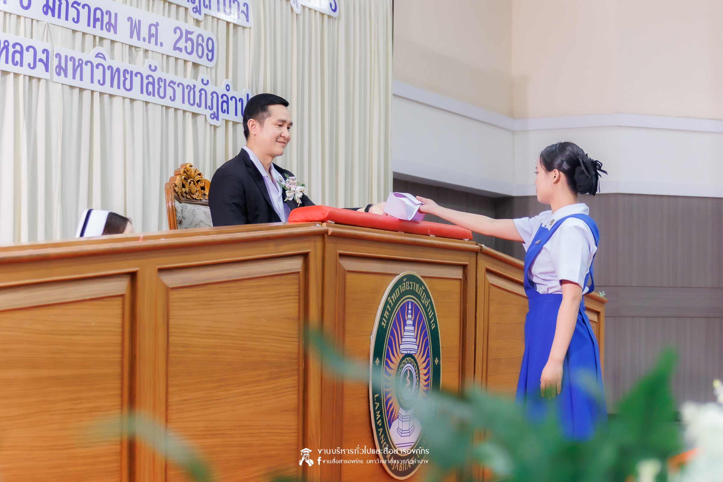 คณะพยาบาลศาสตร์ มหาวิทยาลัยราชภัฏลำปาง จัดพิธีมอบหมวกและเข็มเครื่องหมายประจำชั้นปี ให้แก่นักศึกษาหลักสูตรพยาบาลศาสตรบัณฑิต ชั้นปีที่ 2 ปีการศึกษา 2568 เมื่อวันที่ 8 มกราคม 2569 ณ ห้องประชุมเอื้องหลวง อาคาร 52 คณะครุศาสตร์และคณะมนุษยศาสตร์และสังคมศาสตร์ มหาวิทยาลัยราชภัฏลำปาง โดยมี อ.ปิยธรณ์ เร่งเร็ว คณบดีคณะพยาบาลศาสตร์ เป็นประธานในพิธี พร้อมด้วยผู้บริหาร คณาจารย์ พยาบาลวิชาชีพจากแหล่งฝึก นักศึกษา และผู้ปกครอง เข้าร่วมพิธีกว่า 300 คน