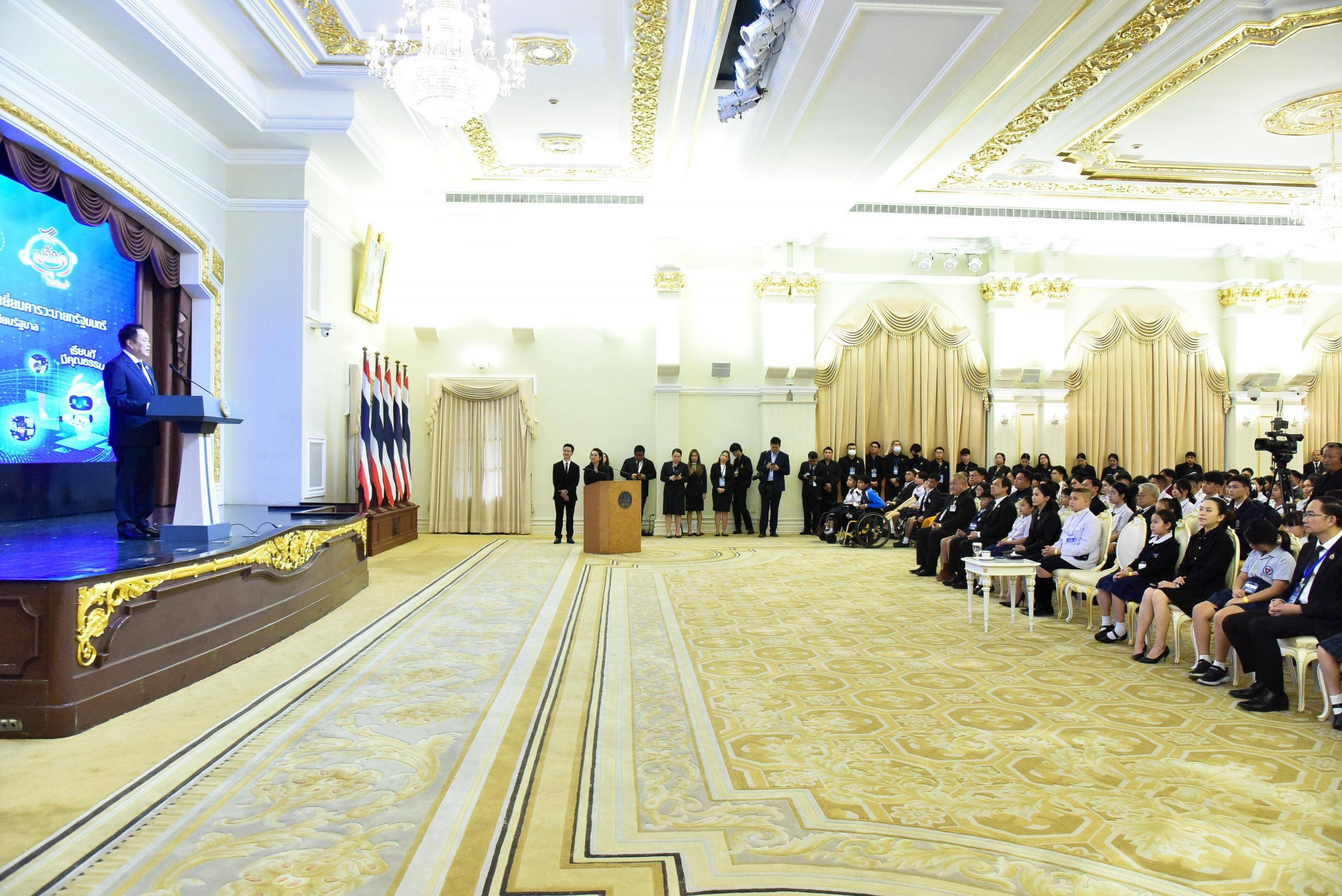 โอกาสนี้ นายกรัฐมนตรีได้ให้โอวาท โดยกล่าวต้อนรับและแสดงความชื่นชมในความสำเร็จของเด็กและเยาวชนทุกคนที่ได้รับรางวัลอันน่าภาคภูมิใจ และกล่าวต้อนรับเด็กและเยาวชนทุกคนสู่ทำเนียบรัฐบาล ซึ่งนับเป็นครั้งแรกที่ได้มีโอกาสต้อนรับผู้คนจำนวนมากเช่นนี้ ขอให้เด็กและเยาวชนทุกคนได้ซึมซับบรรยากาศของสถานที่แห่งนี้ เพื่อเป็นแรงบันดาลใจในการกำหนดเส้นทางชีวิตในอนาคต