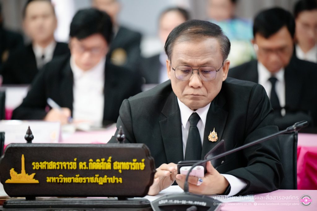 เมื่อวันที่ 7 มีนาคม 2569 รศ.ดร.กิตติศักดิ์ สมุทธารักษ์ อธิการบดีมหาวิทยาลัยราชภัฏลำปาง เข้าร่วมการประชุมอธิการบดีมหาวิทยาลัยราชภัฏแห่งประเทศไทย (ทปอ.มรภ.) ครั้งที่ 2 (186)/2569 ณ ห้องพิมานทิพย์ ชั้น 7 ศูนย์ศิลปวัฒนธรรมกาญจนาภิเษก มหาวิทยาลัยราชภัฏอุบลราชธานี โดยมี รศ.ดร.อดิศร เนาวนนท์ อธิการบดีมหาวิทยาลัยราชภัฏนครราชสีมา ในฐานะประธานที่ประชุมอธิการบดีมหาวิทยาลัยราชภัฏแห่งประเทศไทย เป็นประธานการประชุม พร้อมด้วยอธิการบดี ผู้บริหาร และผู้แทนจากมหาวิทยาลัยราชภัฏทั้ง 38 แห่งเข้าร่วมการประชุม