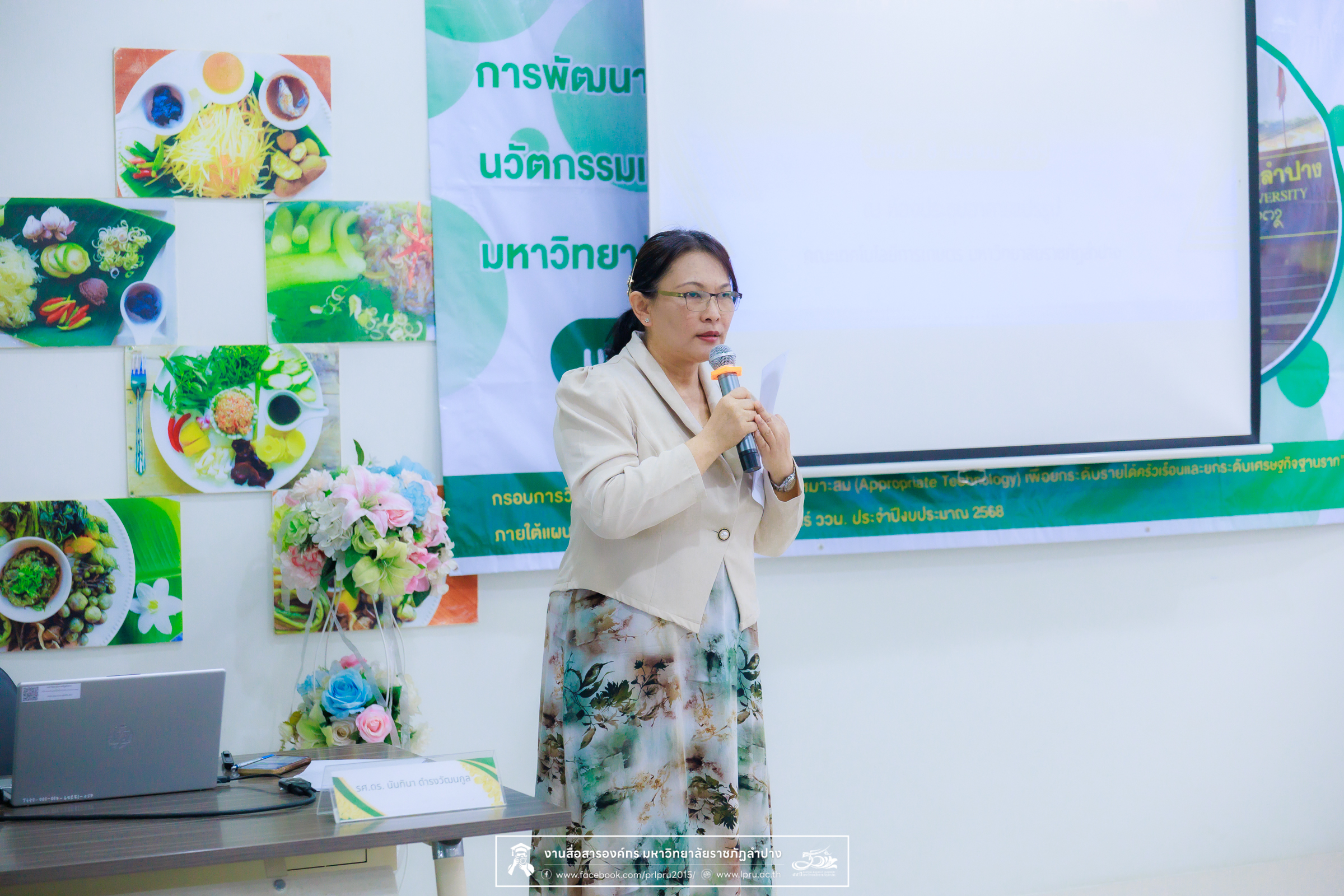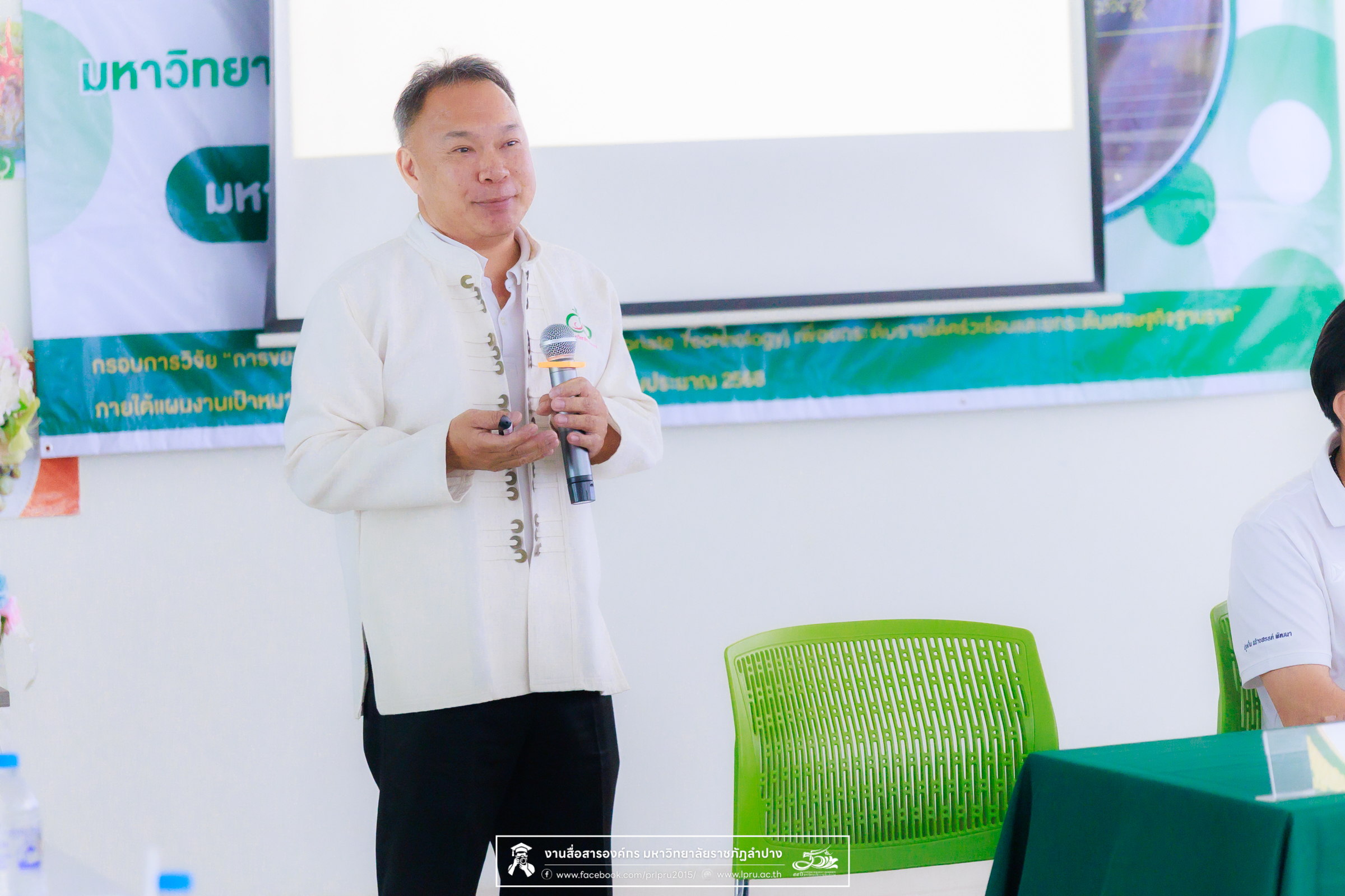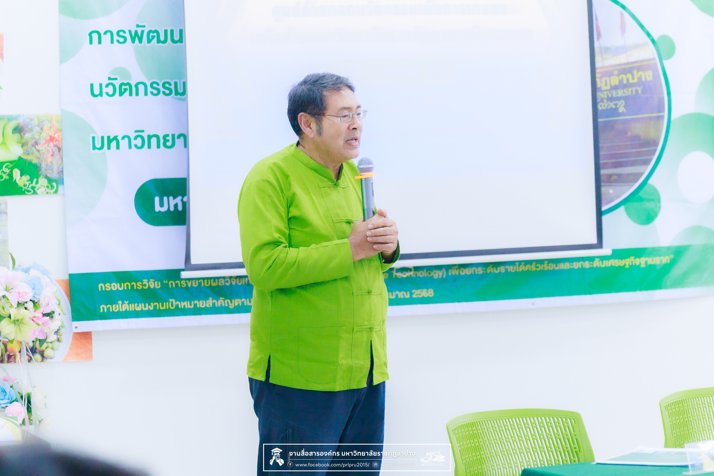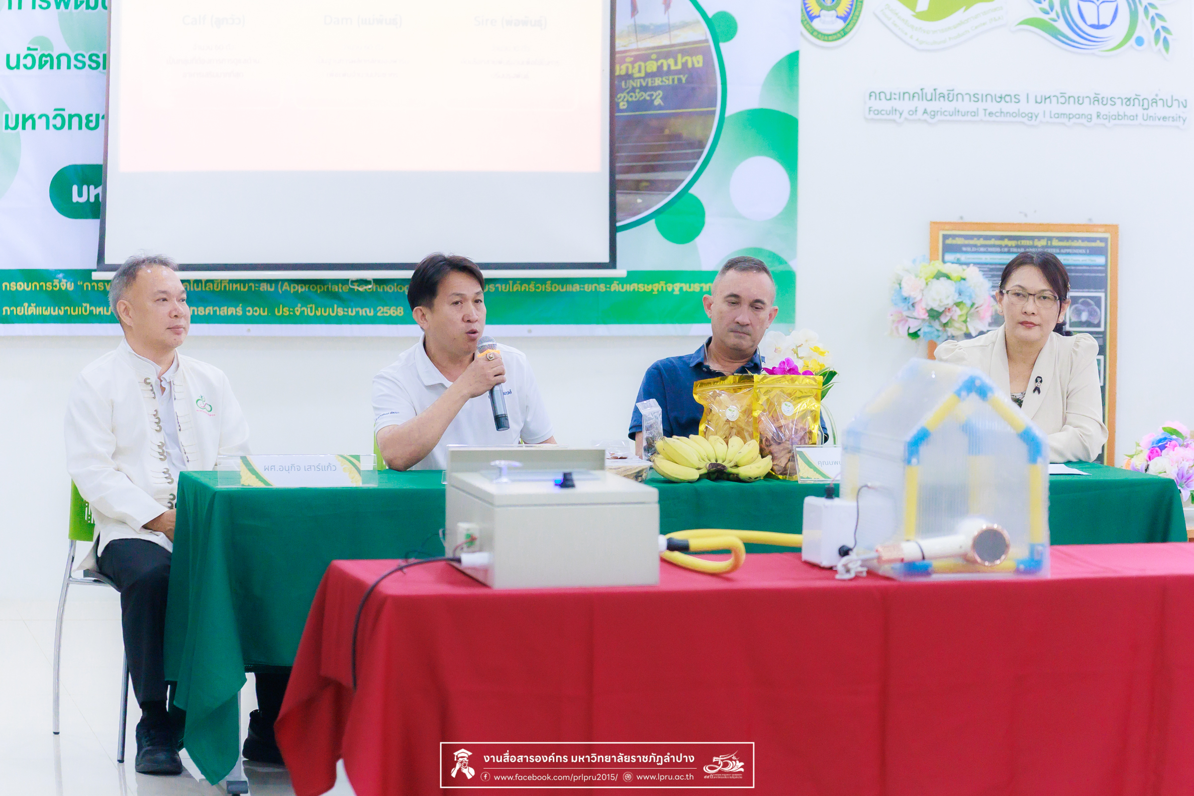 การลงพื้นที่ตรวจเยี่ยมดังกล่าว หน่วยบริหารและจัดการทุนด้านการพัฒนาระดับพื้นที่ (บพท.) ได้สนับสนุนทุนวิจัยแก่ มหาวิทยาลัยราชภัฏลำปาง ภายใต้กรอบการวิจัยเรื่อง “การพัฒนาระบบและกลไกศูนย์ถ่ายทอดนวัตกรรมเพื่อการเกษตร เครือข่ายมหาวิทยาลัยราชภัฏ ภาคเหนือตอนบน” ประจำปีงบประมาณ พ.ศ. 2569 มีวัตถุประสงค์เพื่อให้มีระบบและกระบวนการในการบริการวิชาการที่เหมาะสมแบบ Business Unit ภายใต้พันธกิจ “มหาวิทยาลัยเพื่อการพัฒนาท้องถิ่น” ที่เกษตรกร ผู้ประกอบการ ชุมชน สามารถเข้าถึงได้ โดยมีการนำเสนอรูปแบบการบริหารศูนย์ถ่ายทอดนวัตกรรมเพื่อการเกษตร โดย ดร.ธีรบูรณ์ บุญยงค์ ผู้ทรงคุณวุฒิคณะเทคโนโลยีการเกษตร (ผู้จัดการวิสาหกิจชุมชนศูนย์ถ่ายทอดนวัตกรรมเพื่อการเกษตร มหาวิทยาลัยราชภัฏลำปาง) การนำเสนอ การใช้โมบายแอปพลิเคชันสำหรับปศุสัตว์ โดย ผศ.อนุกิจ เสาร์แก้ว อาจารย์สังกัดสาขาวิชาเทคโนโลยีสารสนเทศ คณะวิทยาศาสตร์ (ผู้ดูแลระบบ) ร่วมกับ ตัวแทนกลุ่มวิสาหกิจชุมชนโคเนื้อทุ่งนาตอง อำเภอแม่ทะ และกลุ่มวิสาหกิจชุมชนต้นน้ำดอยหลวง อำเภอเกาะคา จังหวัดลำปาง การนำเสนอ การใช้โรงเรือนอบแห้งพลังงานแสงอาทิตย์และแหล่งพลังงานความร้อนร่วม โดย ผศ.ว่าที่ ร.ต.ปฐมพงศ์ พรมมาบุญ อาจารย์สังกัดสาขาวิชาวิศวกรรมการบำรุงรักษา คณะเทคโนโลยีอุตสาหกรรม และตัวแทนกลุ่มวิสาหกิจชุมชนต้นน้ำออกานิกส์ อำเภอวังเหนือ จังหวัดลำปาง และเยี่ยมชมโรงงานนวัตกรรมแปรรูปสินค้าเกษตร ของมหาวิทยาลัยราชภัฏลำปาง และผลิตภัณฑ์แปรรูปจากโรงงานนวัตกรรมแปรรูปสินค้าเกษตร โดย รศ.ดร.นันทินา ดำรงวัฒนกุล และ นายวรุตติ์ เครือจันต๊ะ ไอคอนฟาร์ม นางพัชราภรณ์ เรืองนาค บริษัทวีแคร์ โกลบอลกรุ๊ป จำกัด น.ส.ณัฐธิดา นาละออง วิสาหกิจชุมชนแปรรูปสัตว์น้ำบ้านสามัคคีหมู่ 5 ตำบลบ้านสา อำเภอแจ้ห่ม จังหวัดลำปาง ร่วมให้ข้อมูล