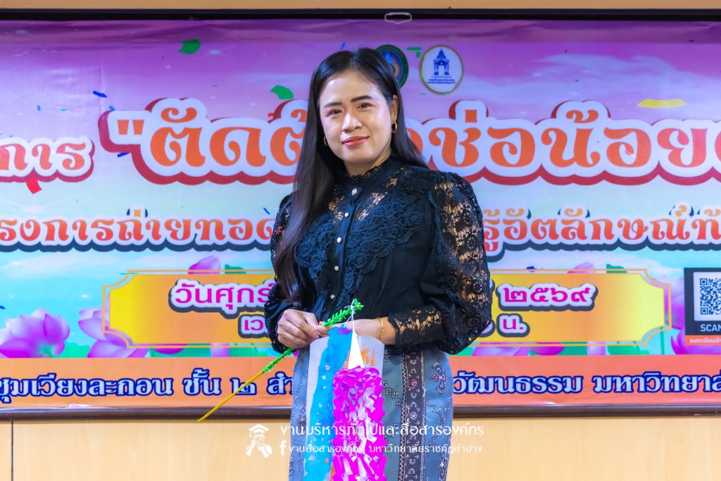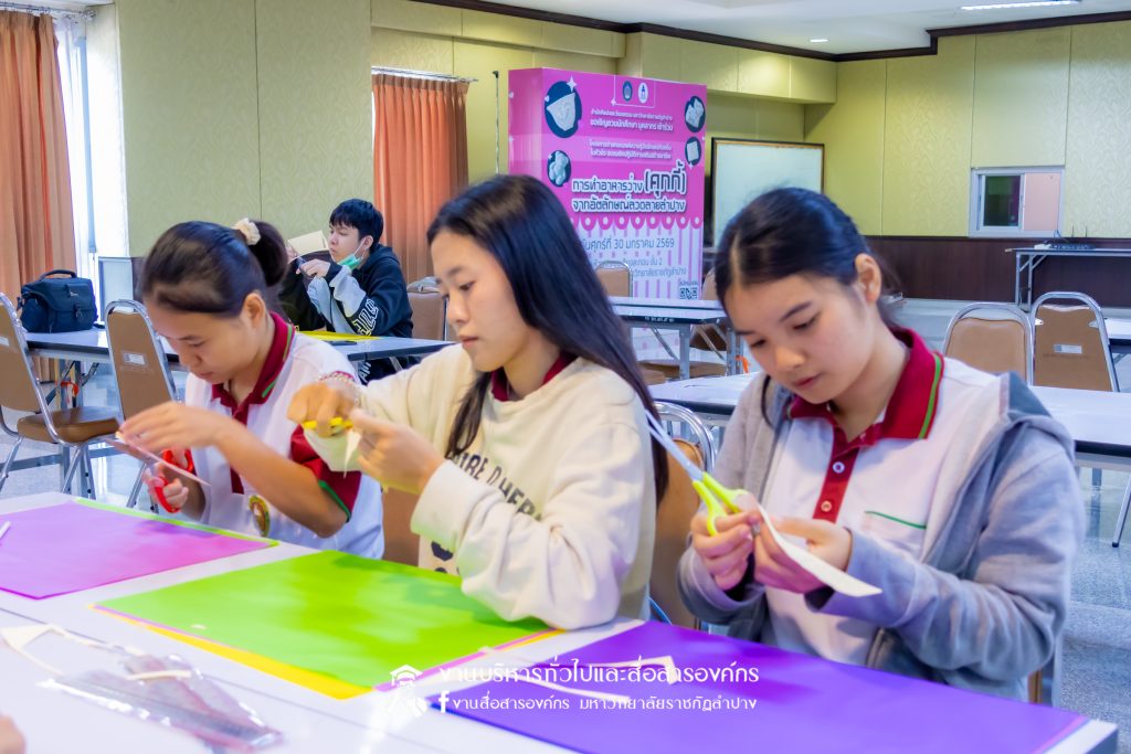 เมื่อวันที่ 6 กุมภาพันธ์ 2569 นางสาวธิดารัตน์ ไชยยาสืบ เจ้าหน้าที่บริหารงานทั่วไป ชำนาญการ รักษาการในตำแหน่งหัวหน้าสำนักงานผู้อำนวยการ และบุคลากรสำนักศิลปะและวัฒนธรรมมหาวิทยาลัยราชภัฏลำปาง จัดกิจกรรมอบรมเชิงปฏิบัติการ”ตัดต้องช่อน้อยตุงไชย ปีใหม่เมือง”โครงการถ่ายทอดองค์ความรู้อัตลักษณ์ท้องถิ่น ณ ห้องประชุมเวียงละกอน ชั้น 2 สำนักศิลปะและวัฒนธรรม มหาวิทยาลัยราชภัฏลำปาง