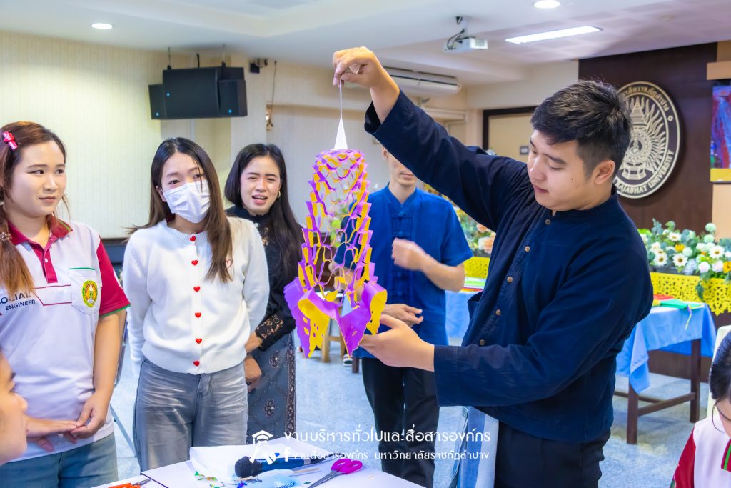 กิจกรรมดังกล่าวจัดขึ้นเพื่อให้นักศึกษาและบุคลากรที่เข้าร่วม กิจกรรมอบรมเชิงปฏิบัติการ ฯ ผ่านการลงมือปฏิบัติจริง สร้างสรรค์ช่อน้อยชุงไตยที่สะท้อนอัตลักษณ์และวัฒนธรรมลำปาง และถ่ายทอดองค์ความรู้การทำช่อน้อยตุงไชย ปีใหม่เมือง และสร้างสรรค์การทำช่อน้อยตุงไชยสู่เชิงพาพิชย์ในช่วงเทศกาลปีใหม่เมือง โดยได้รับเกียรติจาก คุณธนนันท์ ตันใจ และคุณกันทรากร บุญไทย วิทยากรจากชุมชนท่ามะโอ ถ่ายทอดองค์ความรู้ และประสบการณ์การทำช่อน้อยตุงไชย กิจกรรมได้รับการสนใจ จากบุคลากร และนักศึกษาเข้าร่วมกว่า 30 คน