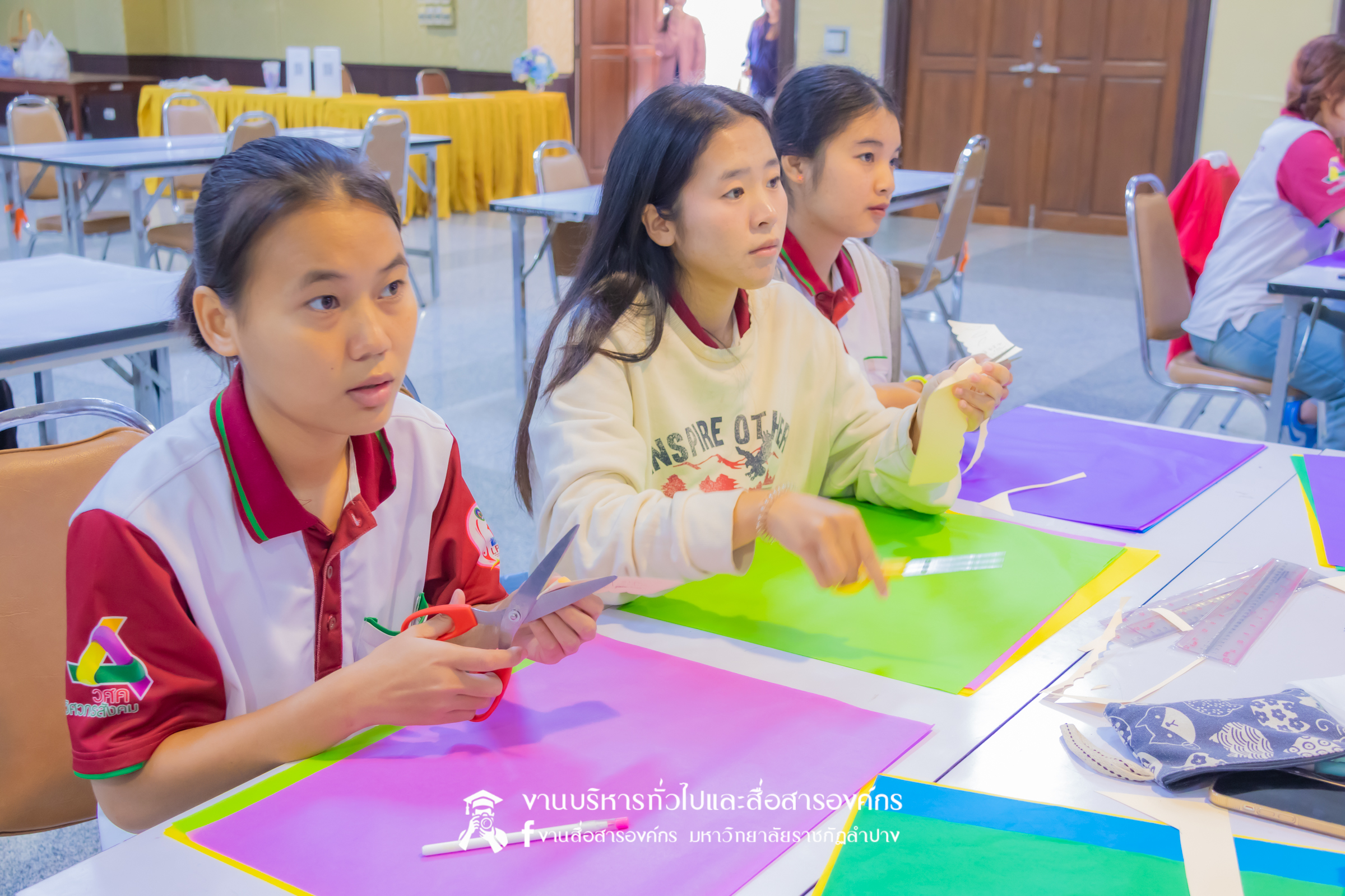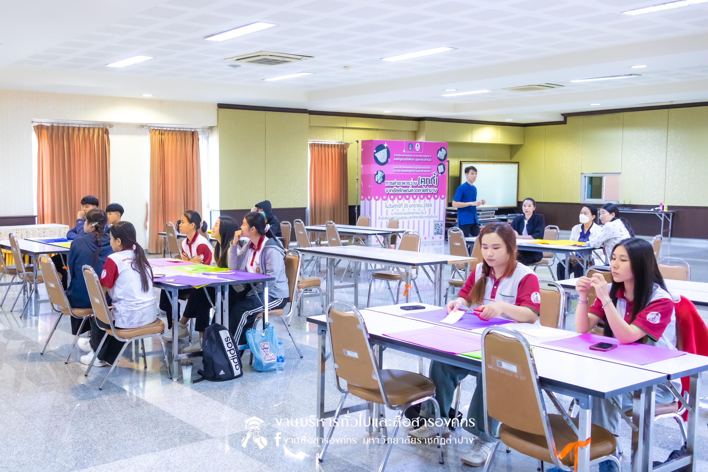 เมื่อวันที่ 6 กุมภาพันธ์ 2569 นางสาวธิดารัตน์ ไชยยาสืบ เจ้าหน้าที่บริหารงานทั่วไป ชำนาญการ รักษาการในตำแหน่งหัวหน้าสำนักงานผู้อำนวยการ และบุคลากรสำนักศิลปะและวัฒนธรรมมหาวิทยาลัยราชภัฏลำปาง จัดกิจกรรมอบรมเชิงปฏิบัติการ”ตัดต้องช่อน้อยตุงไชย ปีใหม่เมือง”โครงการถ่ายทอดองค์ความรู้อัตลักษณ์ท้องถิ่น ณ ห้องประชุมเวียงละกอน ชั้น 2 สำนักศิลปะและวัฒนธรรม มหาวิทยาลัยราชภัฏลำปาง