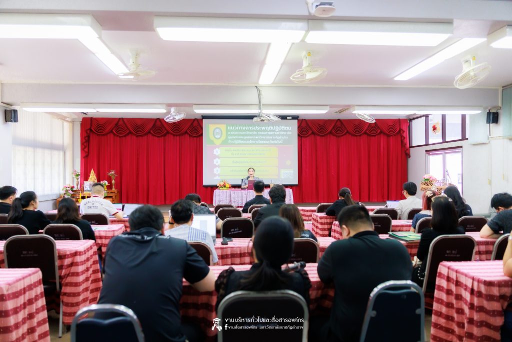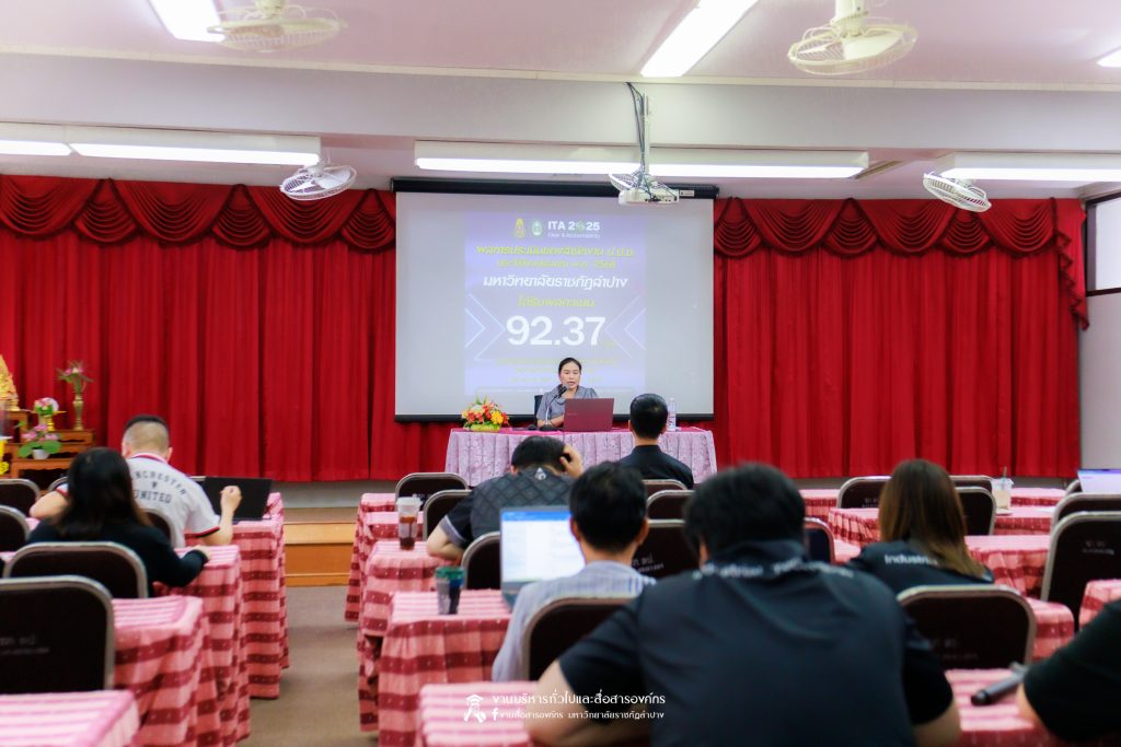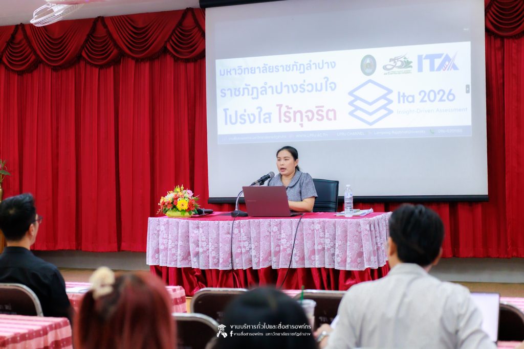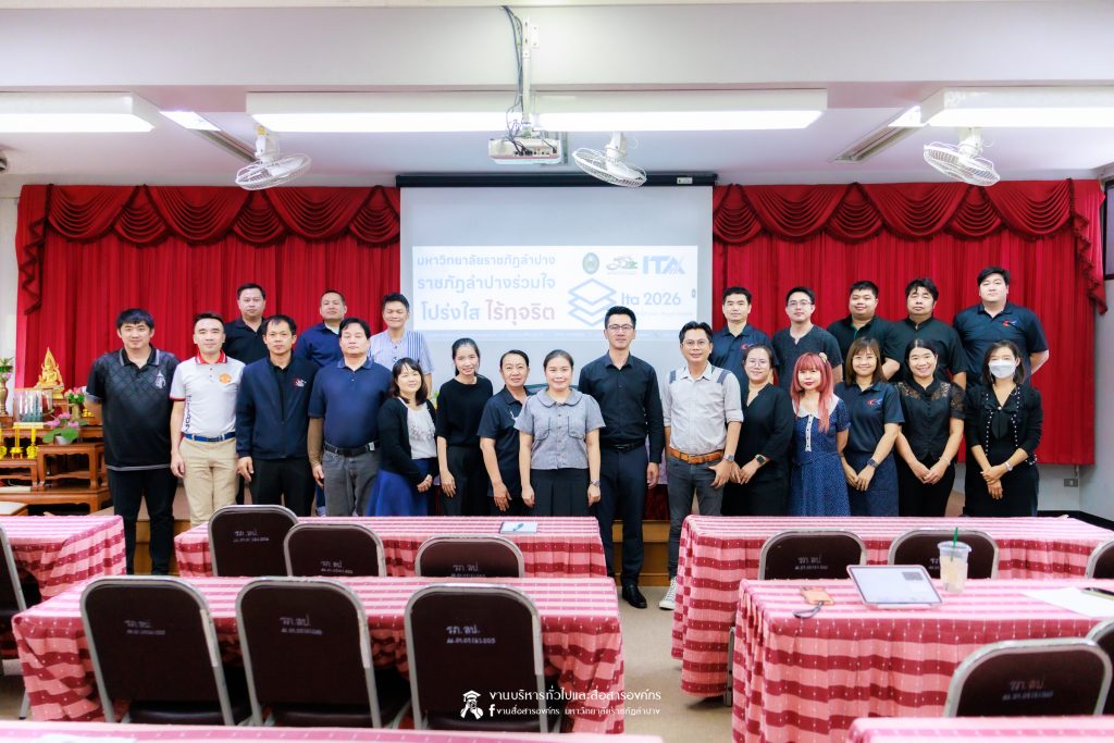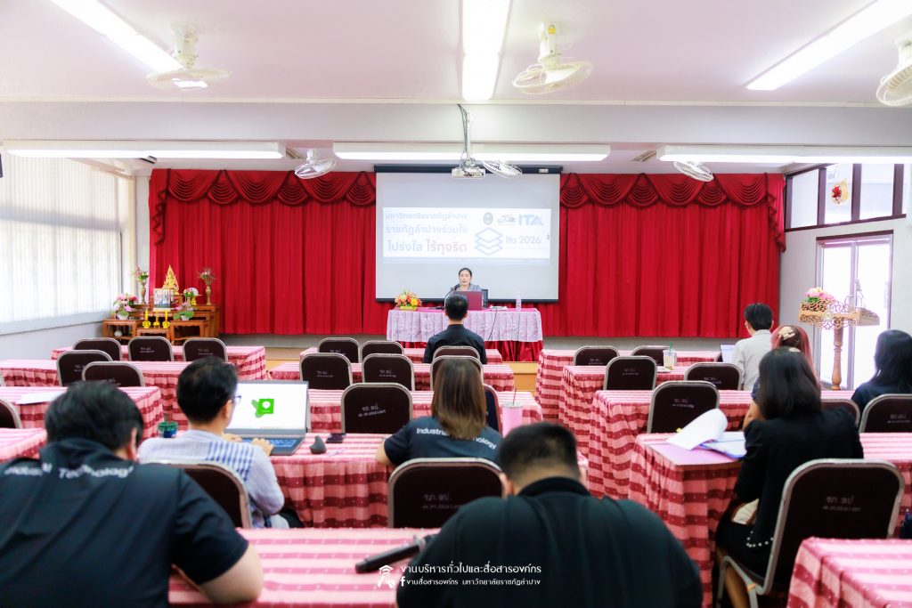 เมื่อวันที่ 11 มีนาคม 2569 น.ส.ศศธร เครือนันตา นักประชาสัมพันธ์ ชำนาญการ ปฏิบัติหน้าที่ในตำแหน่งหัวหน้างานบริหารทั่วไปและสื่อสารองค์กร กองกลาง สำนักงานอธิการบดี มหาวิทยาลัยราชภัฏลำปาง จัดกิจกรรมการประชาสัมพันธ์สร้างการรับรู้ “การประเมินคุณธรรมและความโปร่งใสในการดำเนินงานของหน่วยงานภาครัฐ” (Integrity & Transparency Assessment : ITA) ประจำปีงบประมาณ พ.ศ. 2569 ให้แก่บุคลากรคณะเทคโนโลยีอุตสาหกรรม โดย ผศ.จักรกฤษณ์ ฮั่นยะลา คณบดีคณะเทคโนโลยีอุตสาหกรรม นำคณะผู้บริหาร และบุคลากร เข้ารับฟัง ณ ห้องประชุม 1315 ชั้น 1 อาคารคณะเทคโนโลยีอุตสาหกรรม มหาวิทยาลัยราชภัฏลำปาง
