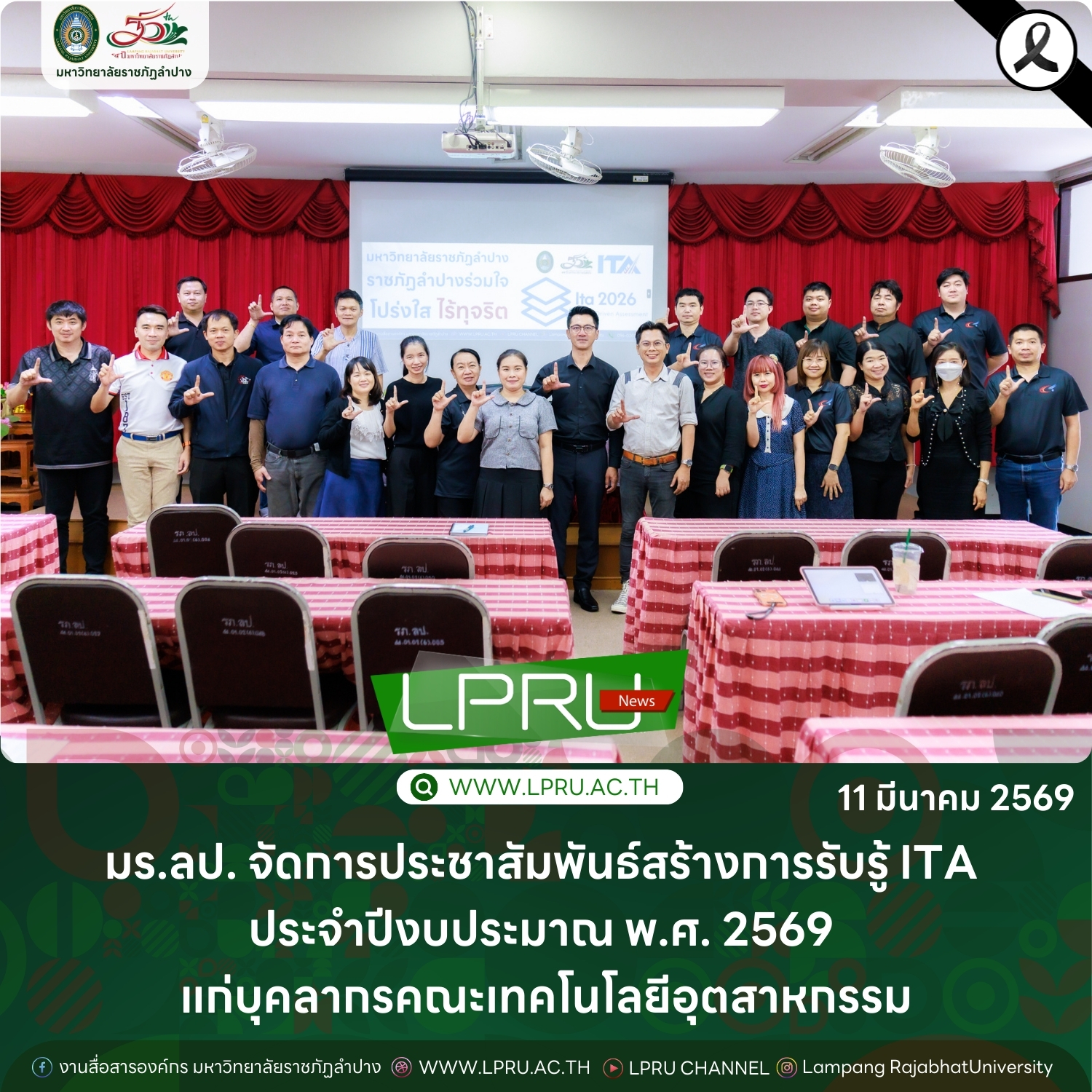 มร.ลป. จัดการประชาสัมพันธ์สร้างการรับรู้ ITA ประจำปีงบประมาณ พ.ศ. 2569 แก่บุคลากรคณะเทคโนโลยีอุตสาหกรรม