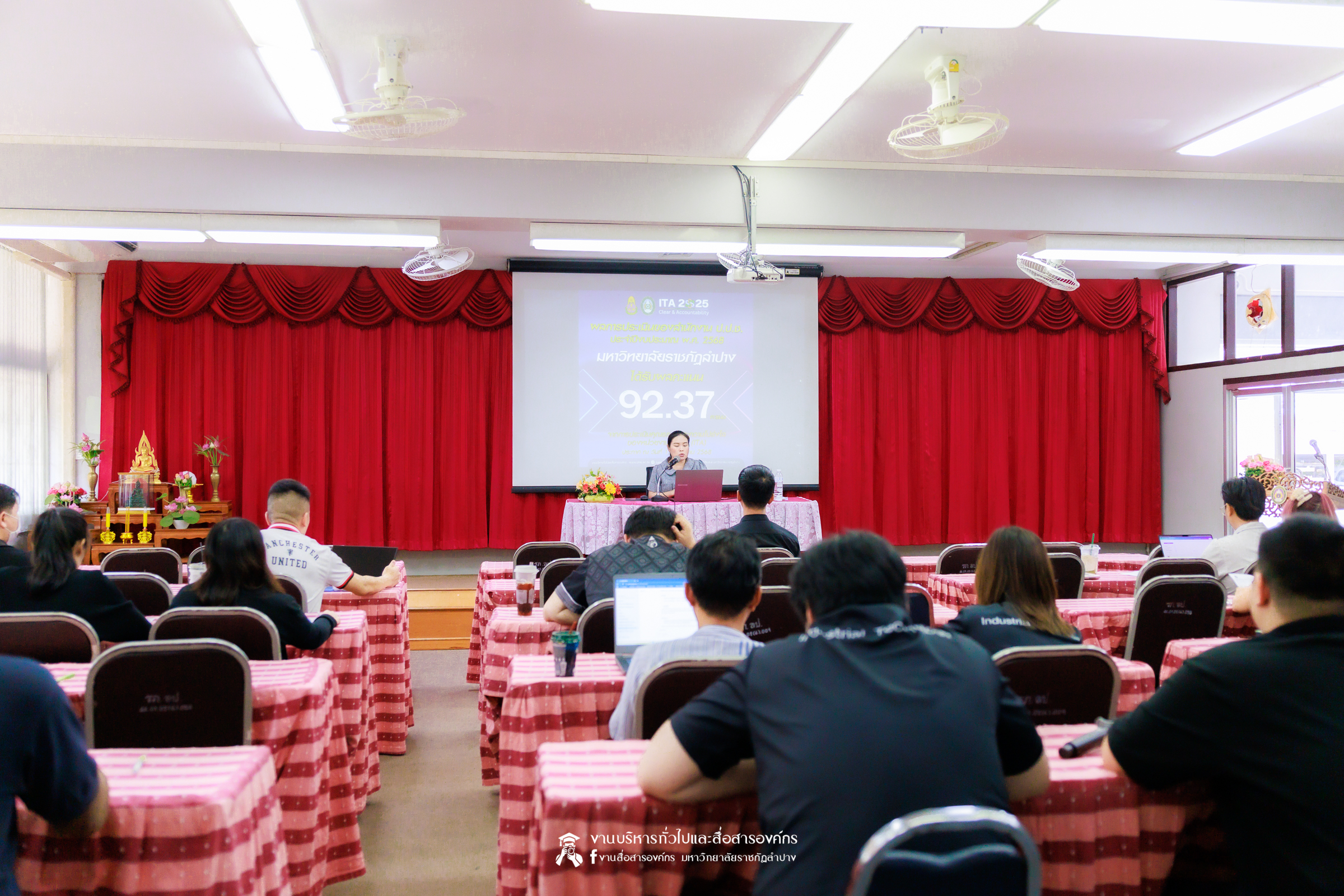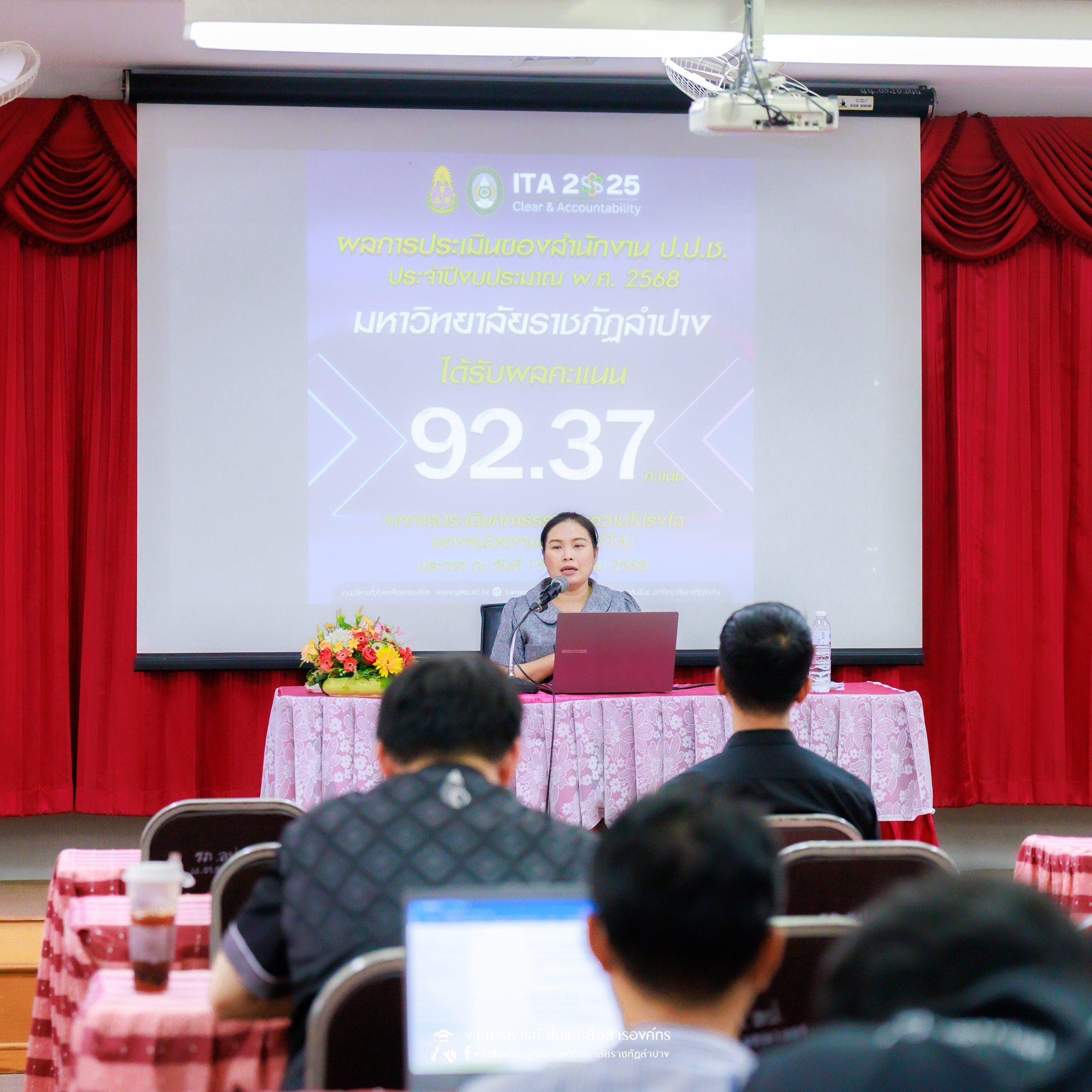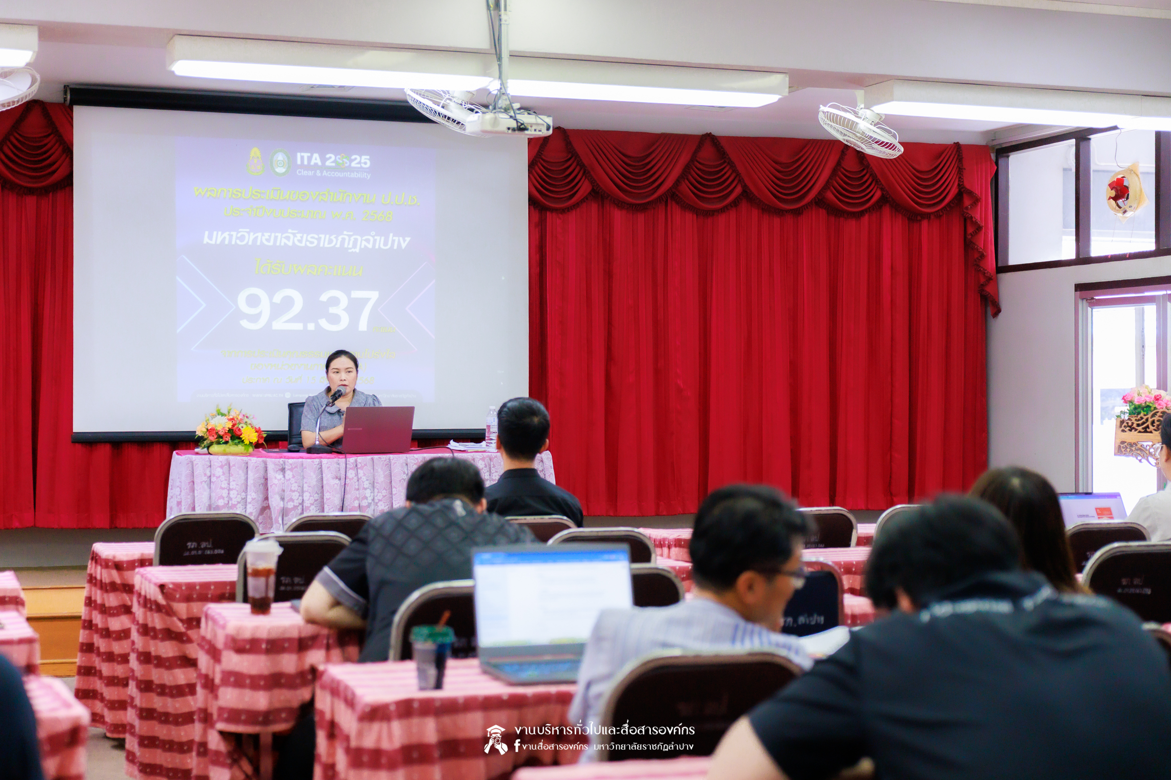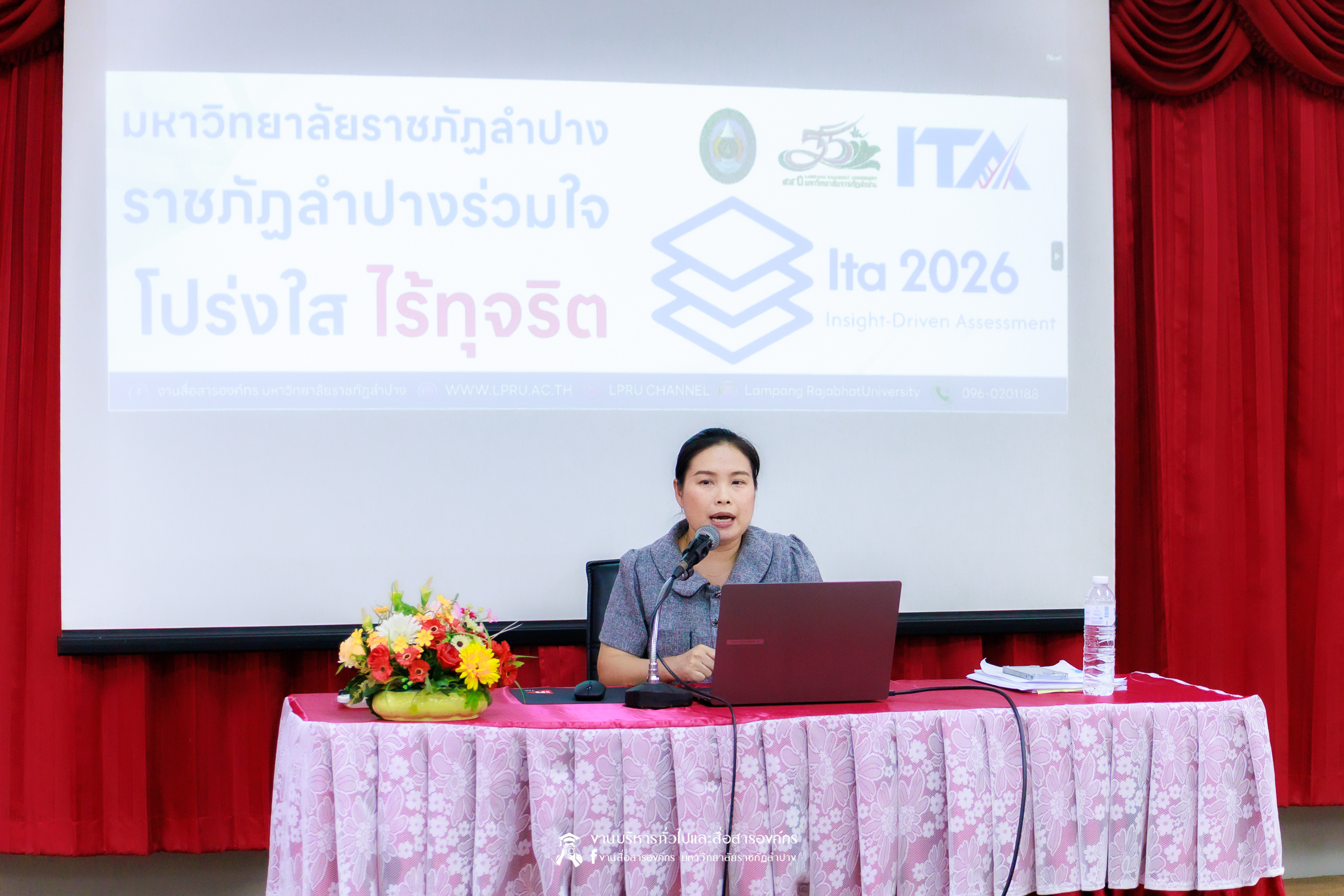 เมื่อวันที่ 11 มีนาคม 2569 น.ส.ศศธร เครือนันตา นักประชาสัมพันธ์ ชำนาญการ ปฏิบัติหน้าที่ในตำแหน่งหัวหน้างานบริหารทั่วไปและสื่อสารองค์กร กองกลาง สำนักงานอธิการบดี มหาวิทยาลัยราชภัฏลำปาง จัดกิจกรรมการประชาสัมพันธ์สร้างการรับรู้ “การประเมินคุณธรรมและความโปร่งใสในการดำเนินงานของหน่วยงานภาครัฐ” (Integrity & Transparency Assessment : ITA) ประจำปีงบประมาณ พ.ศ. 2569 ให้แก่บุคลากรคณะเทคโนโลยีอุตสาหกรรม โดย ผศ.จักรกฤษณ์ ฮั่นยะลา คณบดีคณะเทคโนโลยีอุตสาหกรรม นำคณะผู้บริหาร และบุคลากร เข้ารับฟัง ณ ห้องประชุม 1315 ชั้น 1 อาคารคณะเทคโนโลยีอุตสาหกรรม มหาวิทยาลัยราชภัฏลำปาง