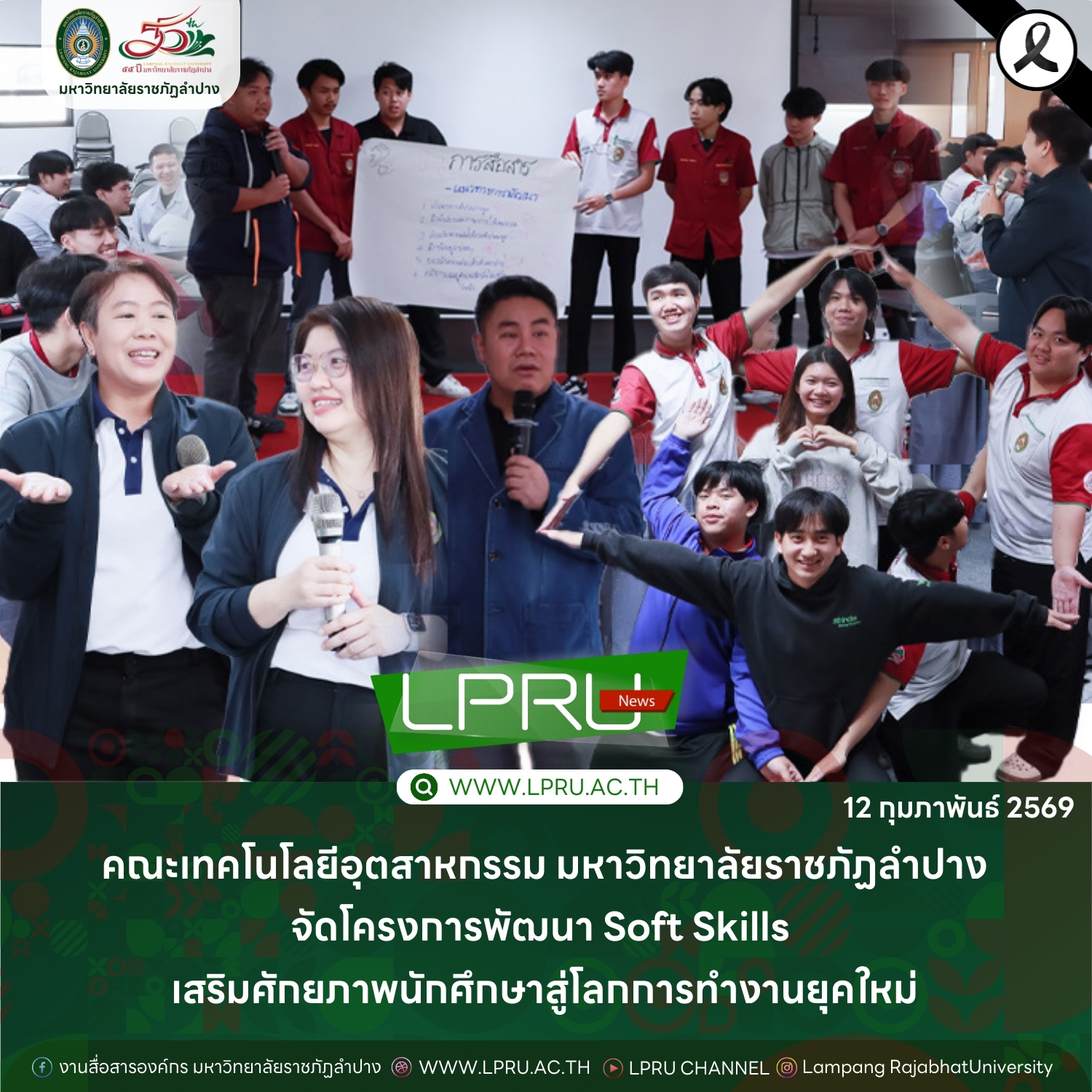 คณะเทคโนโลยีอุตสาหกรรม มร.ลป จัดโครงการพัฒนา Soft Skills เสริมศักยภาพนักศึกษาสู่โลกการทำงานยุคใหม่
