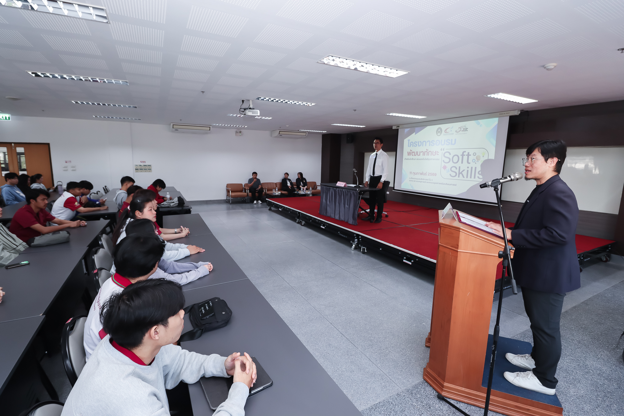 การจัดโครงการครั้งนี้มีวัตถุประสงค์เพื่อตระหนักถึงความสำคัญของทักษะ Soft Skills ซึ่งเป็นทักษะด้านสังคมและอารมณ์ที่จำเป็นควบคู่กับทักษะทางวิชาชีพ (Hard Skills) โดยเฉพาะในสายงานวิศวกรรมและเทคโนโลยีที่ต้องทำงานร่วมกับผู้อื่นและเผชิญกับความท้าทายในสถานการณ์จริง โดยมุ่งเสริมสร้างความรู้ความเข้าใจด้านจิตปัญญาศึกษาและการบริหารจัดการอารมณ์ตนเอง พัฒนาทักษะการฟังเชิงรุก (Active Listening) และการจับประเด็นสำคัญ ตลอดจนส่งเสริมทักษะการสื่อสารและการเจรจาต่อรองเพื่อคลี่คลายข้อขัดแย้งในการปฏิบัติงานได้อย่างเหมาะสมและสร้างสรรค์ โดยรับเกียรติจาก ผศ.อนงค์รัตน์ รินแสงปิน ผู้ช่วยคณบดีฝ่ายฝึกประสบการณ์วิชาชีพครู คณะครุศาสตร์ และ ผศ.ดร.พิชชา ถนอมเสียง อาจารย์สังกัดสาขาวิชาจิตวิทยาการปรึกษาและการแนะแนว คณะครุศาสตร์ เป็นวิทยากรบรรยายในหัวข้อ “Debug Your Mind: เคลียร์บั๊กใจ ก่อนไปลงสนามจริง” และ ผศ.ดร.ธนกร สิริสุคันธา ประธานหลักสูตรการจัดการมหาบัณฑิต (กจ.ม.) สาขาวิชาการจัดการ คณะวิทยาการจัดการ บรรยายในหัวข้อ “Listen & Lead: ฟังให้ลึก เจรจาให้เป็น ดีลจบทุกความขัดแย้ง”