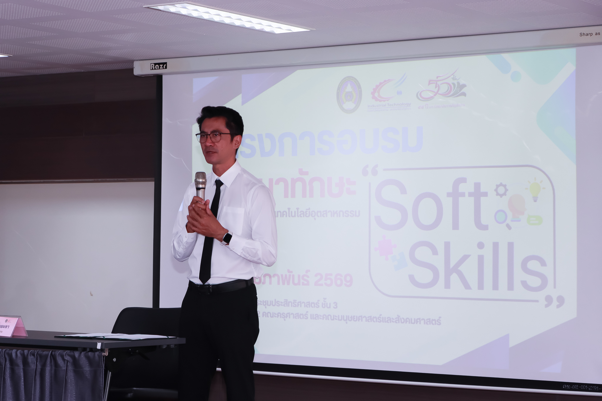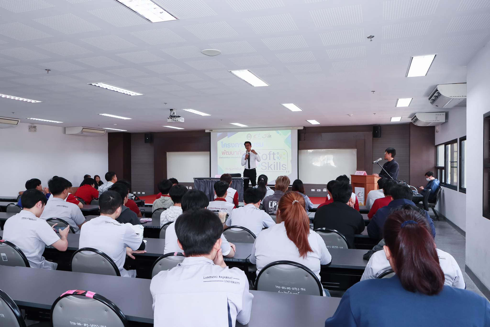 เมื่อวันที่ 11 กุมภาพันธ์ 2569 คณะเทคโนโลยีอุตสาหกรรม มหาวิทยาลัยราชภัฏลำปาง จัดโครงการพัฒนา Soft Skills สำหรับนักศึกษา คณะเทคโนโลยีอุตสาหกรรม ณ ห้องประชุมประสิทธิศาสตร์ ชั้น 3 อาคาร 52 คณะมนุษยศาสตร์และสังคมศาสตร์ ในการนี้ ผศ.จักรกฤษณ์ ฮั่นยะลา คณบดีคณะเทคโนโลยีอุตสาหกรรม เป็นประธานในพิธีเปิดโครงการ และให้โอวาทแก่นักศึกษา โดยมีนักศึกษาเข้าร่วมกว่า 70 คน