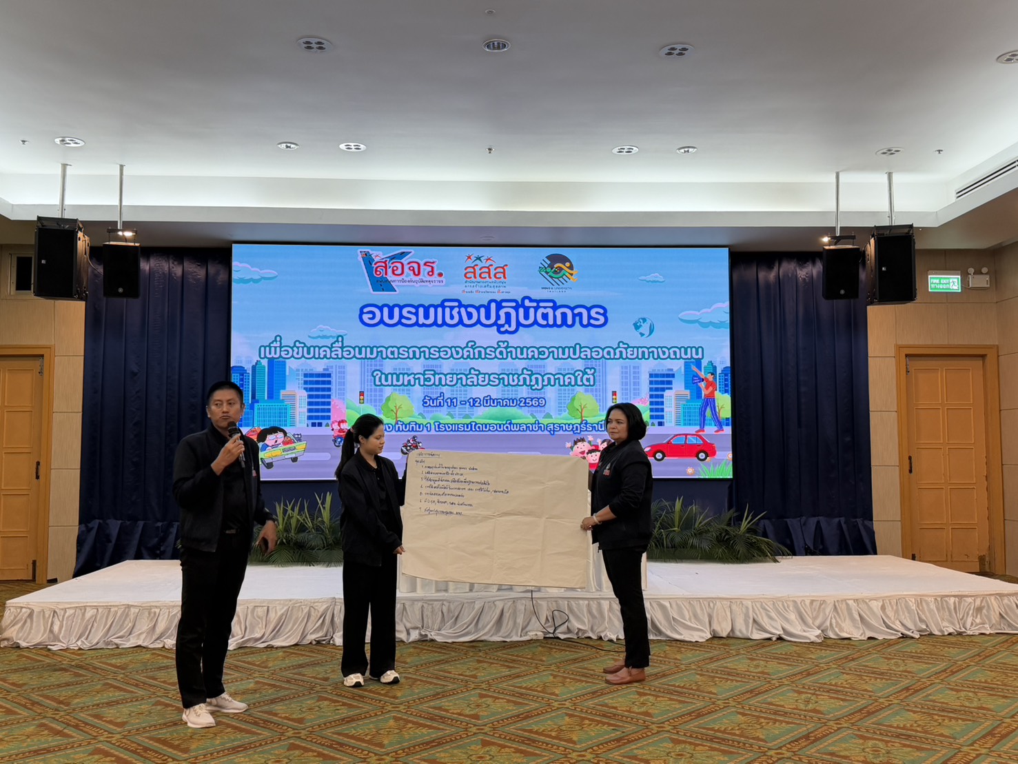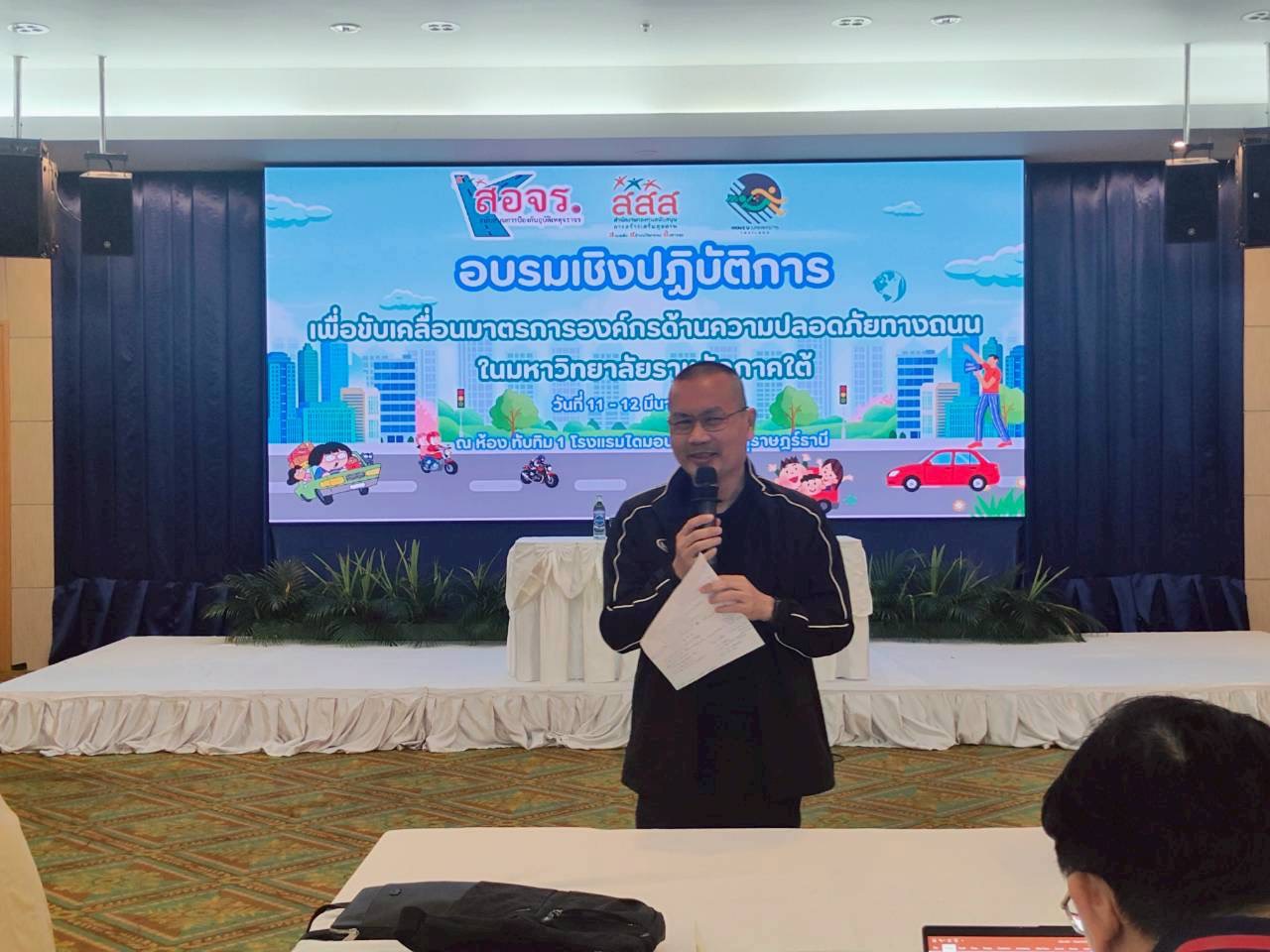 เมื่อวันที่ 11–12 มีนาคม 2569 รศ.ดร.ปริเยศ สิทธิสรวง รองอธิการบดีฝ่ายบริหาร มหาวิทยาลัยราชภัฏลำปาง ในนามที่ปรึกษาโครงการ MOVE U Thailand เข้าร่วมการประชุมอบรมเชิงปฏิบัติการเพื่อขับเคลื่อนมาตรการองค์กรด้านความปลอดภัยทางถนนในมหาวิทยาลัยราชภัฏภาคใต้ ภายใต้โครงการ MOVE U Thailand : มาตรการองค์กรเพื่อความปลอดภัยทางถนนในมหาวิทยาลัย และร่วมแลกเปลี่ยนความคิดเห็น ให้ข้อเสนอแนะเชิงนโยบาย และสนับสนุนการพัฒนากลไกความร่วมมือระดับผู้บริหารของมหาวิทยาลัยราชภัฏ เพื่อผลักดันมาตรการด้านความปลอดภัยทางถนนในสถาบันอุดมศึกษาอย่างเป็นรูปธรรม โดยมี นางก่องกาญจน์ ทักษ์หิรัญฤทธิ์ ผู้อำนวยการสำนักสนับสนุนการควบคุมปัจจัยเสี่ยงทางสังคม (สสส.) นพ.วิทยา ชาติบัญชาชัย ประธานแผนงานสนับสนุนการป้องกันอุบัติเหตุจราจรระดับจังหวัด (สอจร.) ภายใต้การสนับสนุนของสำนักงานกองทุนสนับสนุนการสร้างเสริมสุขภาพ (สสส.) นพ.อนุชา เศรษฐเสถียร ผู้ทรงคุณวุฒิกองทุนเพื่อความปลอดภัยในการใช้รถใช้ถนน (กปถ.) อ.ดร.พรเทพ เสถียรนพเก้า รองอธิการบดีฝ่ายกิจการนักศึกษา มหาวิทยาลัยราชภัฏสกลนคร ผศ.ดร.บุญสิทธิ์ ไชยชนะ รองอธิการบดีฝ่ายพัฒนานักศึกษาและมวลชนสัมพันธ์ มหาวิทยาลัยราชภัฏยะลา อ.เอกรัตน์ สุขะสุคนธ์ รองอธิการบดีฝ่ายกิจการนักศึกษา มหาวิทยาลัยราชภัฏธนบุรี อ.ดร.เมธาวิน สาระยาน รองอธิการบดีฝ่ายกิจการนักศึกษา มหาวิทยาลัยราชภัฏเพชรบุรี และเจ้าหน้าที่ผู้รับผิดชอบกิจกรรมดูแลความปลอดภัยทางถนนงานจากมหาวิทยาลัยราชภัฏเครือข่ายภาคใต้ ทั้ง 5 แห่งเข้าร่วม ณ ห้องประชุมทับทิม 1 โรงแรมไดมอนด์พลาซ่า จังหวัดสุราษฎร์ธานี