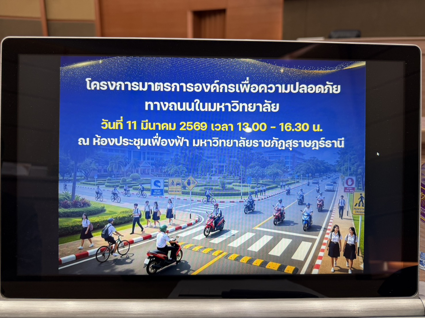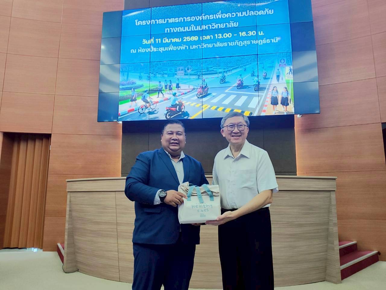ทั้งนี้ ได้เข้าศึกษาดูงานโครงการมาตรการองค์กรเพื่อความปลอดภัยทางถนนในมหาวิทยาลัย ของมหาวิทยาลัยราชภัฏสุราษฎร์ธานี และรับฟังการบรรยายสรุปการดำเนินงาน โดย อ.ดร.สมปราชญ์ วุฒิจันทร์ รองอธิการบดีฝ่ายพัฒนานักศึกษาและเครือข่ายศิษย์เก่า และ นายสุชาติ สิทธิวงษ์ รักษาการผู้อำนวยการกองพัฒนานักศึกษา มหาวิทยาลัยราชภัฏสุราษฎร์ธานี ณ ห้องประชุมเฟื่องฟ้า ชั้น 4 สำนักงานอธิการบดี มหาวิทยาลัยราชภัฏสุราษฎร์ธานี