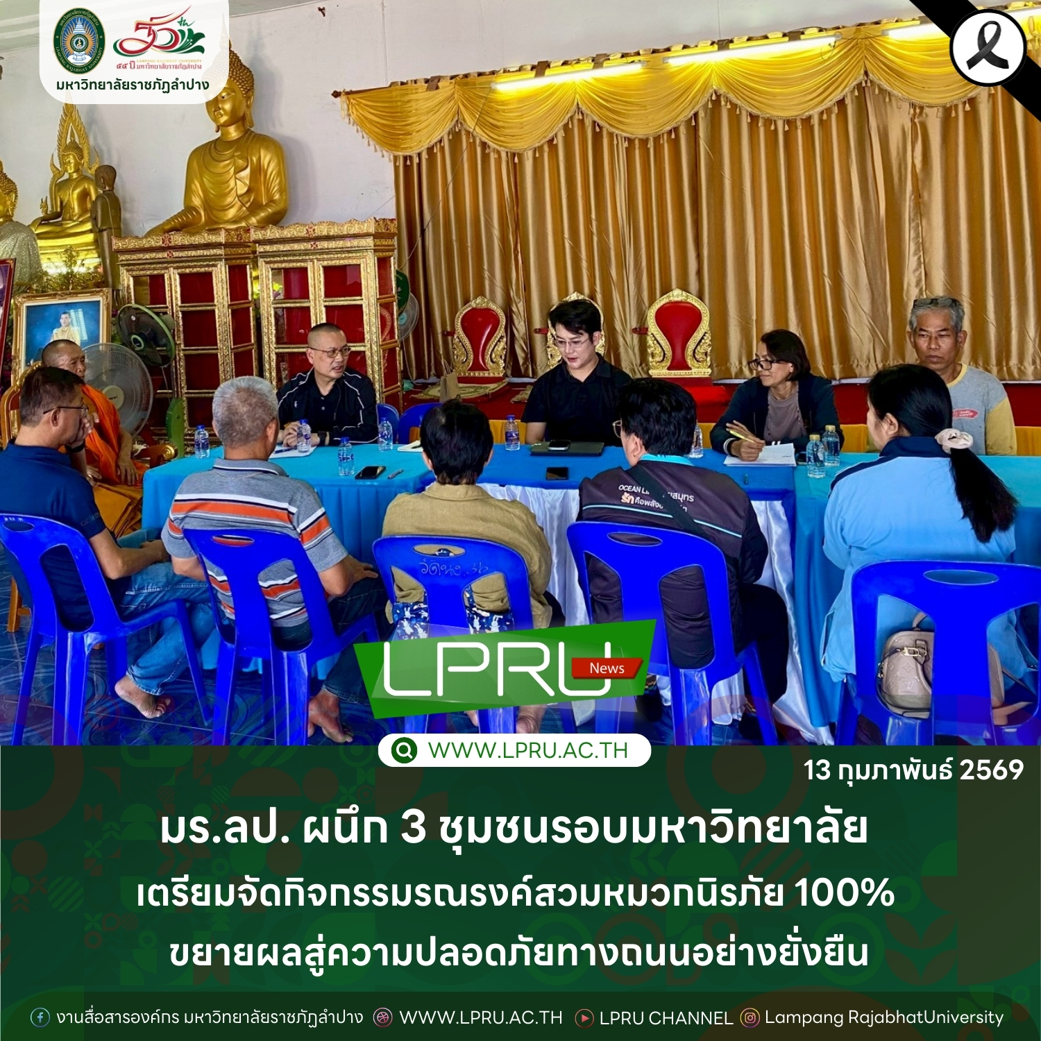 มร.ลป. ผนึก 3 ชุมชนรอบมหาวิทยาลัย เตรียมจัดกิจกรรมรณรงค์สวมหมวกนิรภัย 100% ขยายผลสู่ความปลอดภัยทางถนนอย่างยั่งยืน